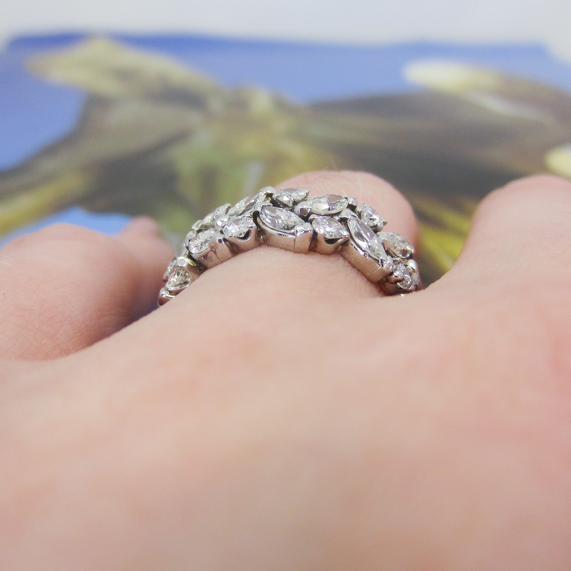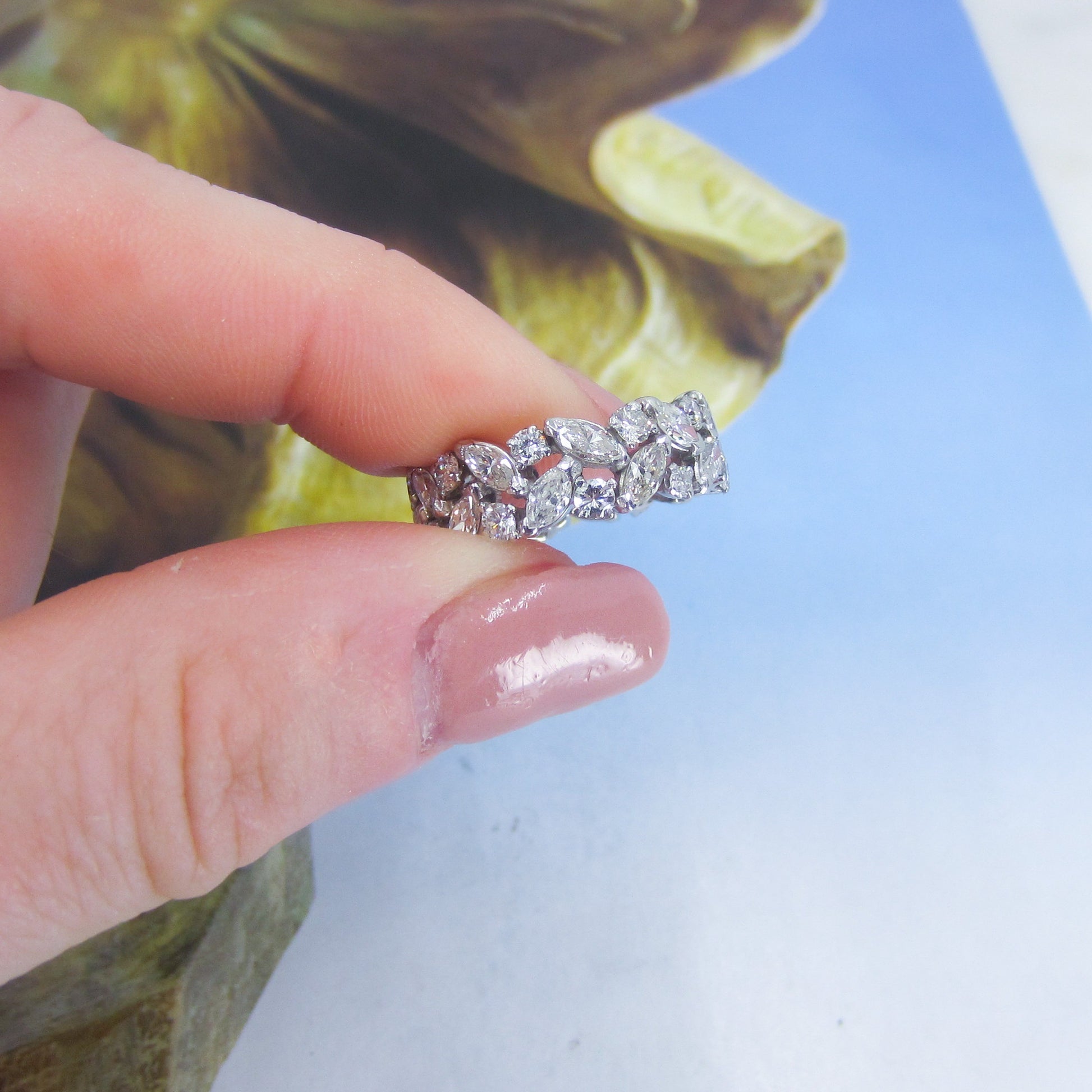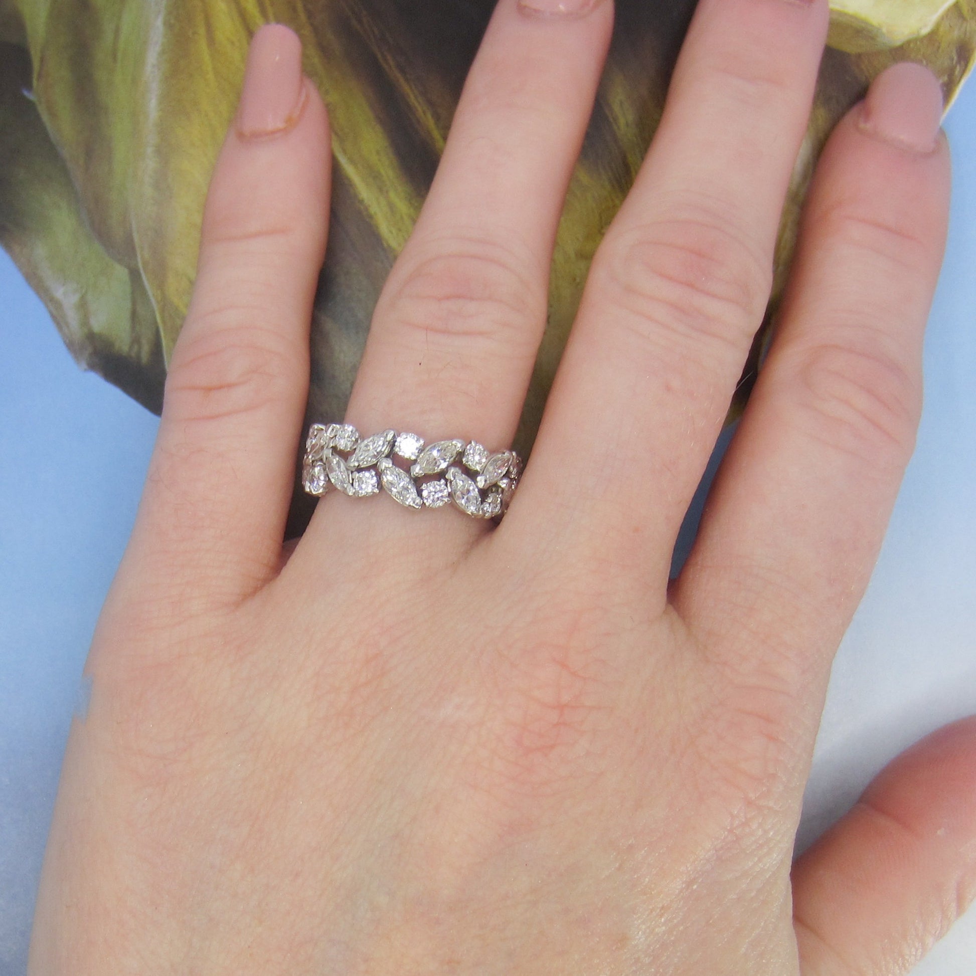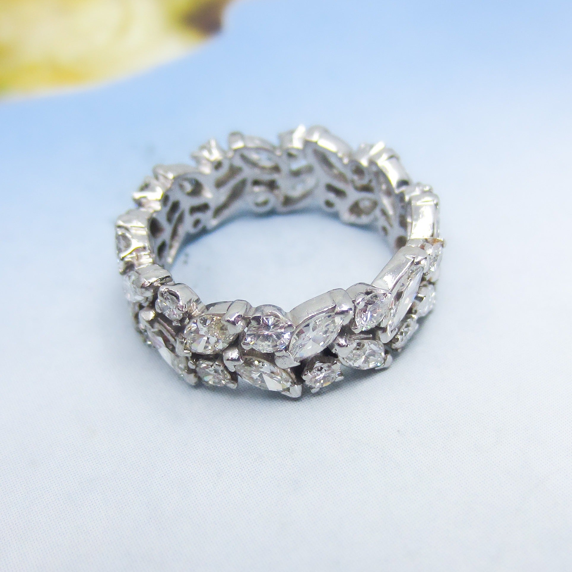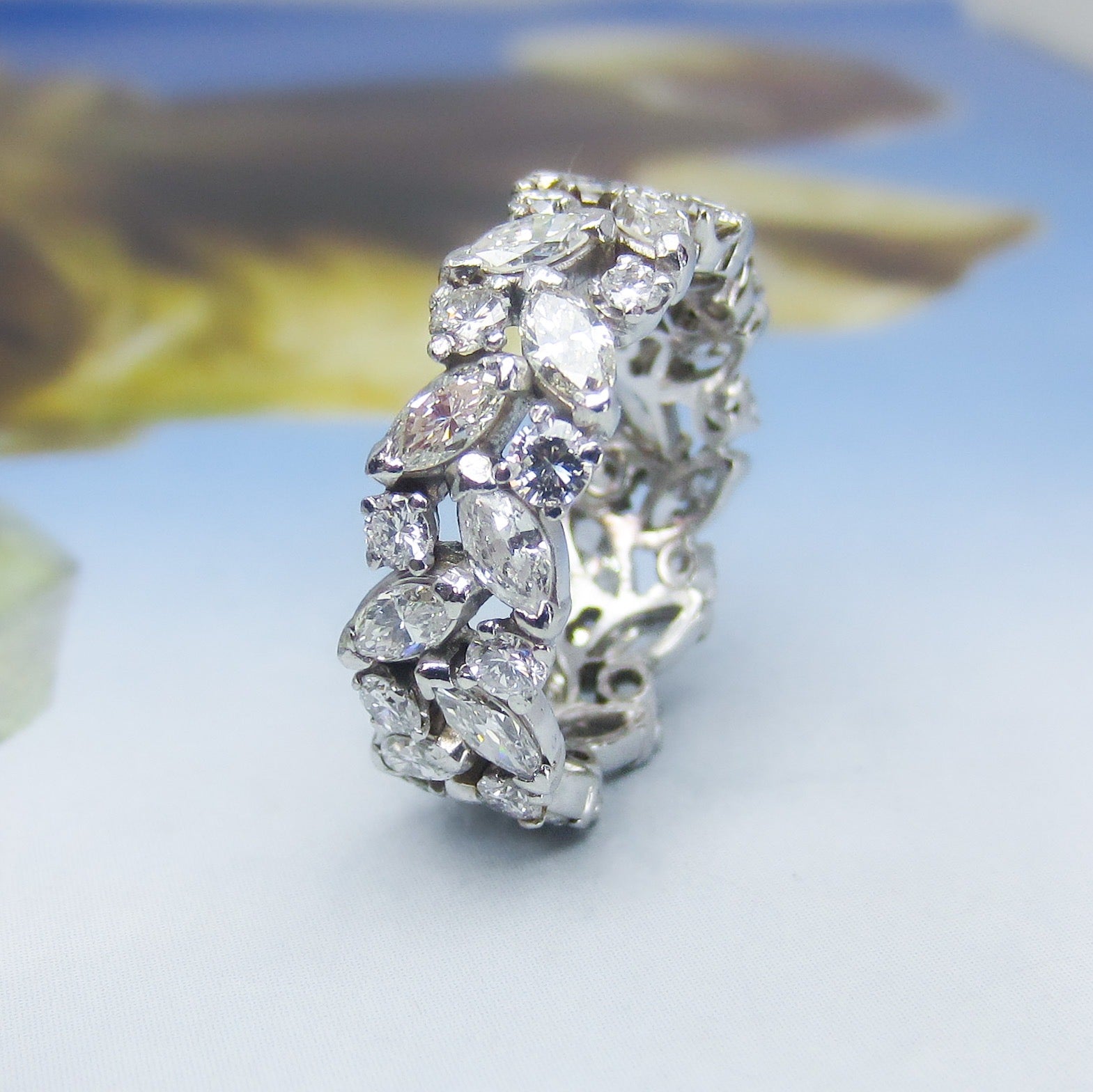 SOLD-Beautiful Vintage Marquise and Round Diamond Eternity Band 18k, size 6.5