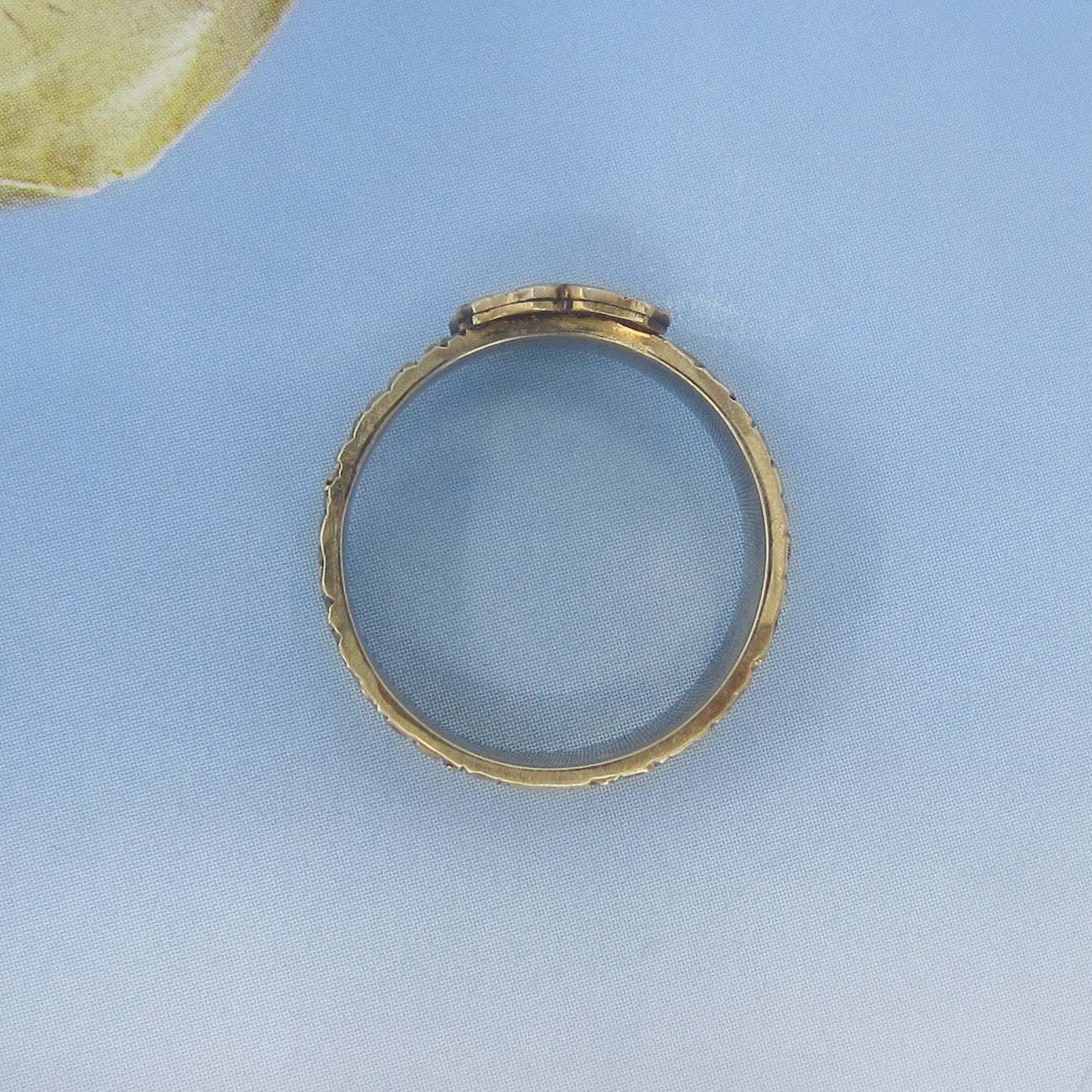 SOLD-Victorian Enamel Hair Mourning Ring 15k, Size 8 c. 1870