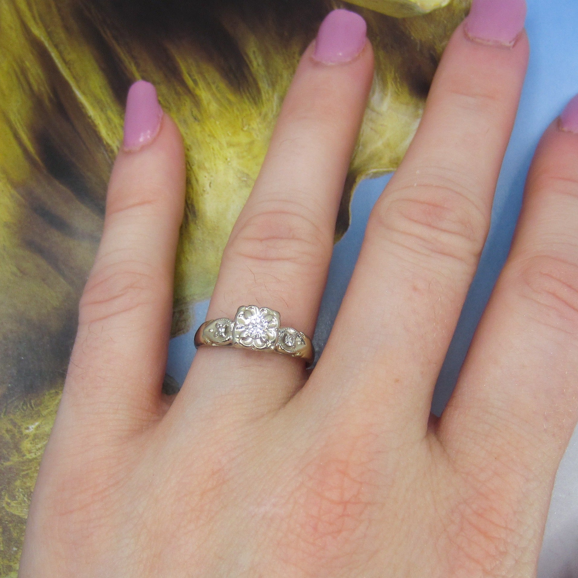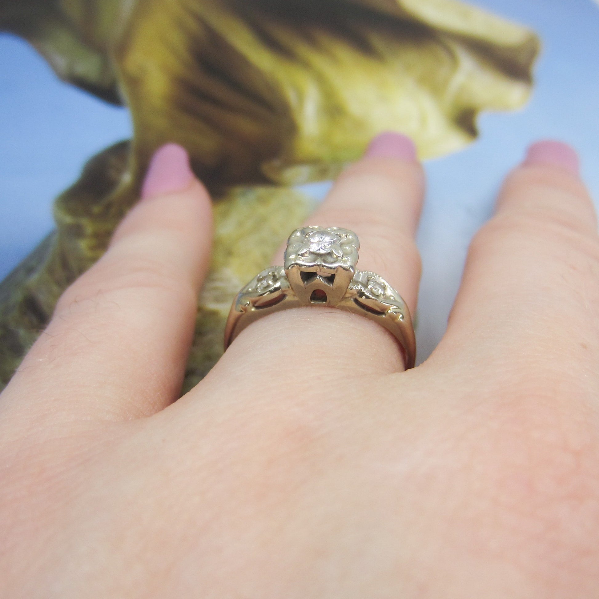 SOLD-Art Deco Round Brilliant Diamond .15ct Engagement Ring 14k c. 1940
