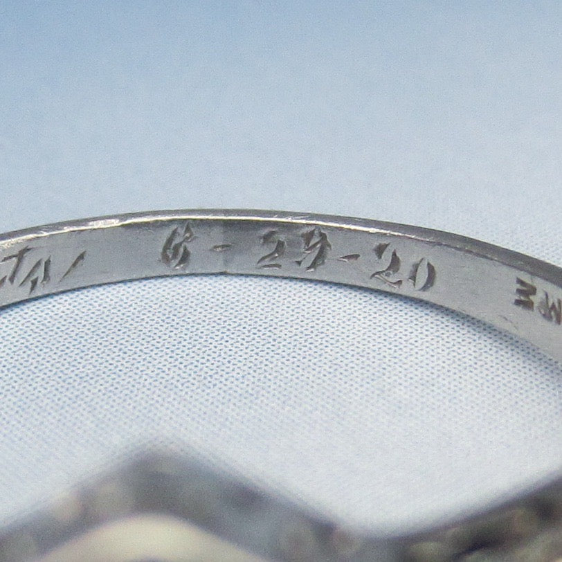Stamped 'PLATINUM' with unknown maker's mark and hand-engraved "Sweethearts 6-29-20".