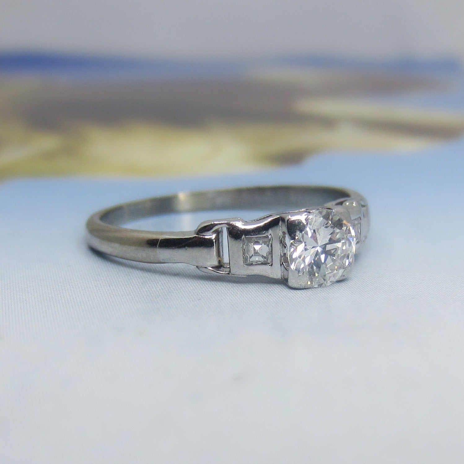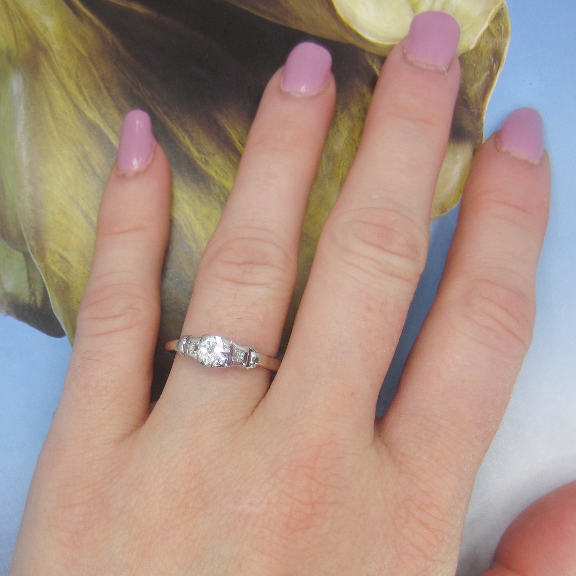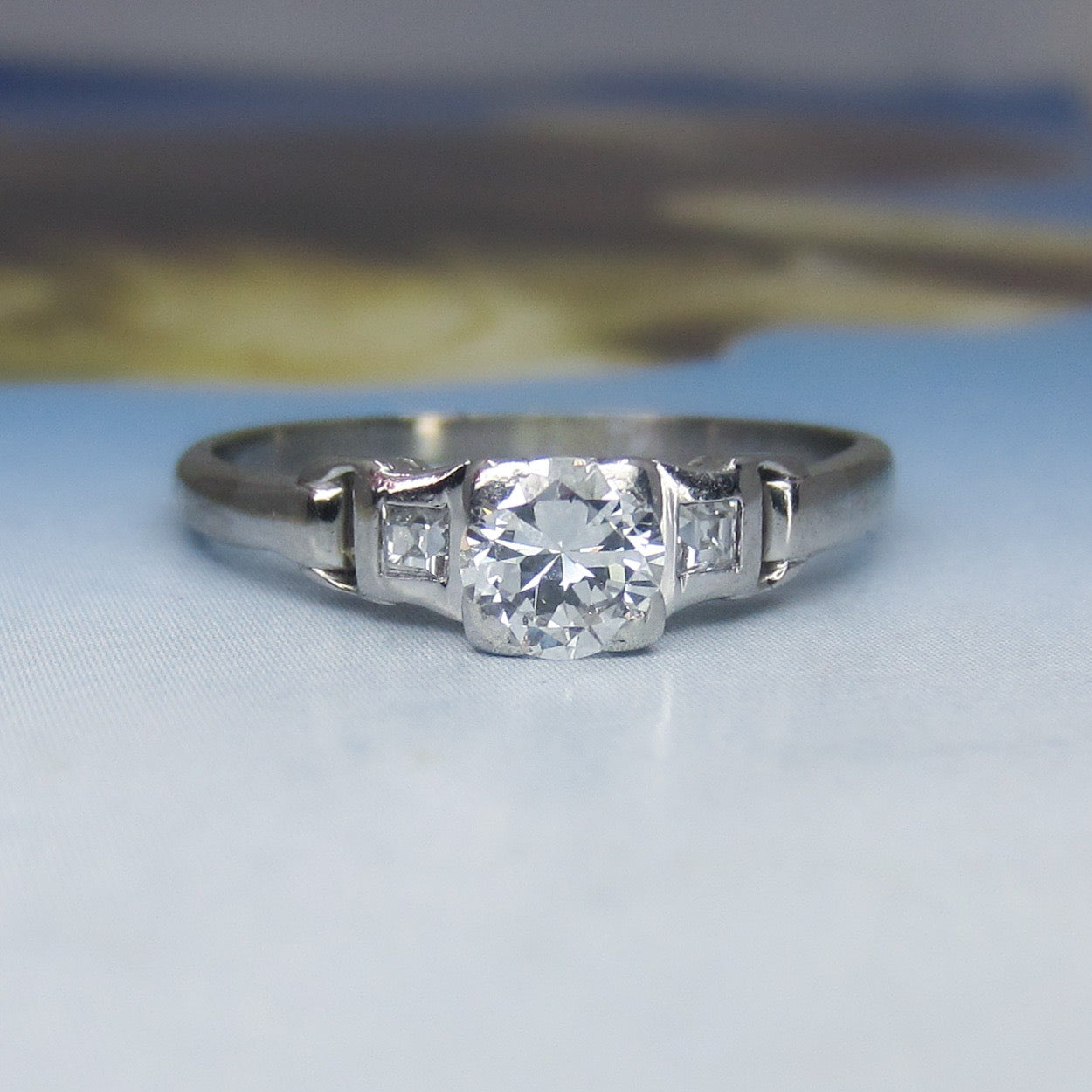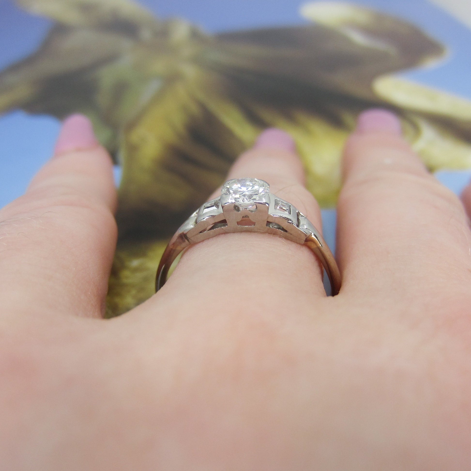 Art Deco Transitional Round Brilliant .40ct Diamond Engagement Ring Platinum/18k c. 1930