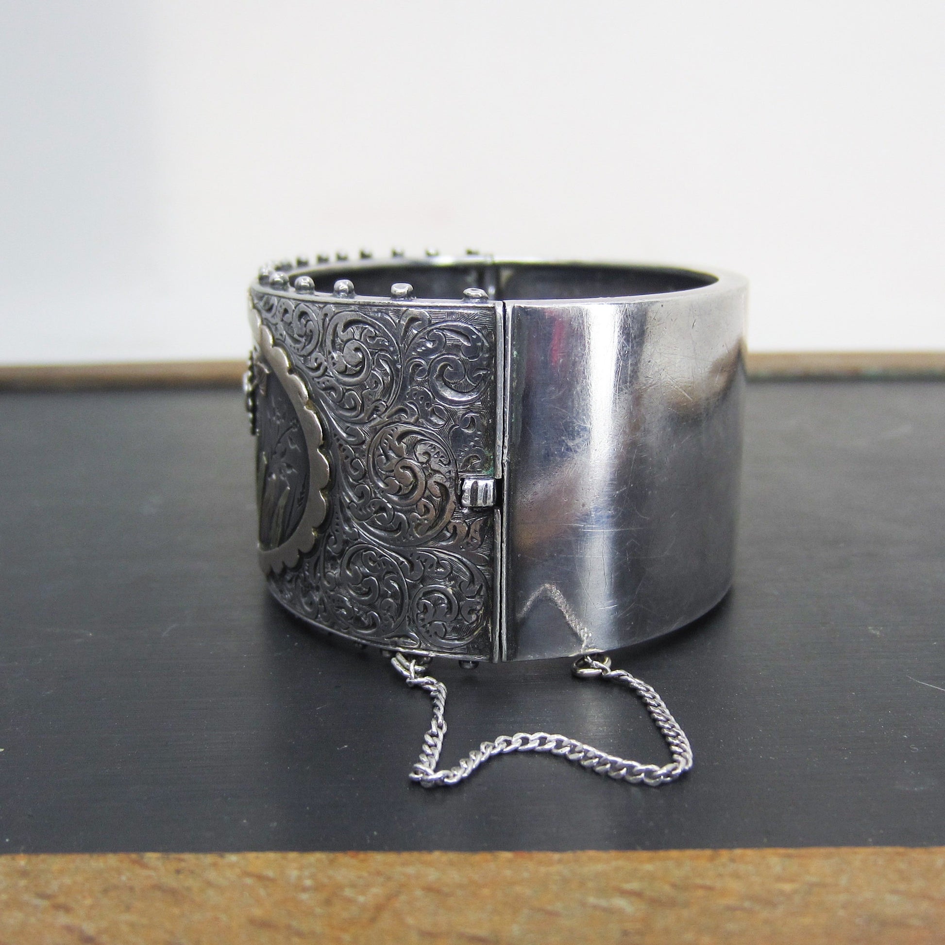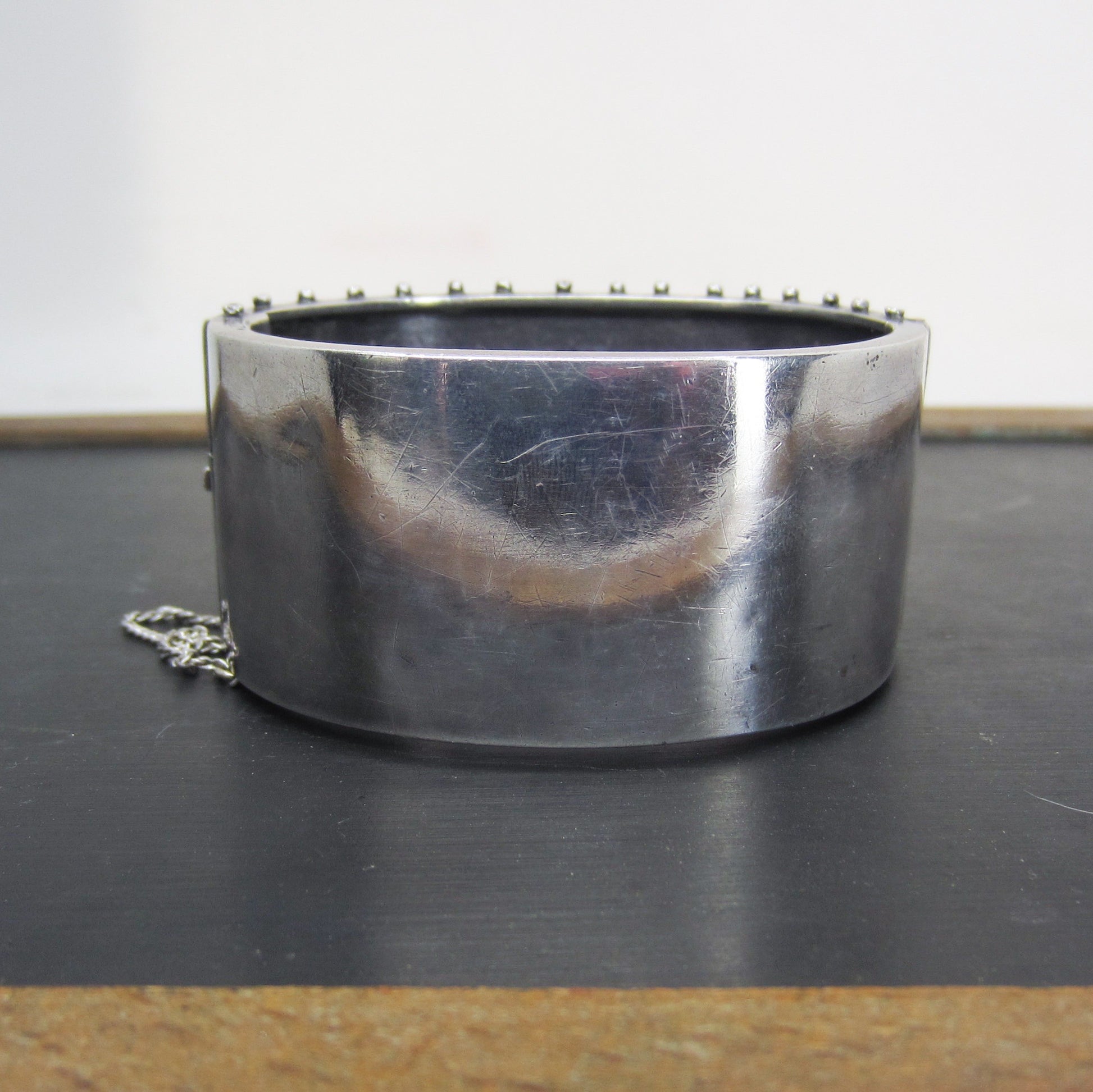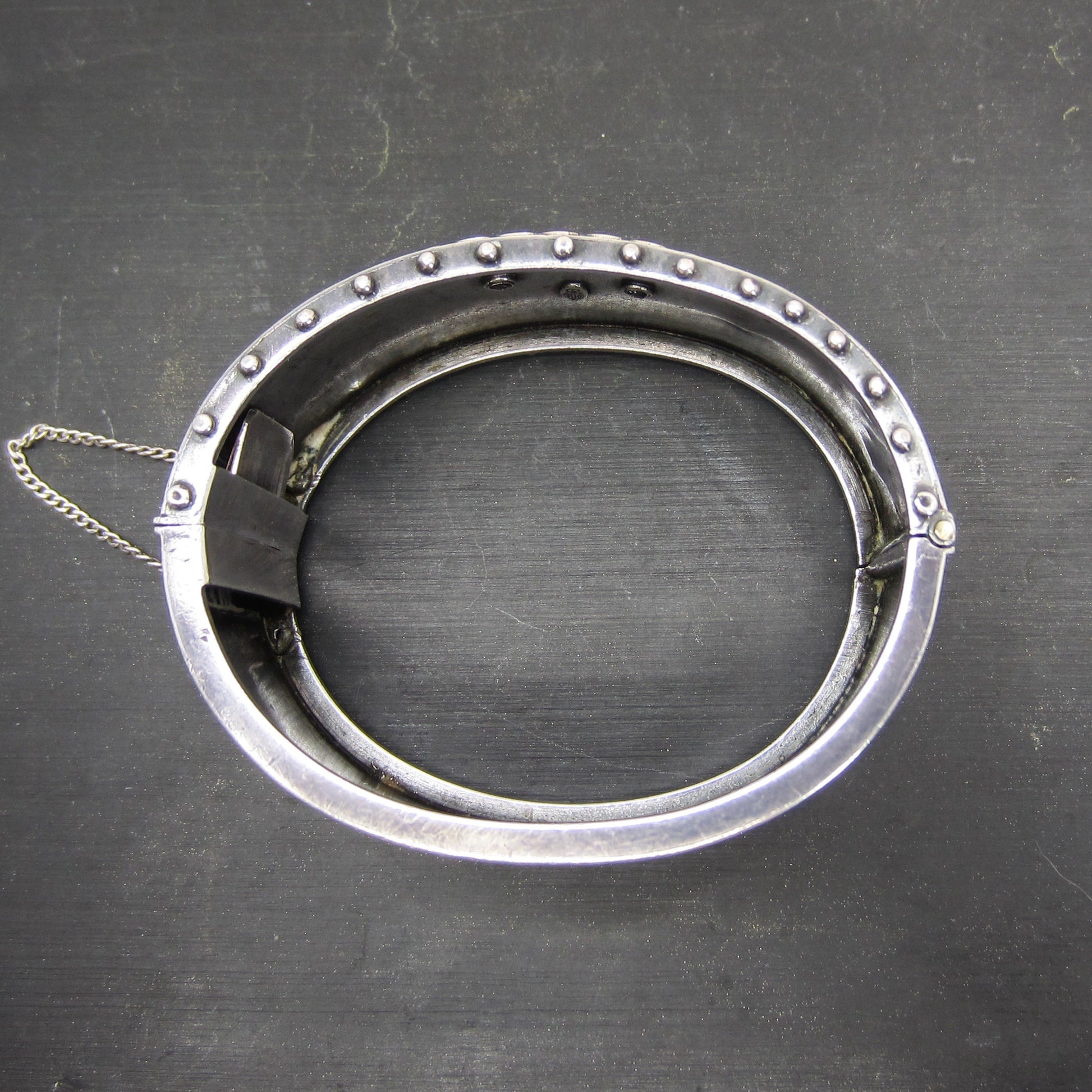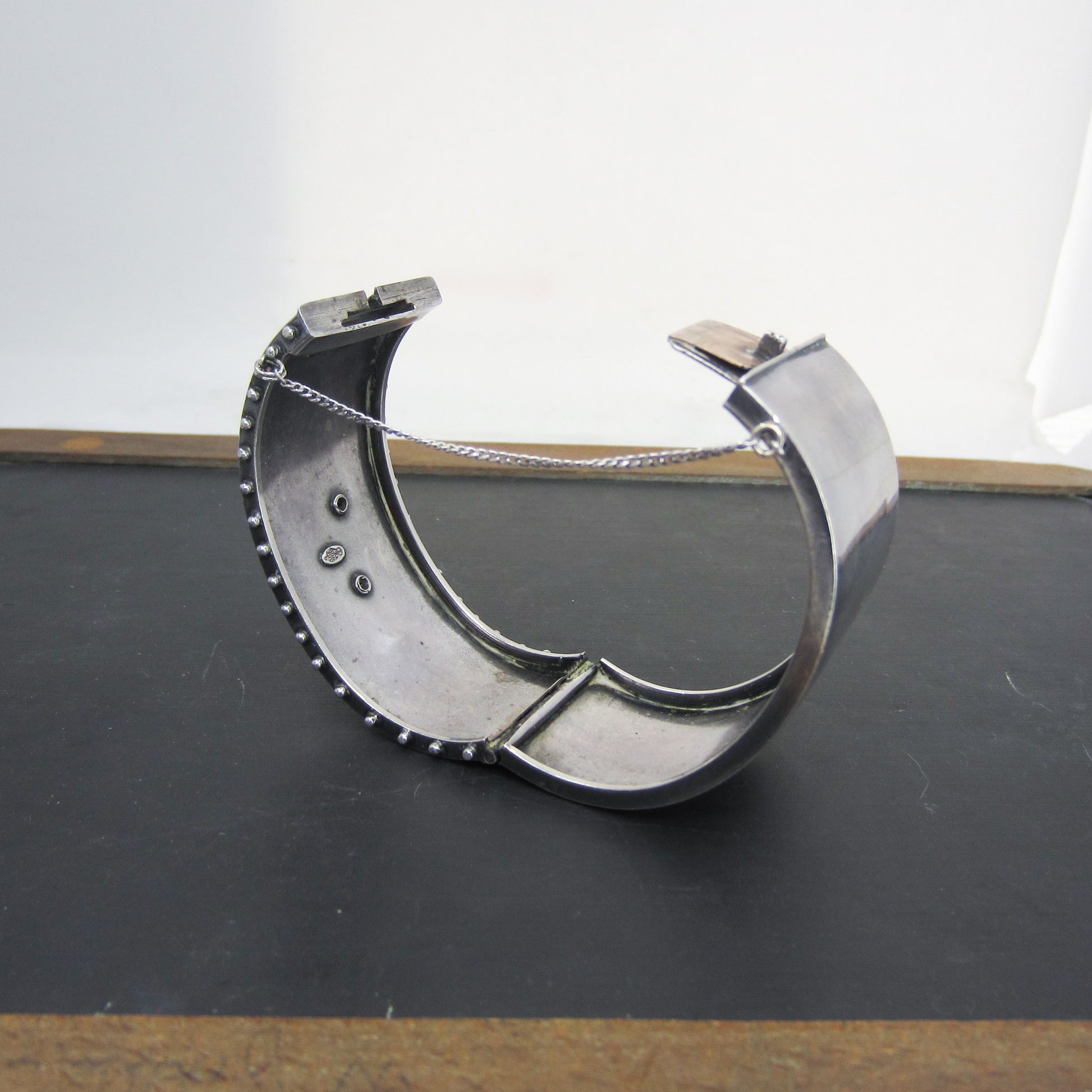 SOLD--Victorian Aesthetic Period Mixed Metals Hinged Bangle Sterling c. 1880