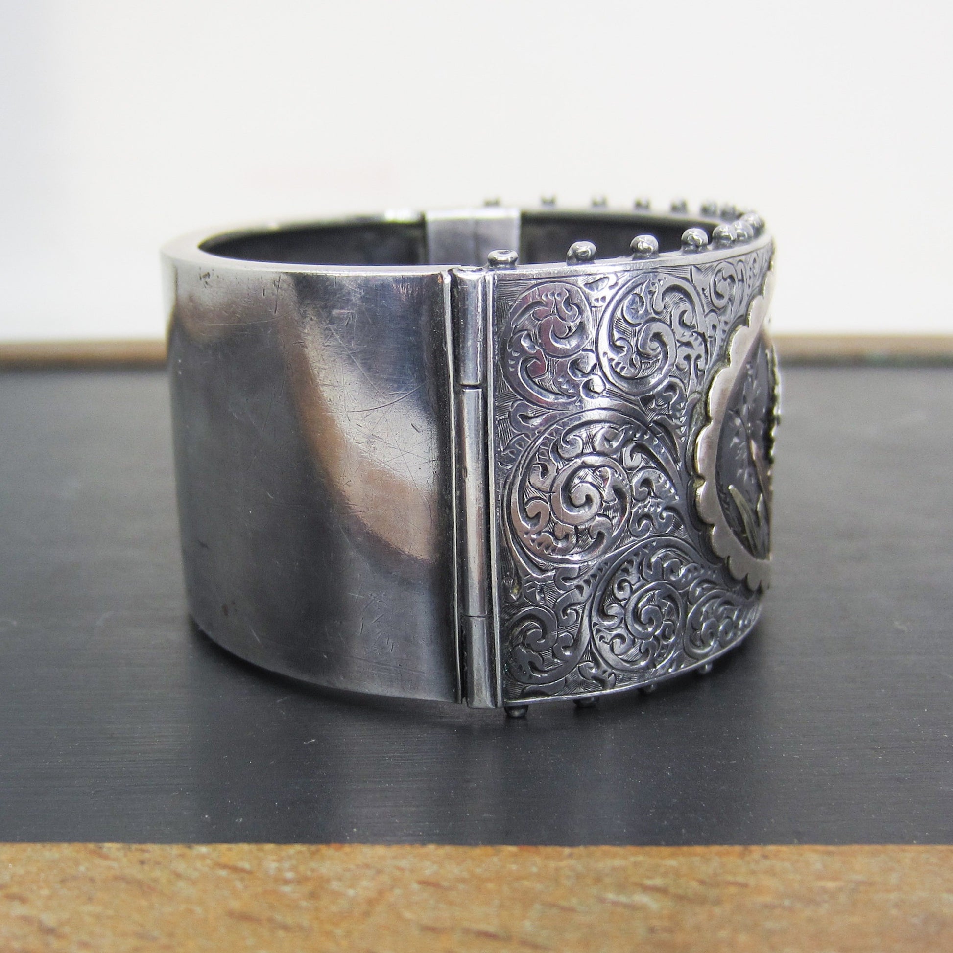 In excellent antique condition. One very small ding on face near hinge. Clasp closes tightly.