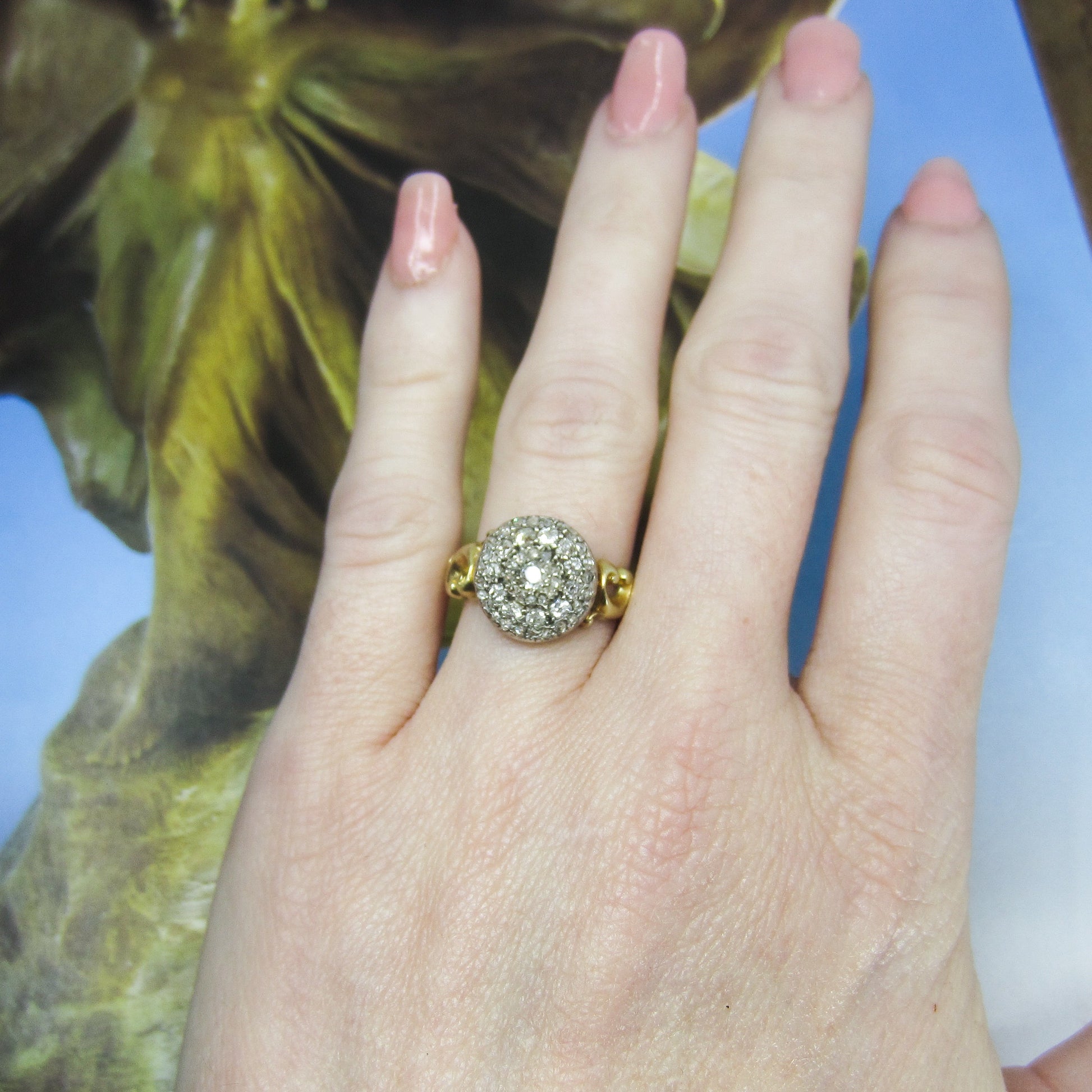 SOLD--Victorian Diamond Cluster Ring Silver/18k c. 1890