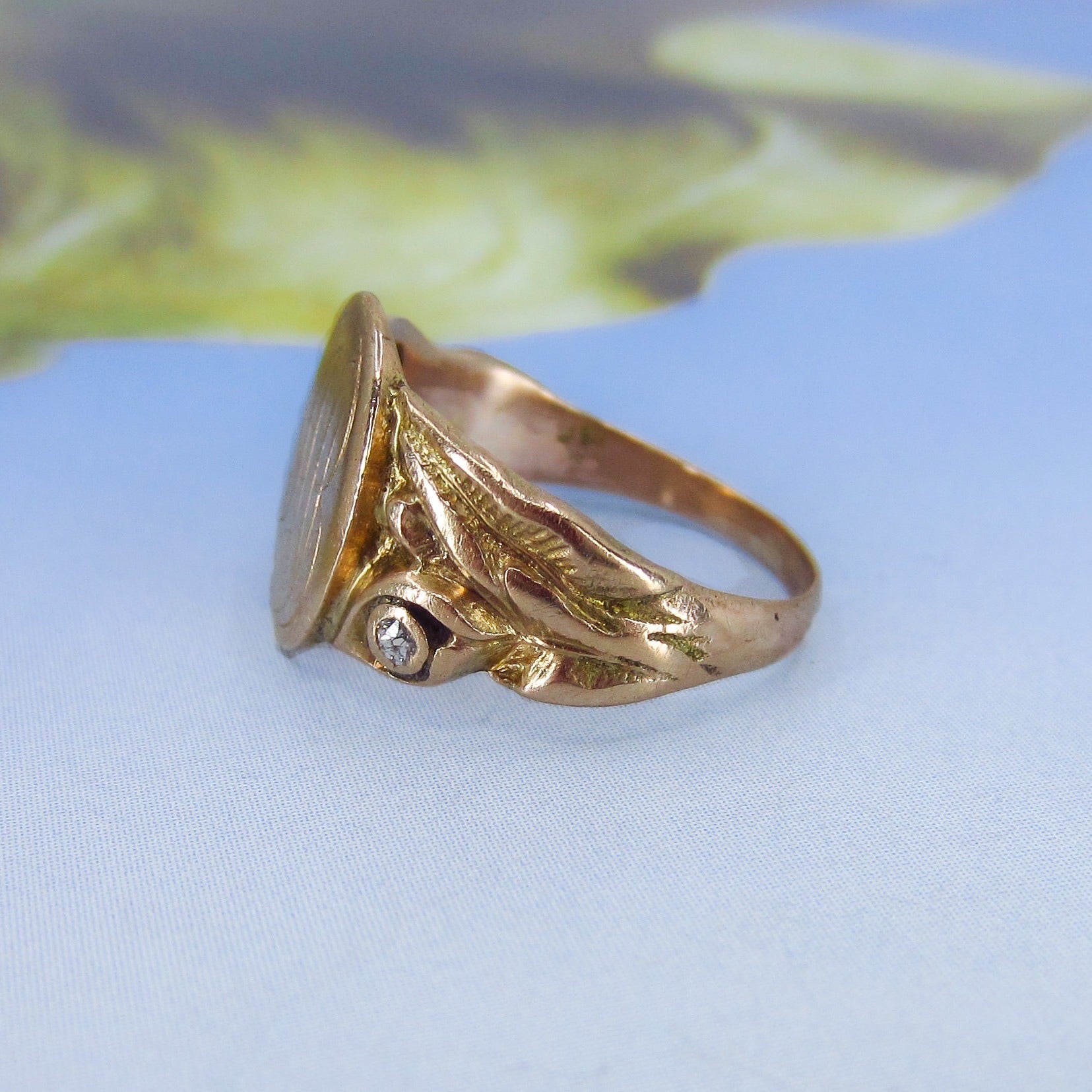 SOLD--Victorian Diamond Signet Ring 14k c. 1900