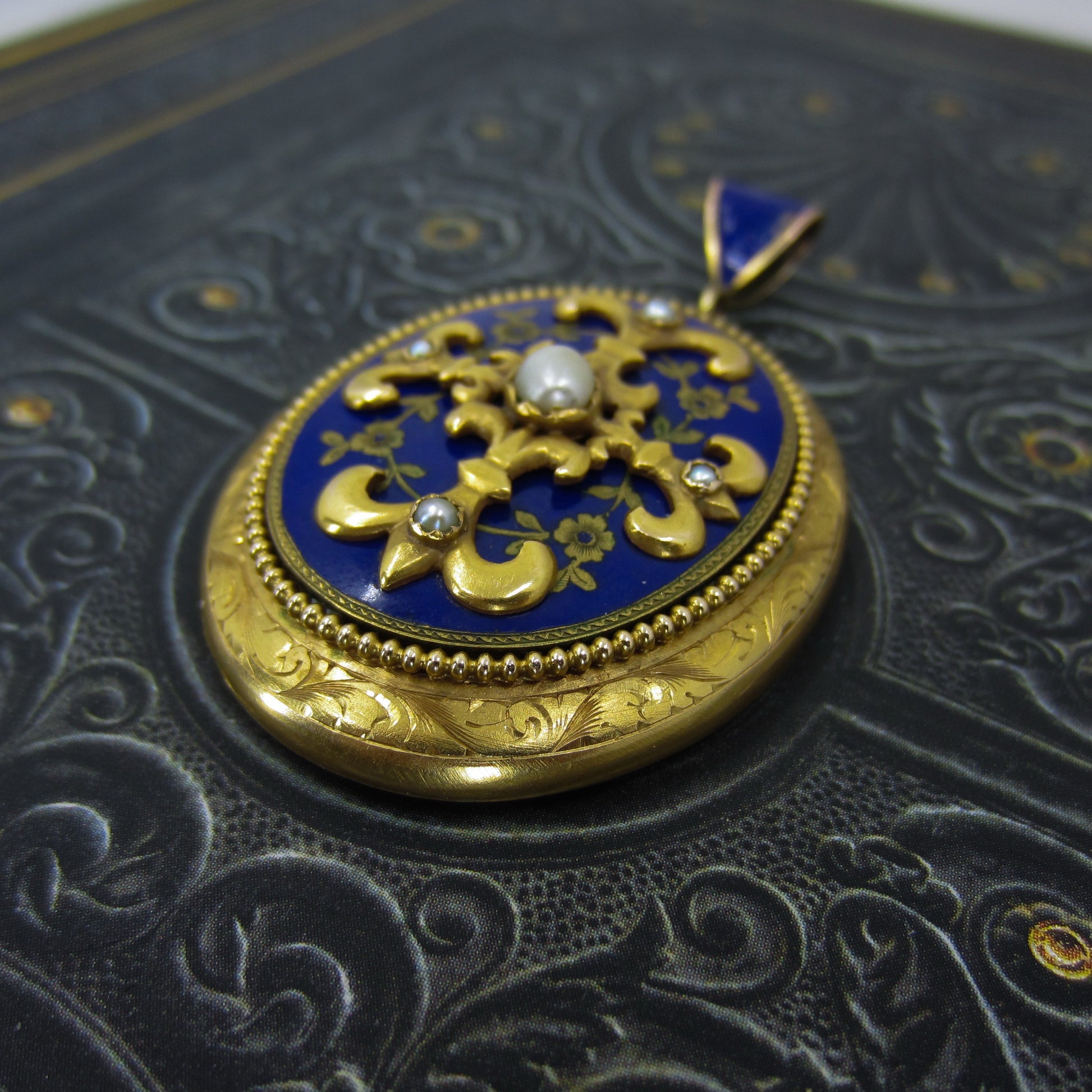 Victorian Enamel and Pearl Locket 14k c. 1890