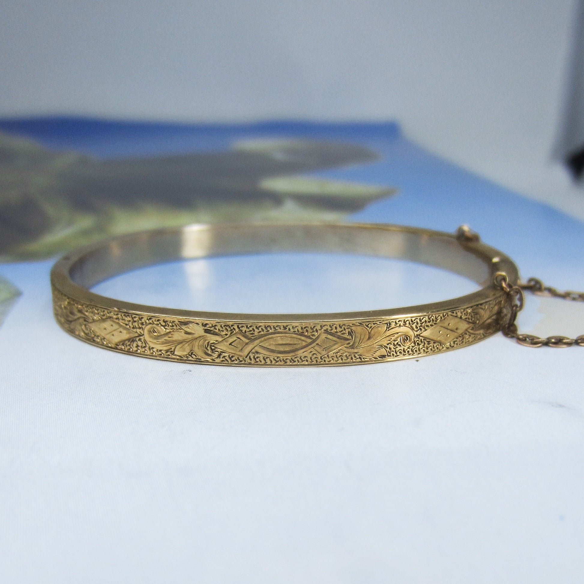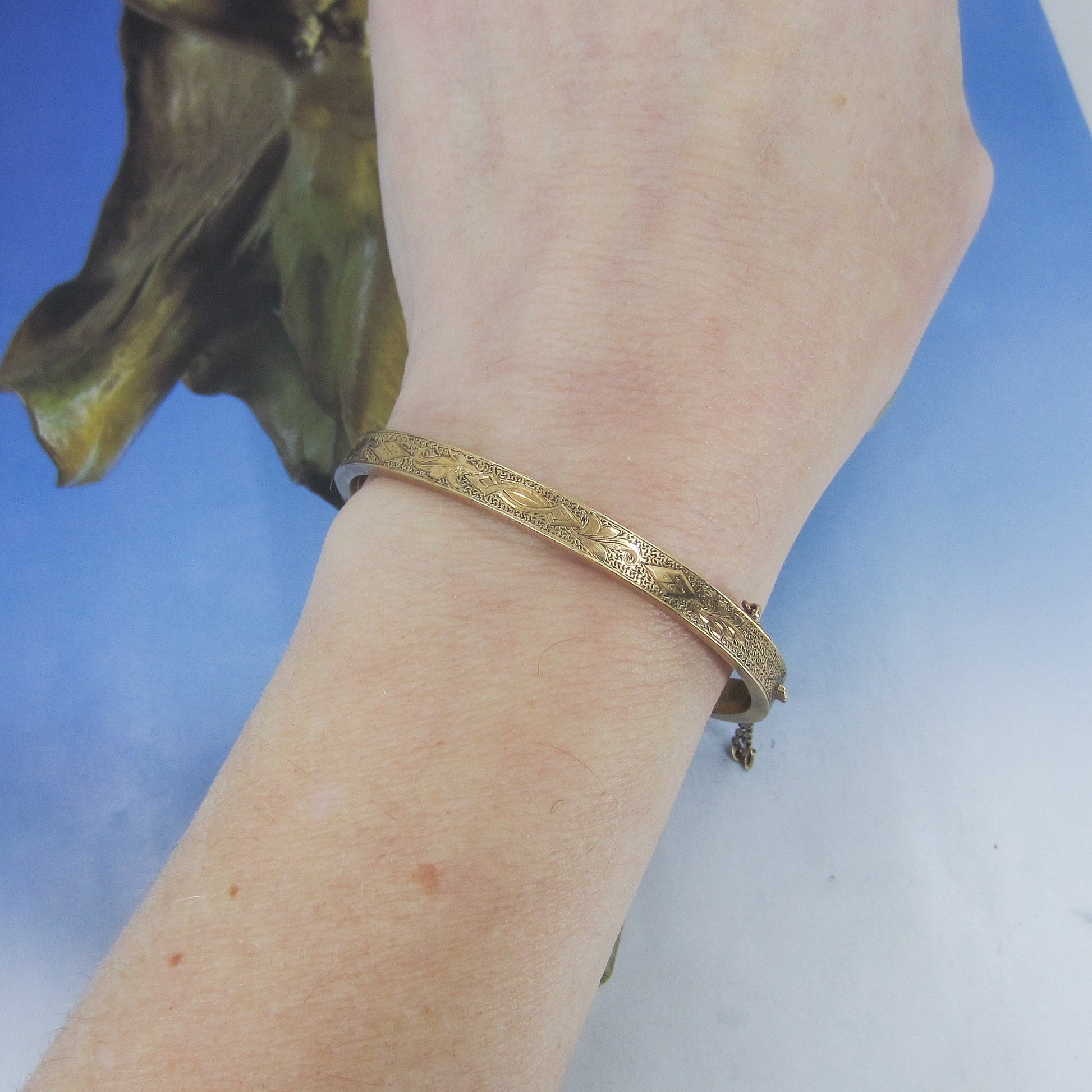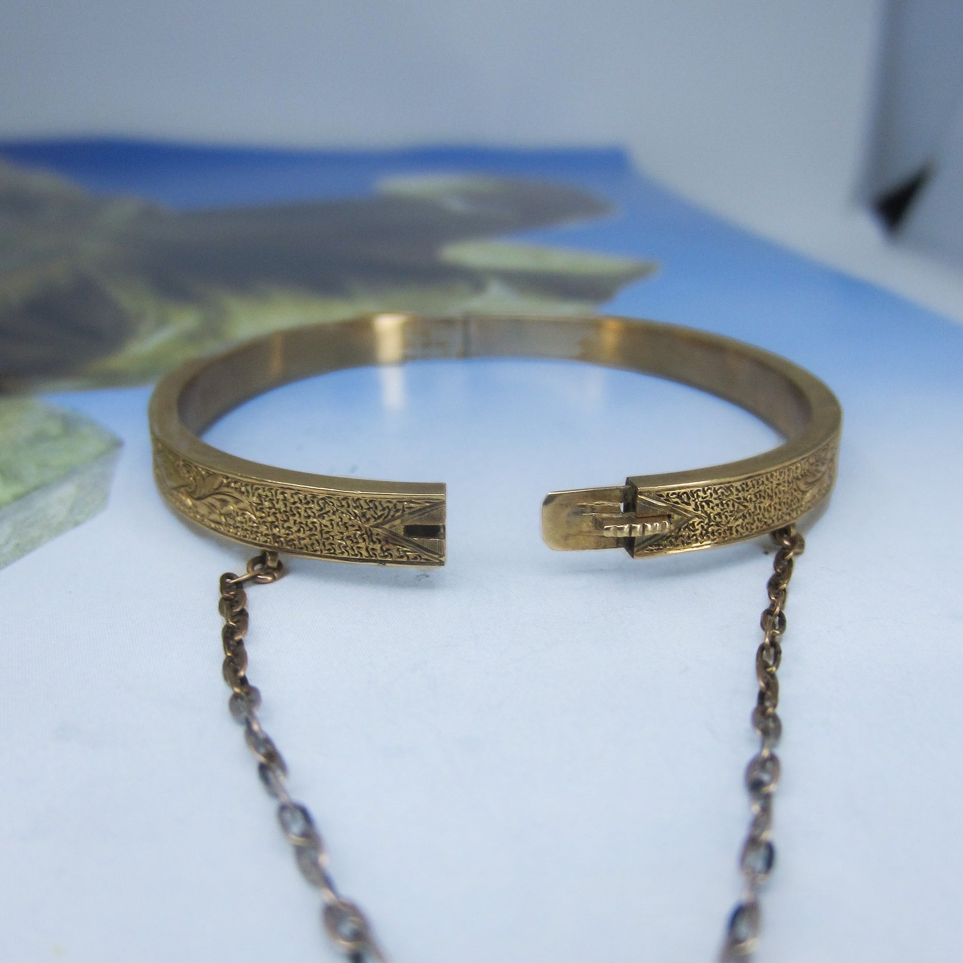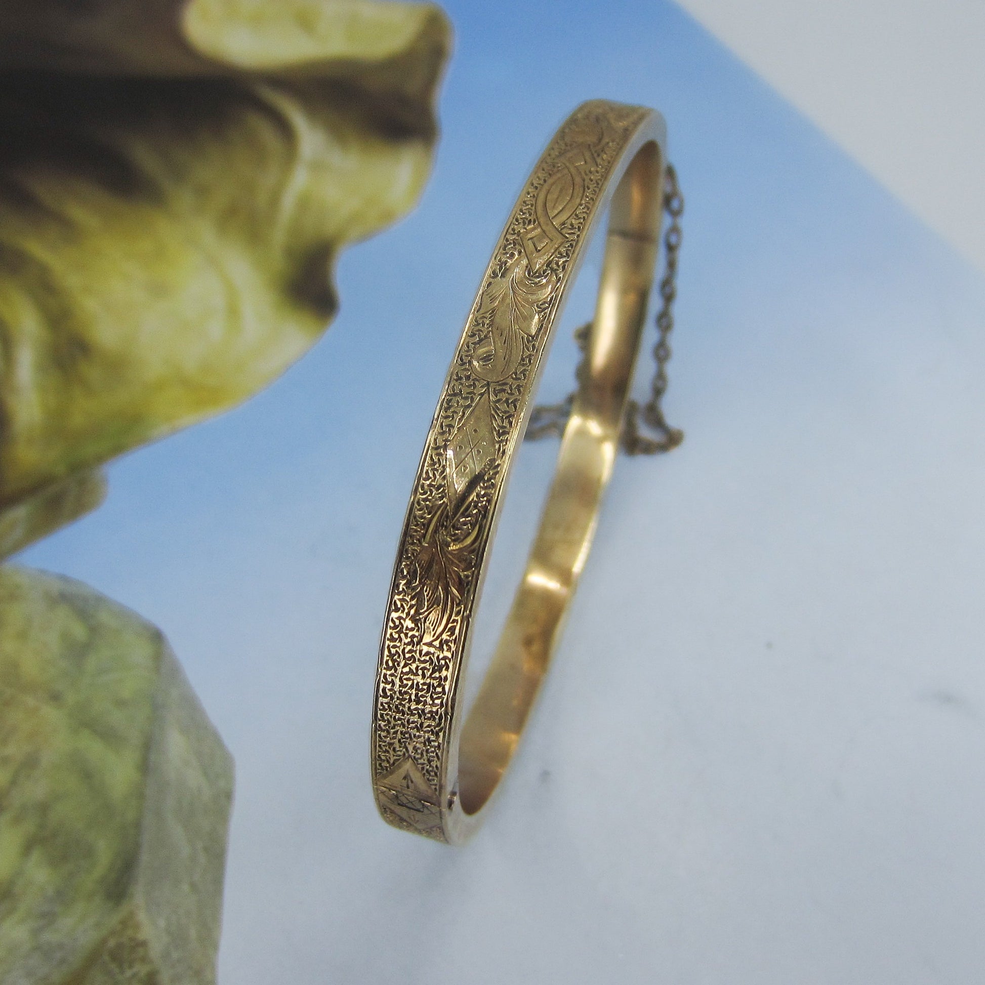 SOLD-Victorian Engraved Small Hinged Bangle 14k c. 1900