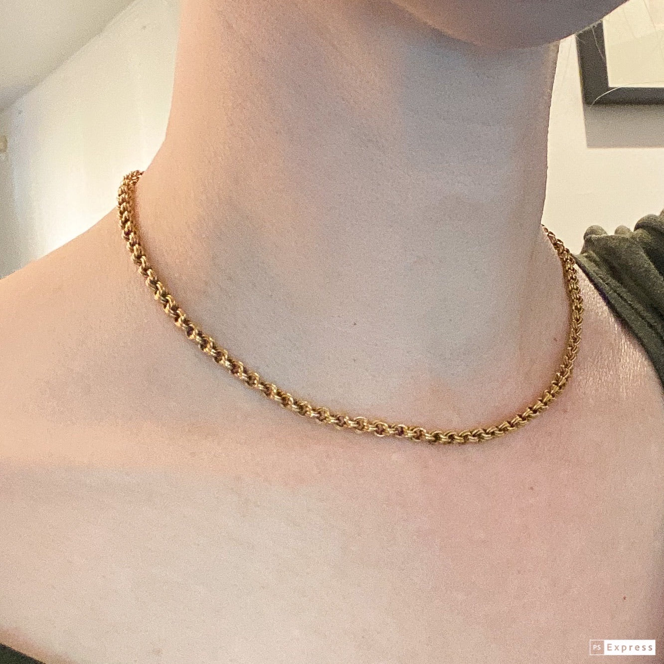 Here's a great Victorian chain to add to your neck mess! This chain was made in 14k gold circa 1870 or so and features three soldered interlocking rings on each link, with an elegantly detailed tube clasp. While short, it adds nice textured a little bulk right at your collar and would look absolutely fantastic with a special charm or pendant!