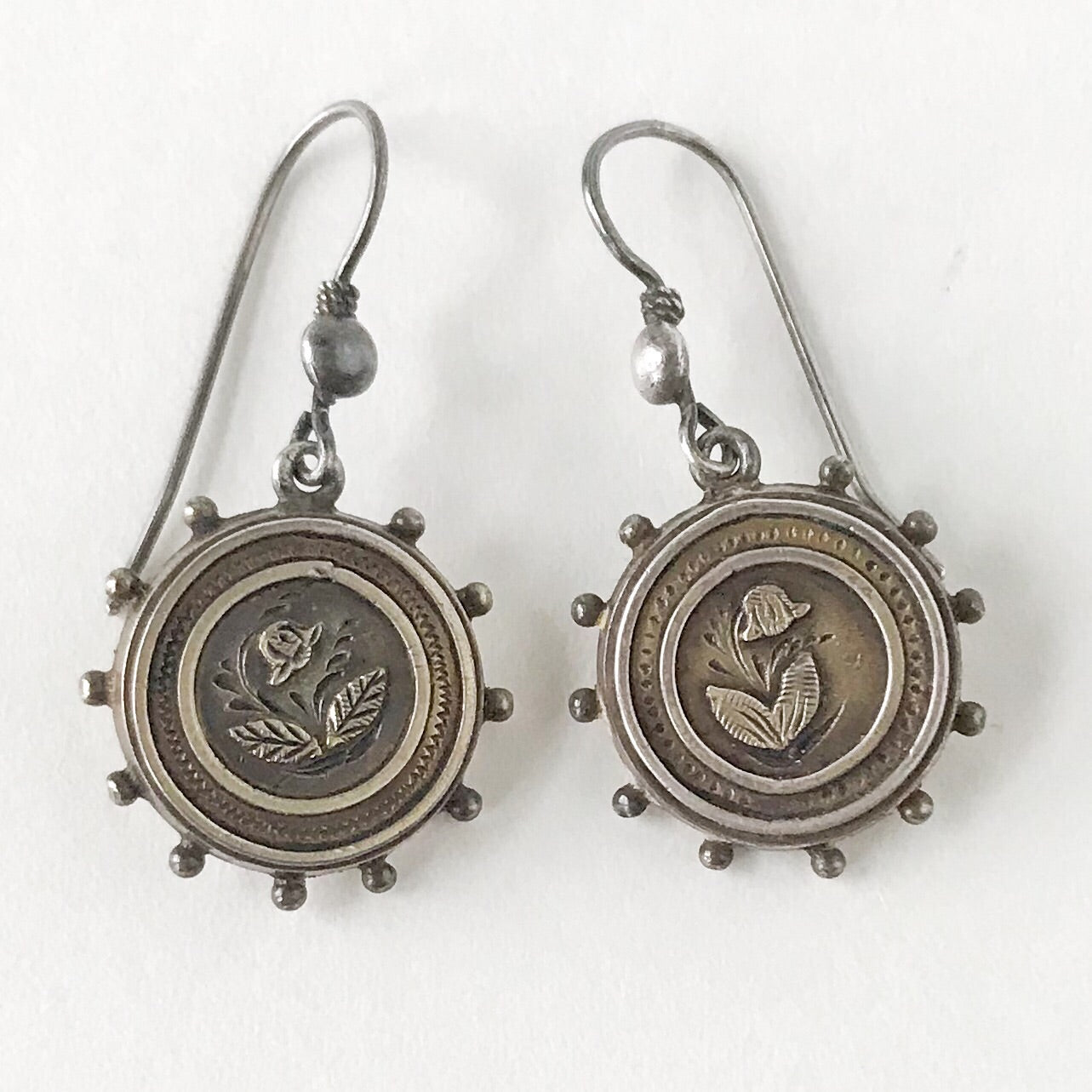 SOLD-Victorian Flower Earrings Silver c. 1890