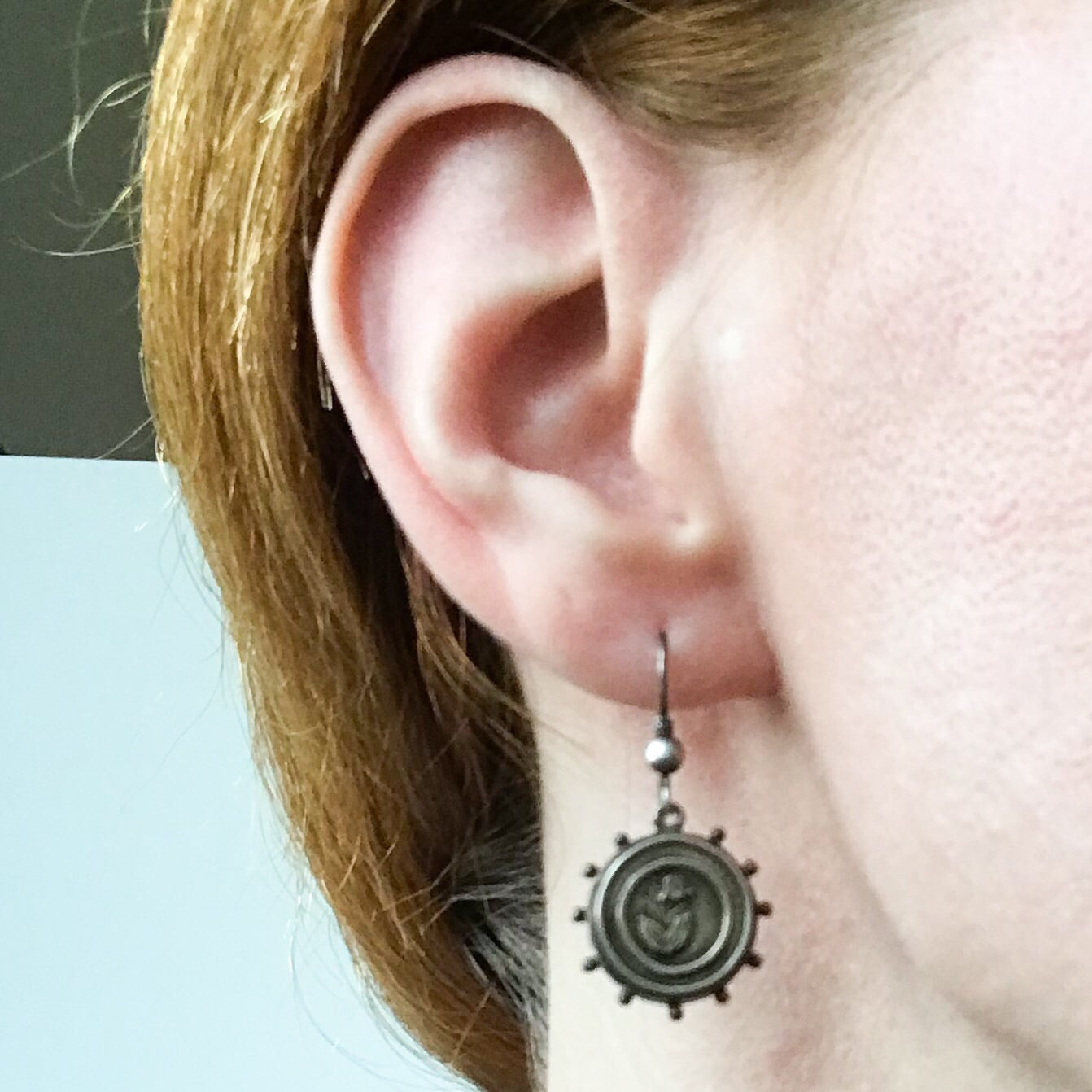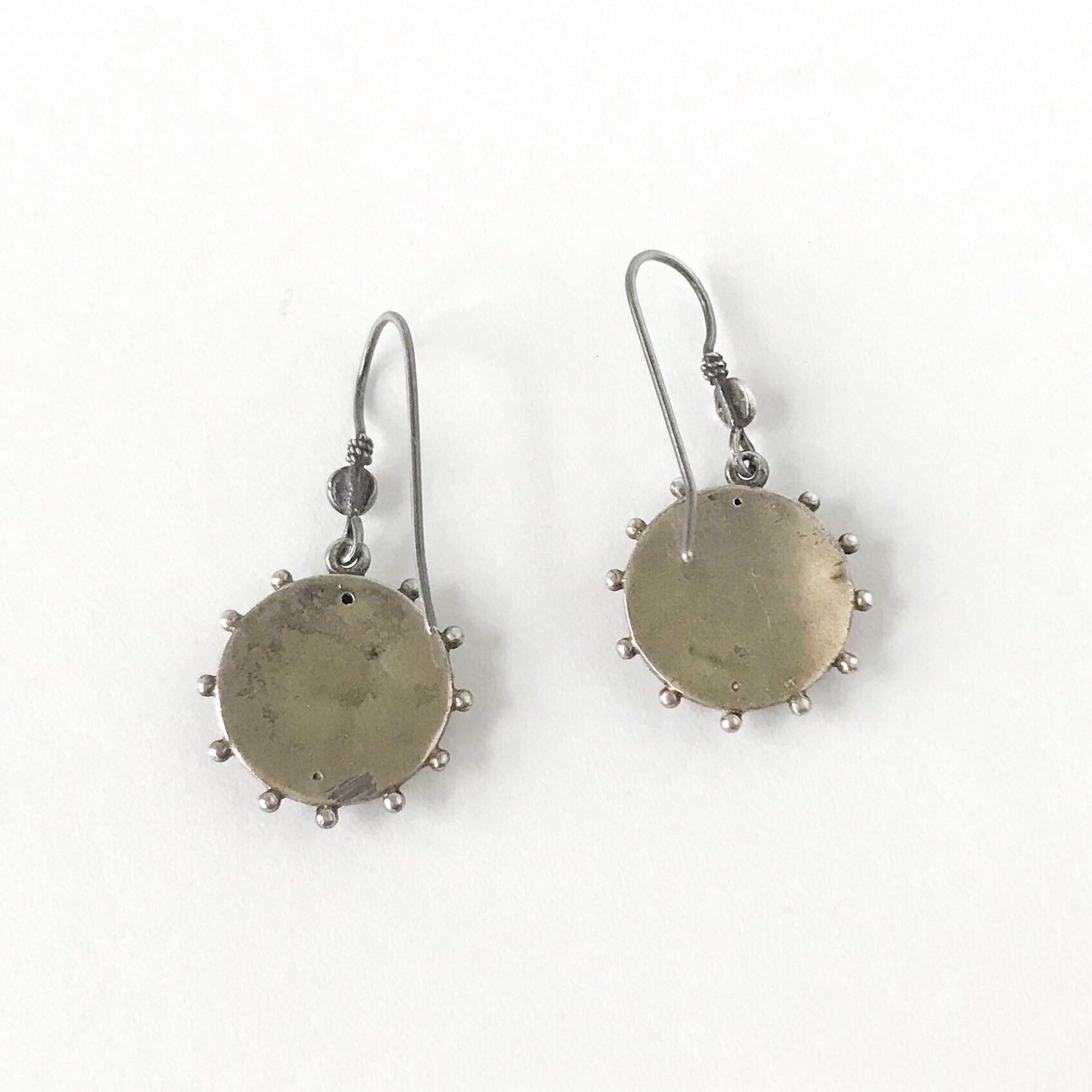 In great condition, earwires may not be original but they are quite old. Heavy patina.