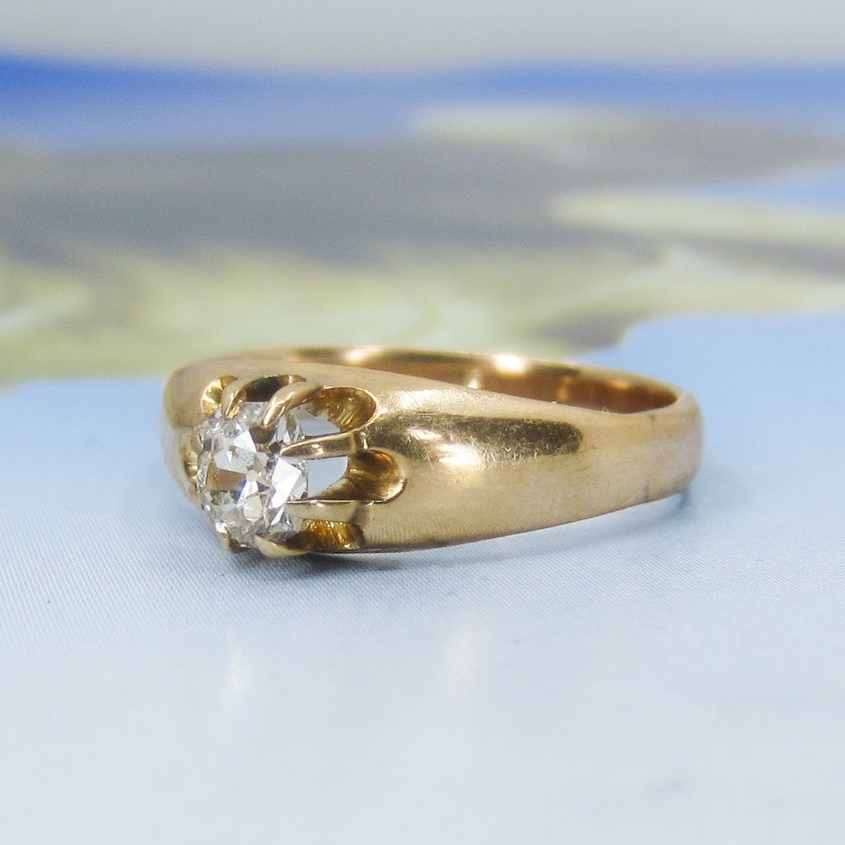 Victorian Old Mine Diamond Solitaire Ring 14k c. 1880