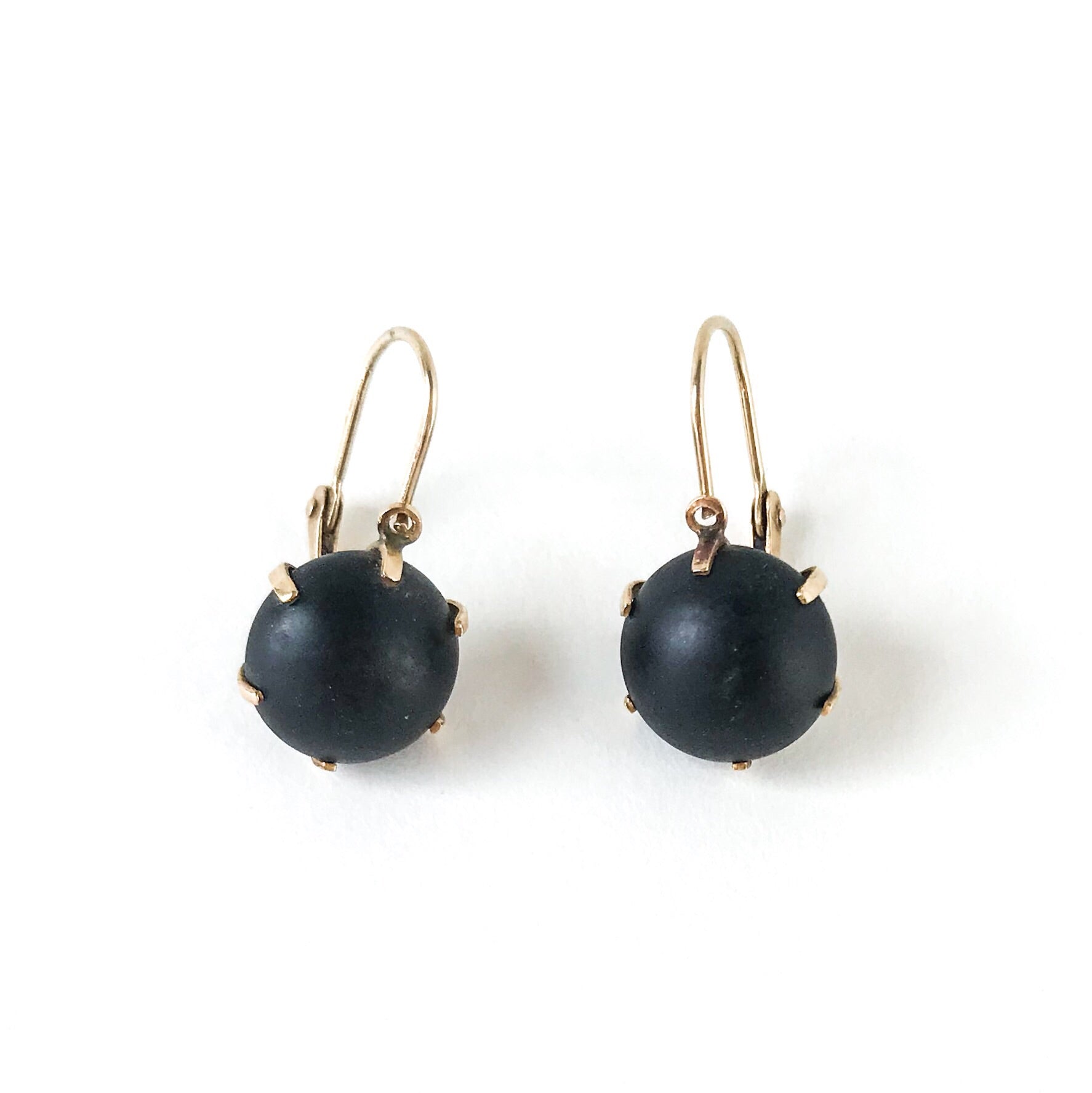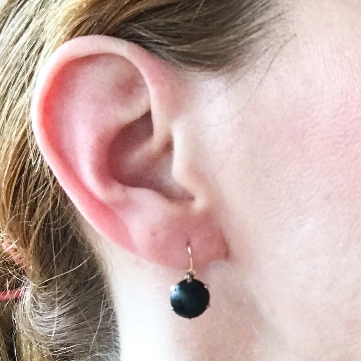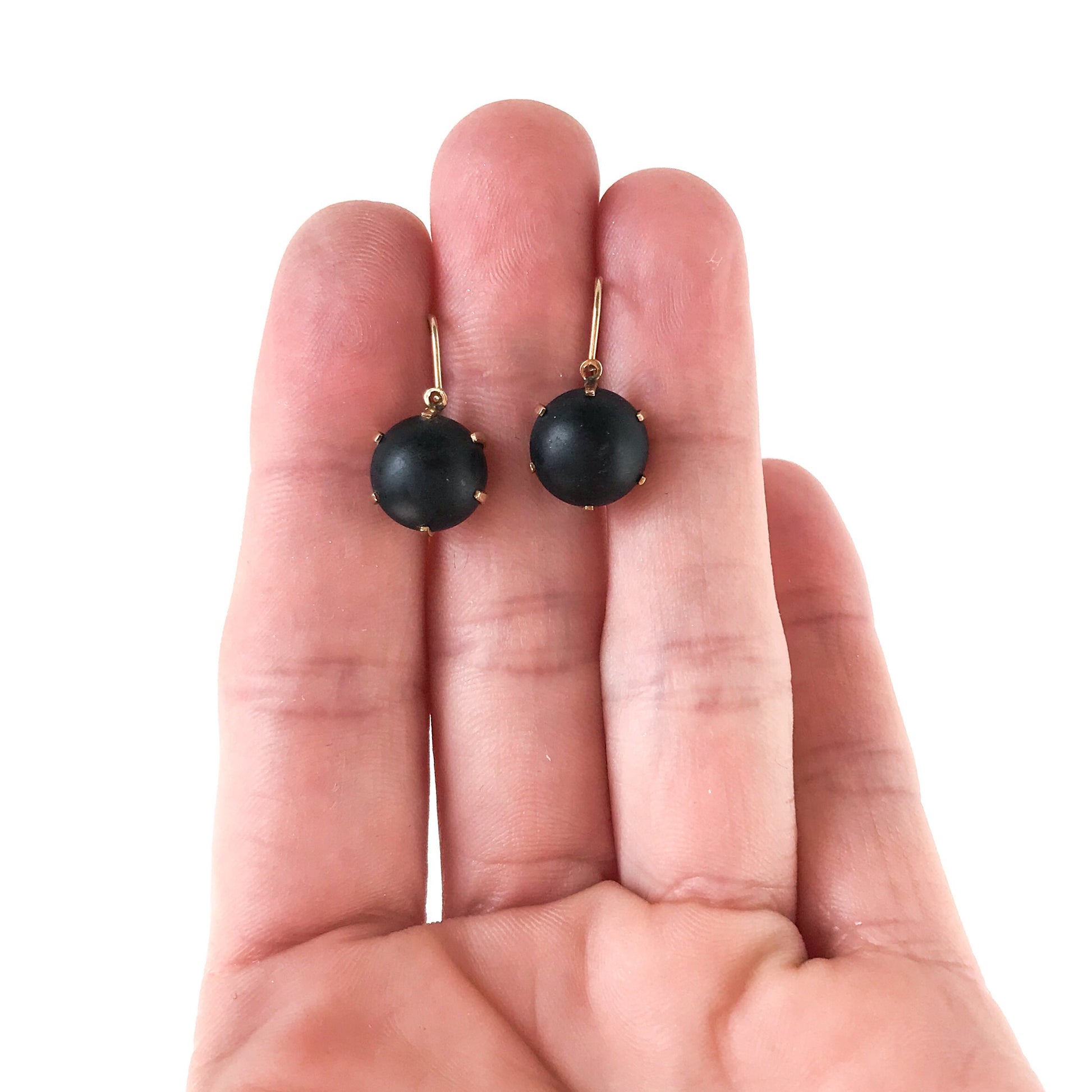 While these Victorian era earrings are not necessarily mourning earrings, they certainly are in the mourning style. Made circa 1890, these 14k earrings feature a matte onyx button that sits just below the ear. Simple and classic, these can be a go-to everyday earring for anyone and black earrings are always on point with any outfit!