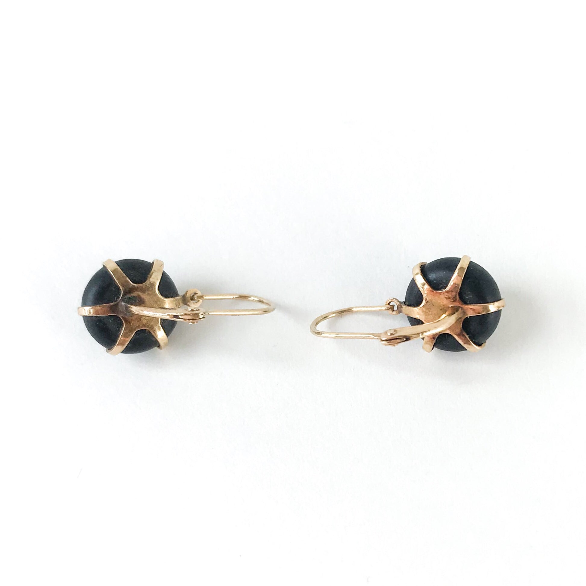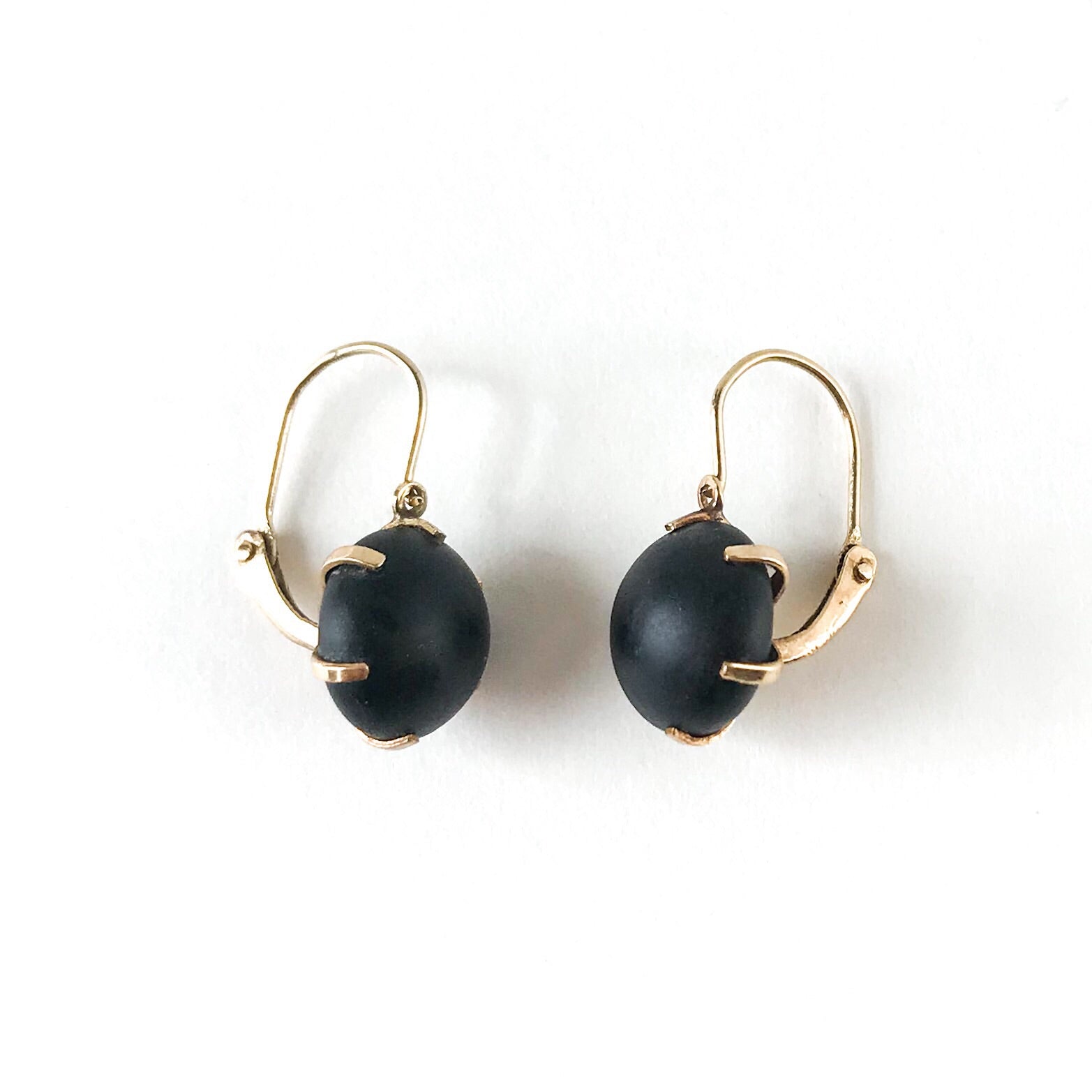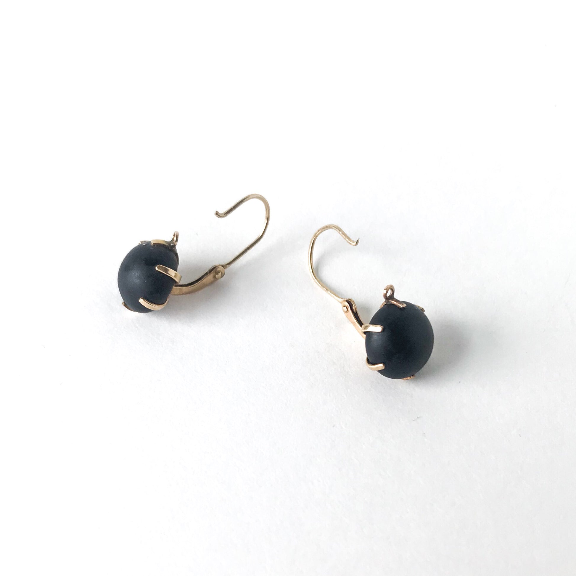 While these Victorian era earrings are not necessarily mourning earrings, they certainly are in the mourning style. Made circa 1890, these 14k earrings feature a matte onyx button that sits just below the ear. Simple and classic, these can be a go-to everyday earring for anyone and black earrings are always on point with any outfit!