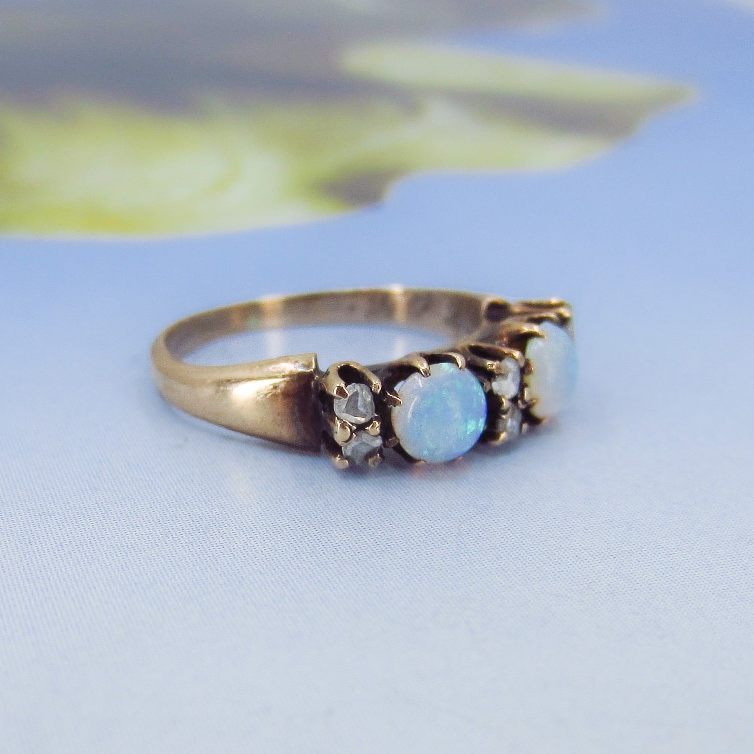 SOLD-Victorian Opal and Rose Cut Diamond Ring 14k c. 1890