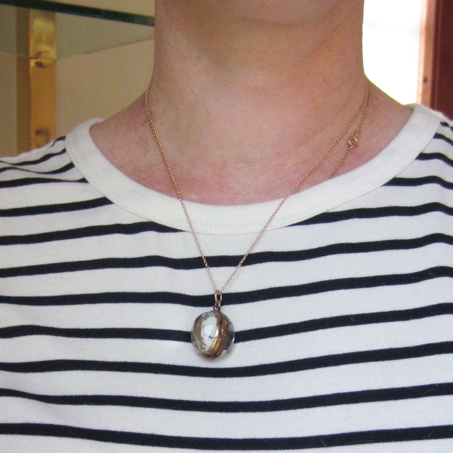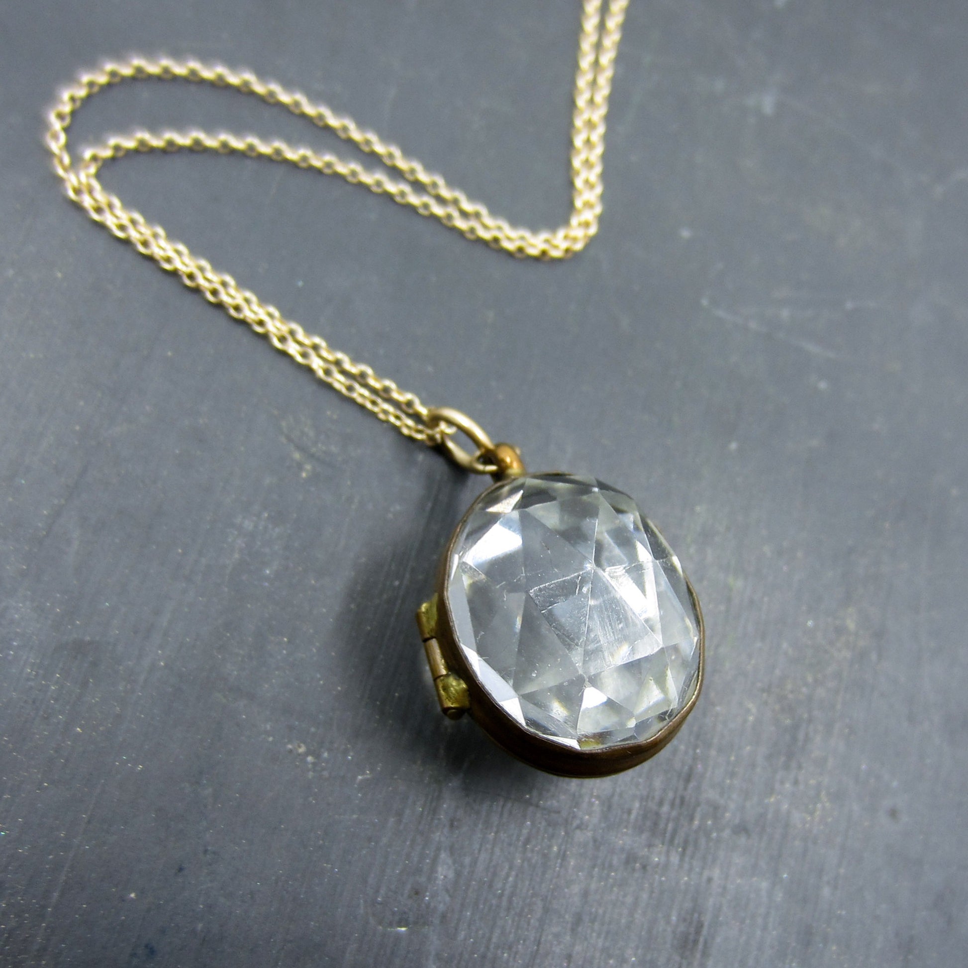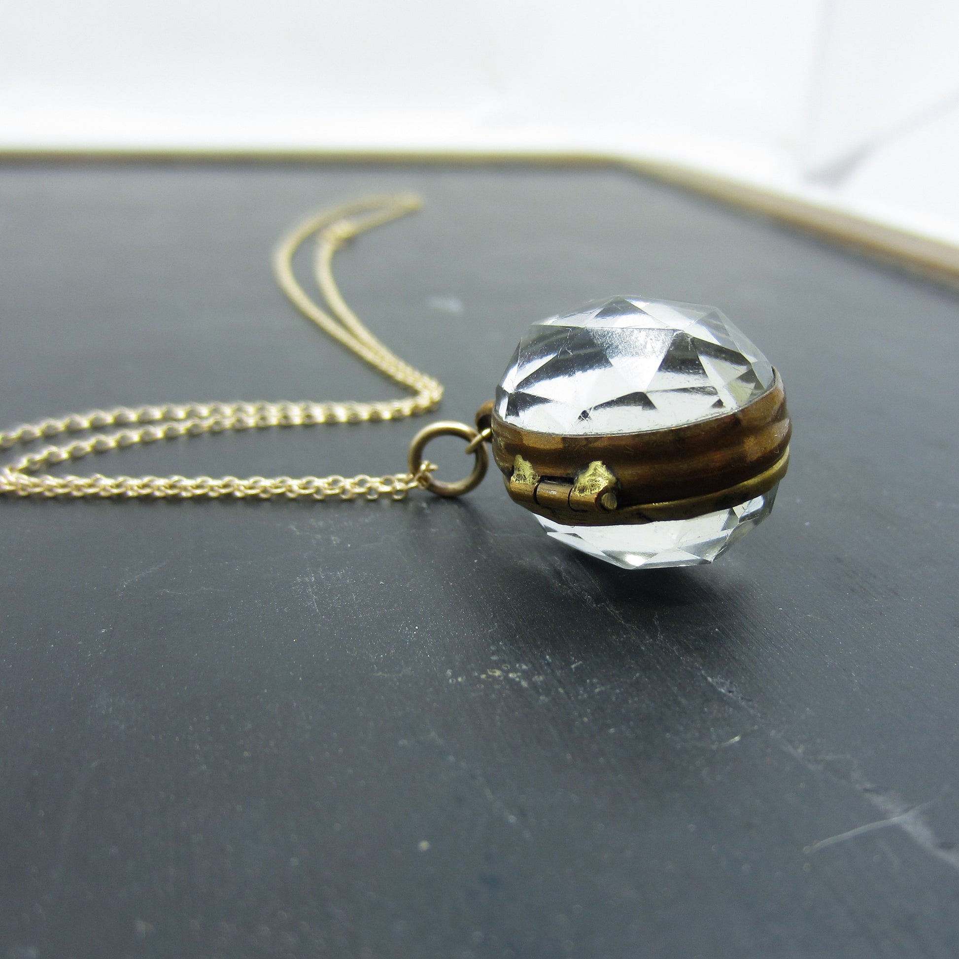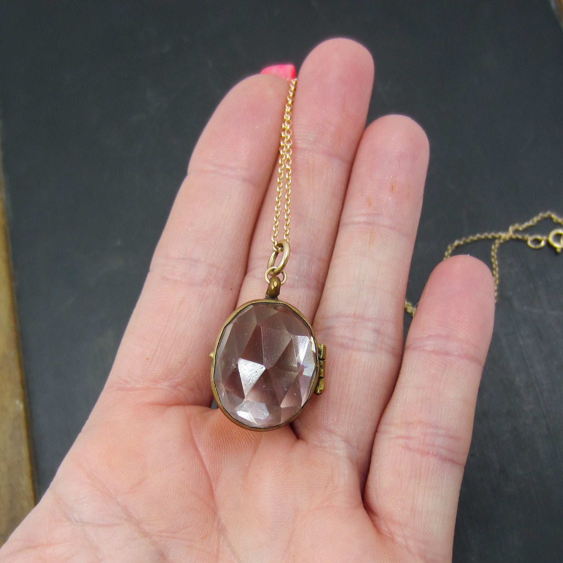 Ugh this thing is so gorgeous--you just want to hold it and look at it and roll it around in your hands as soon as you lay eyes on it! Made circa late 1800's, this is a Victorian piece and consists of two faceted crystal halves set in a locket frame of gold-fill. The crystal is faceted much like a rose cut and is deeply cut so the entire locket resembles an egg. It is glorious! A very pretty, special little jewel, ready for your neck!