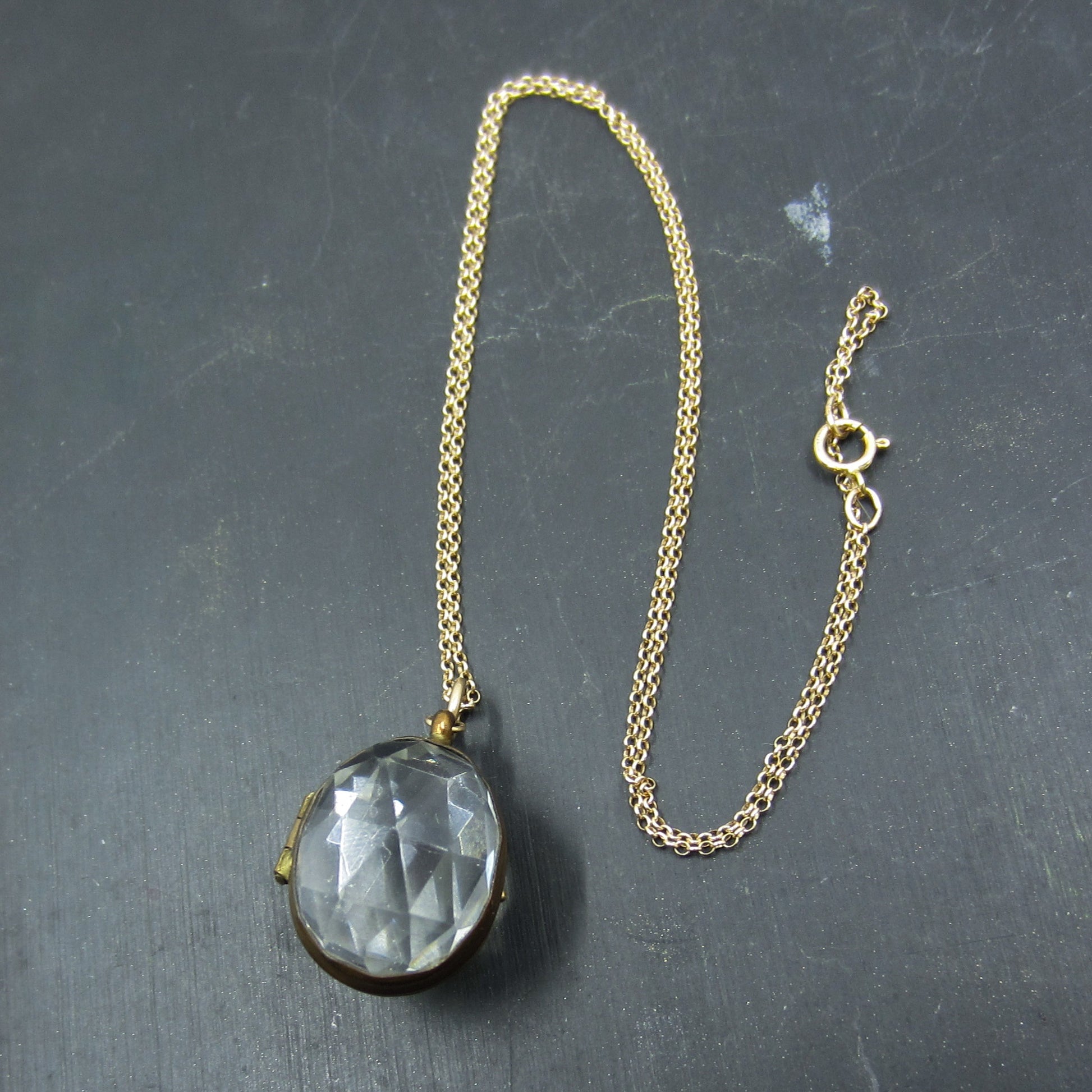 SOLD-Victorian Faceted Crystal Egg Locket Gold-Filled c. 1890
