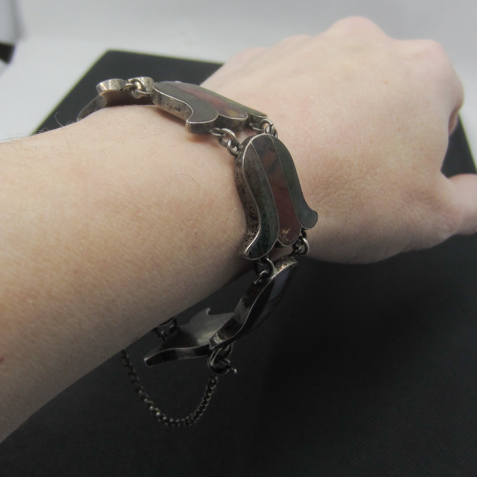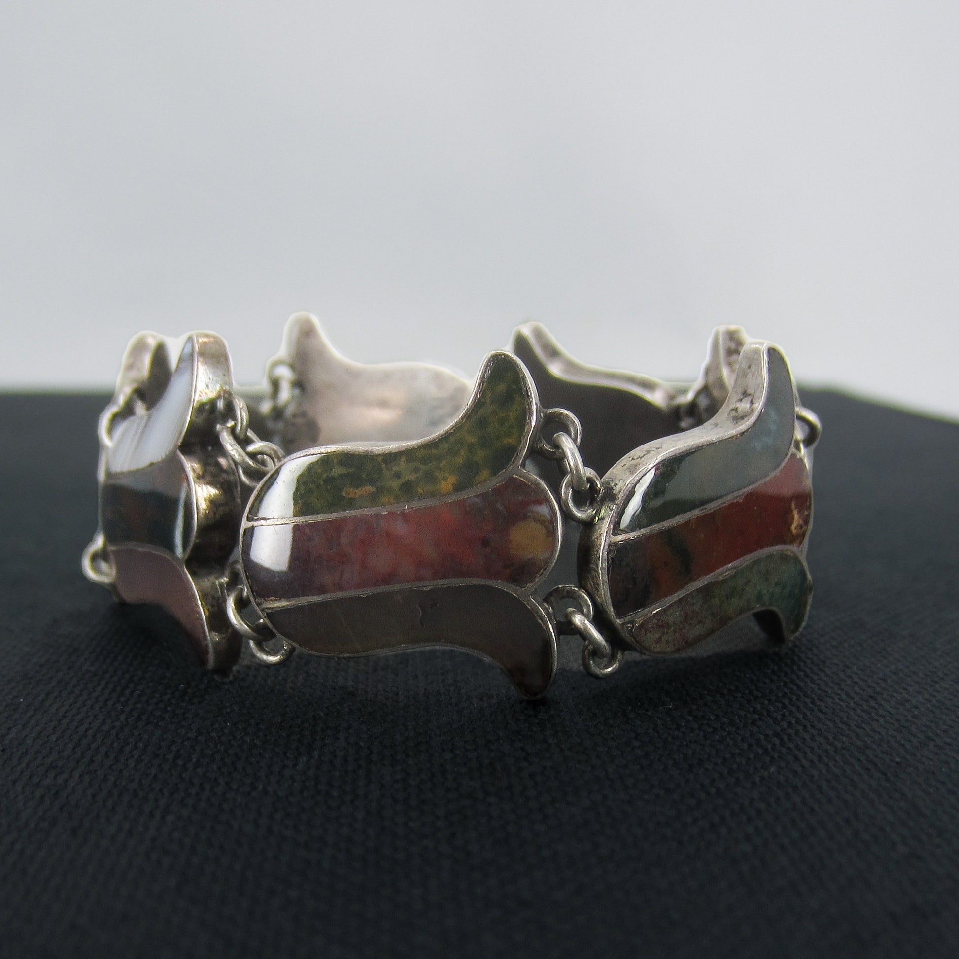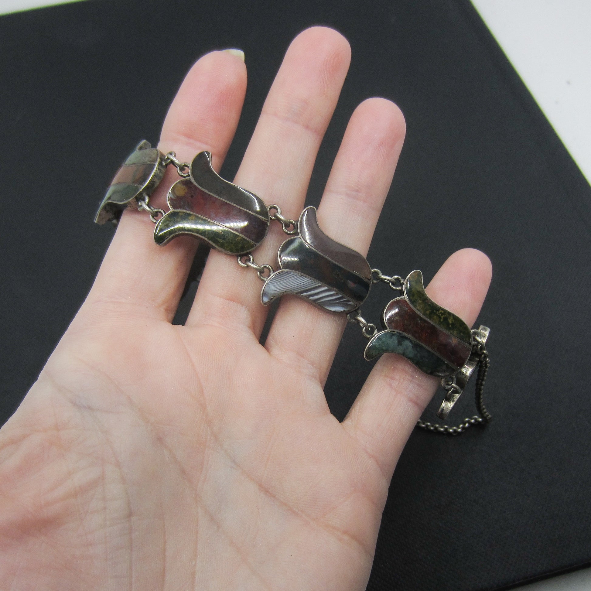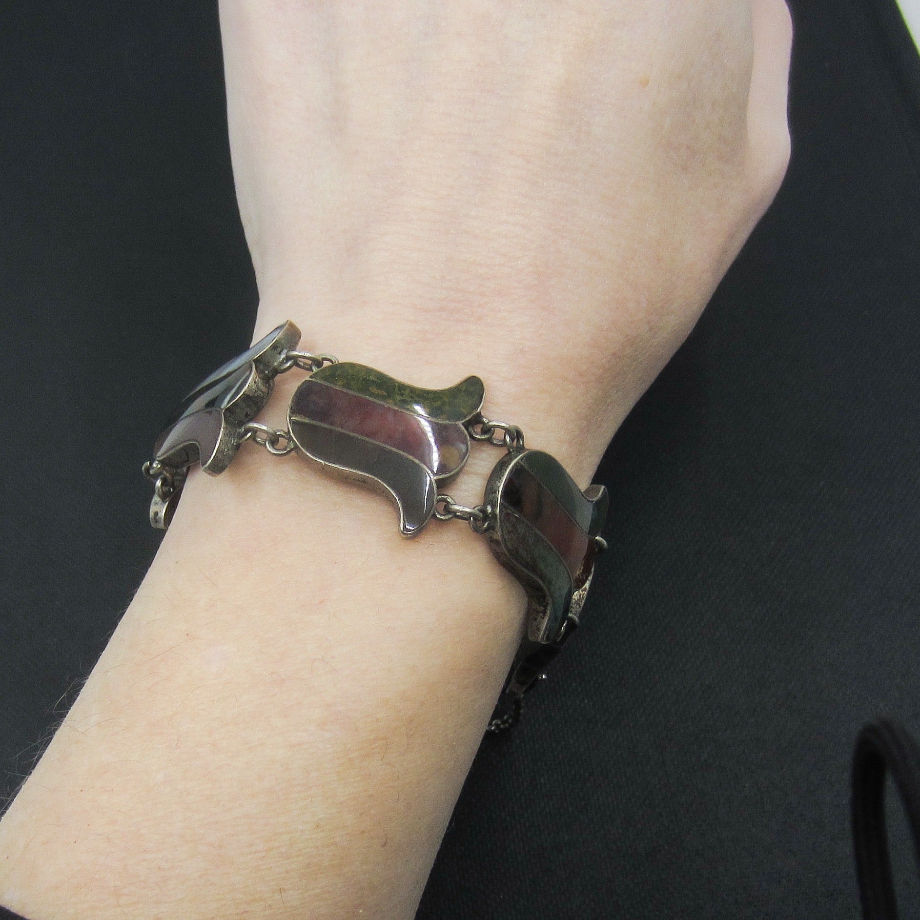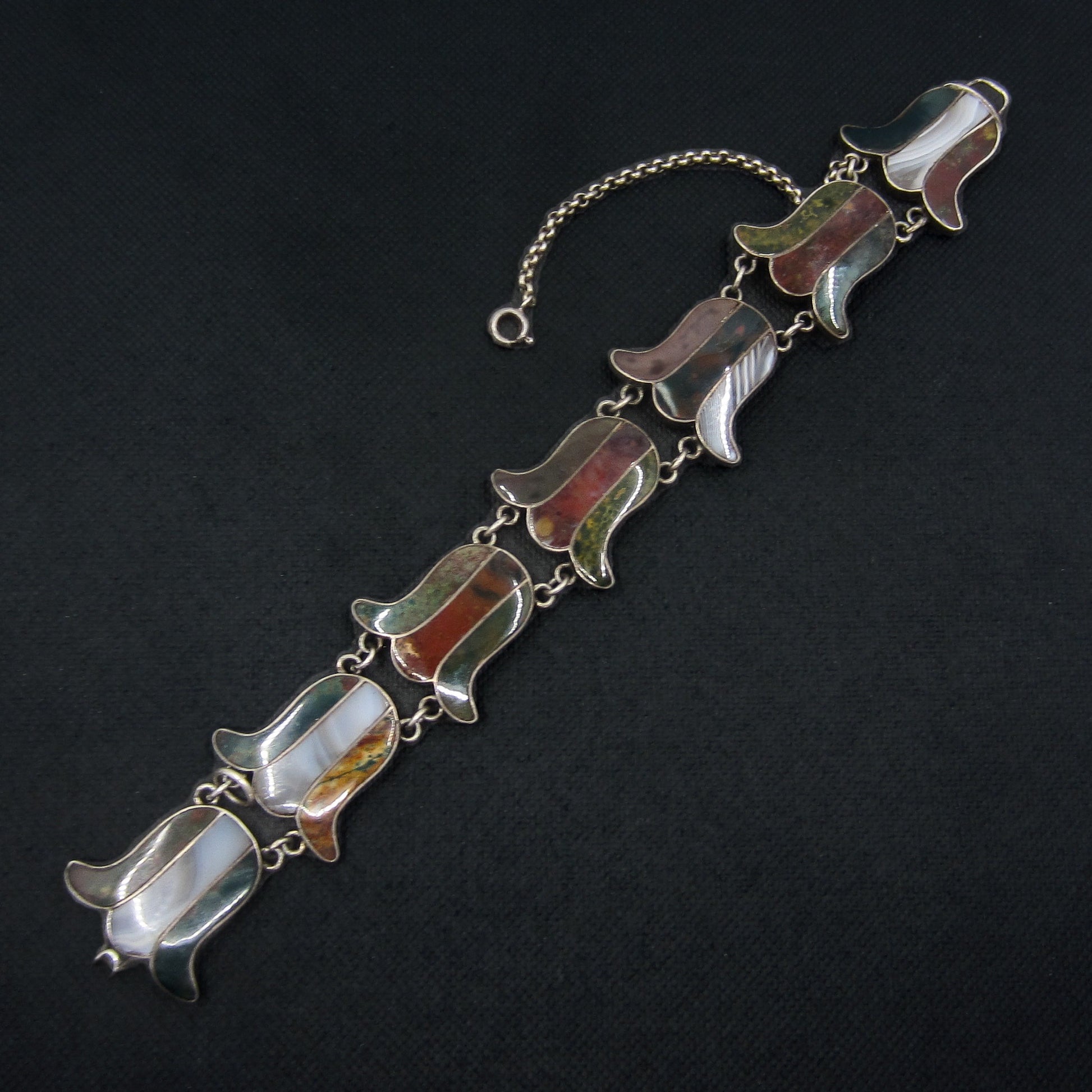 SOLD--Victorian Scottish Agate Tulip Bracelet Sterling c. 1880