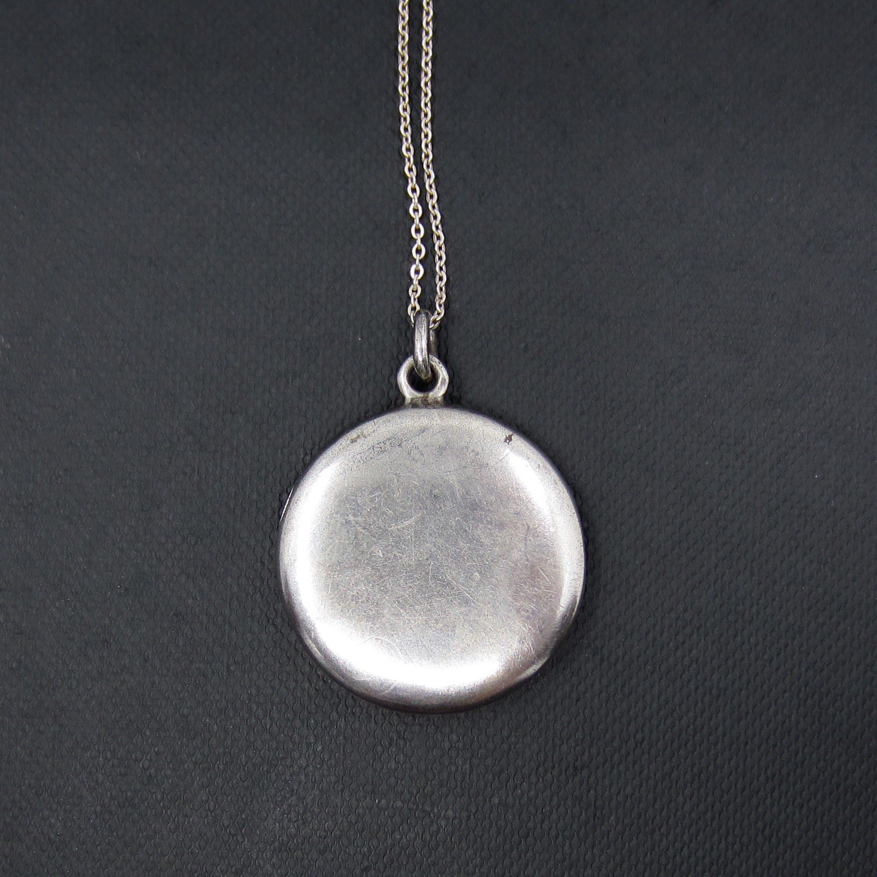 Measures 1 1/8" diameter. Sterling chain measures nearly 20" and is a later addition.