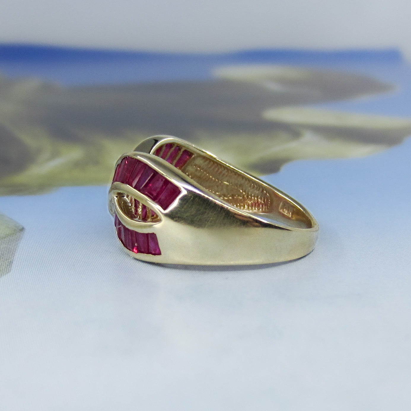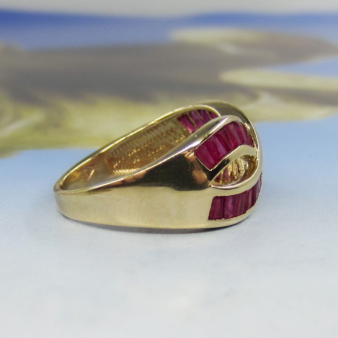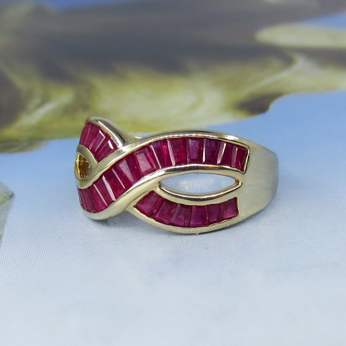 SOLD--Vintage 90’s Ruby Baguette Infinity Ring 14k c. 1995