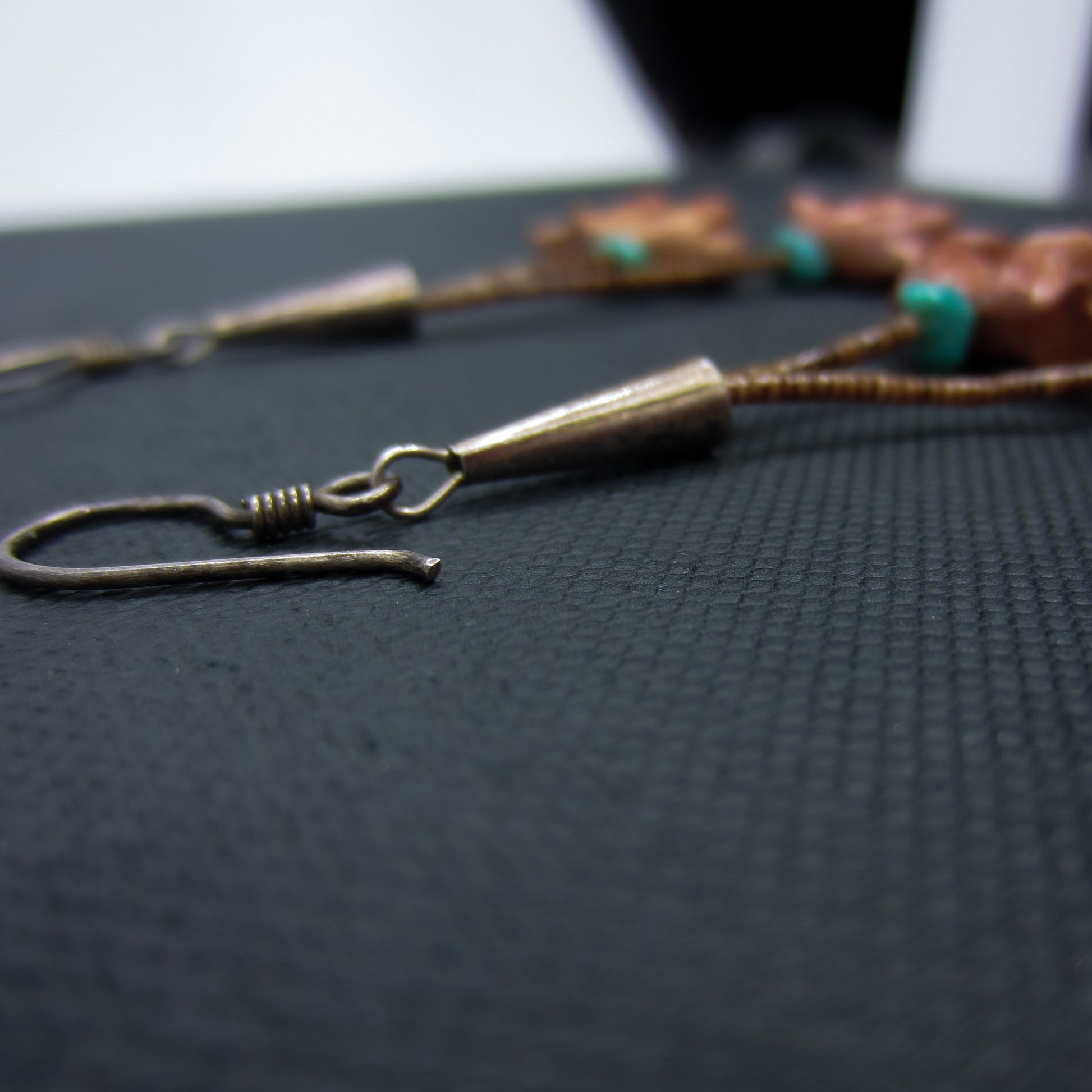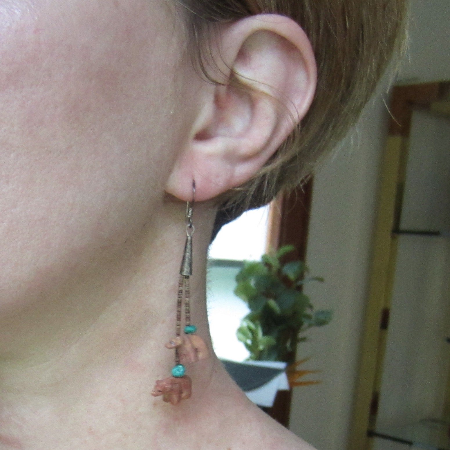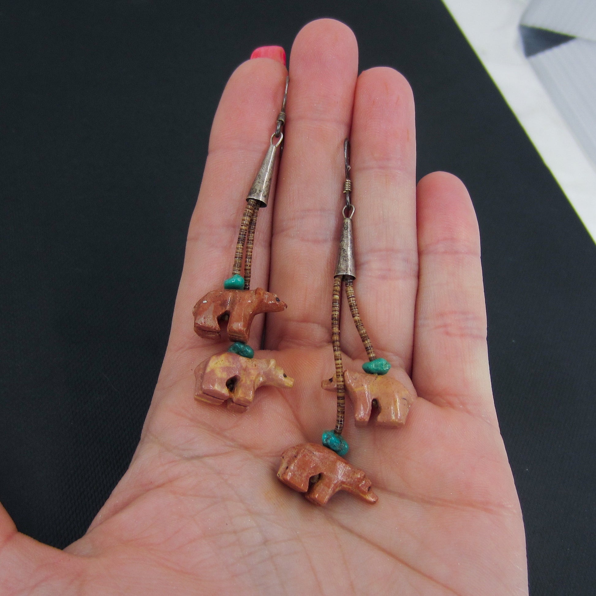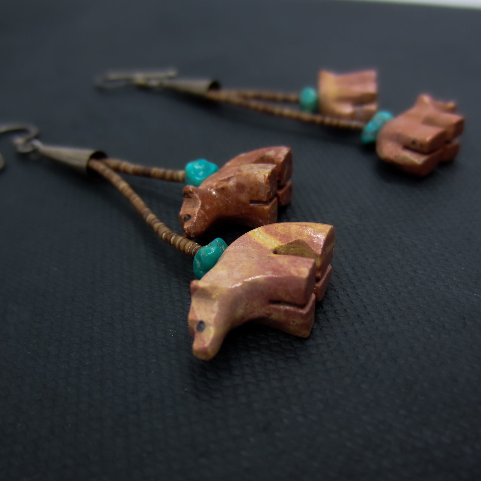 A colorful pair of jasper, turquoise and shell Native American bear fetish earrings circa 1970s.