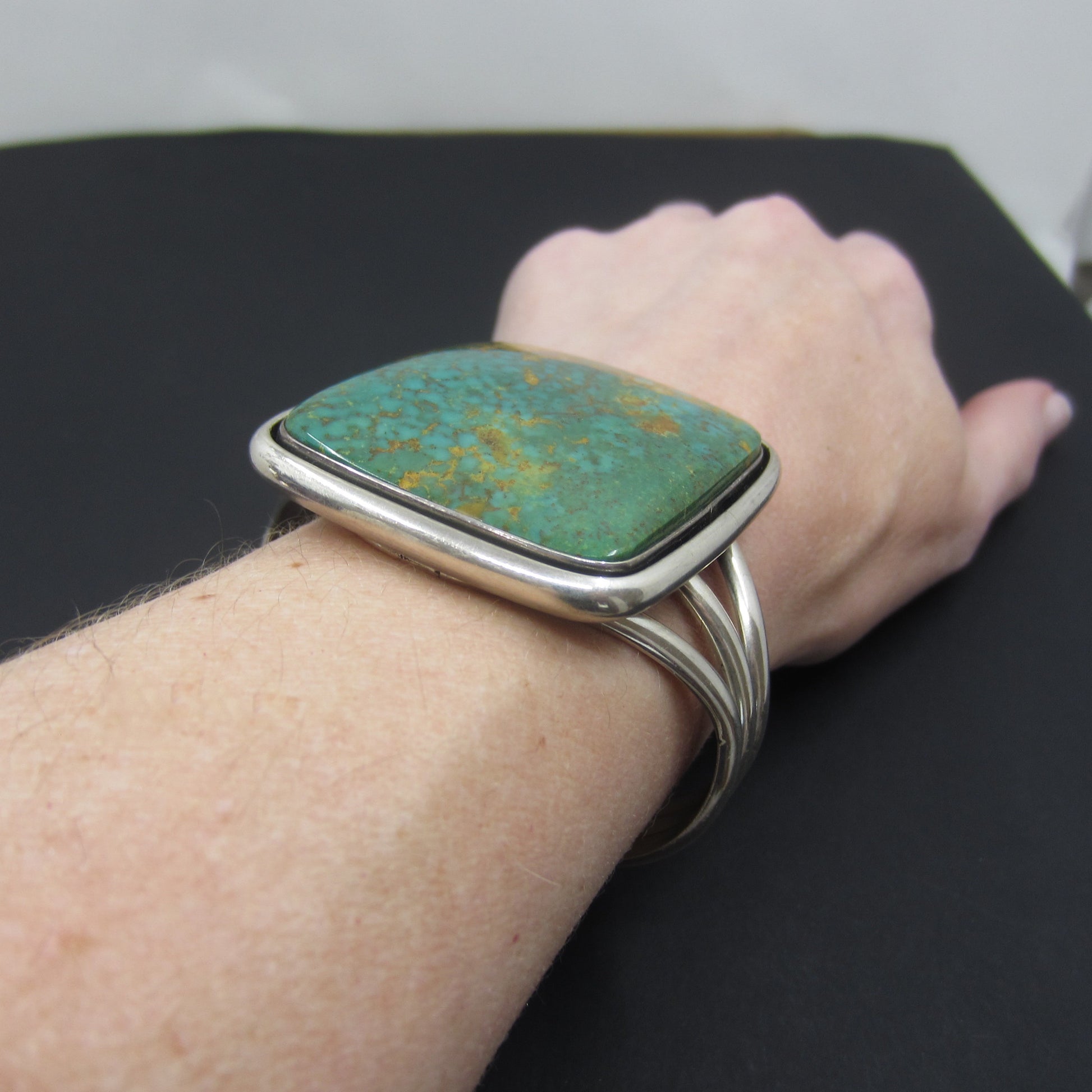 SOLD-Vintage Big Navajo Turquoise Cuff Sterling c. 1970