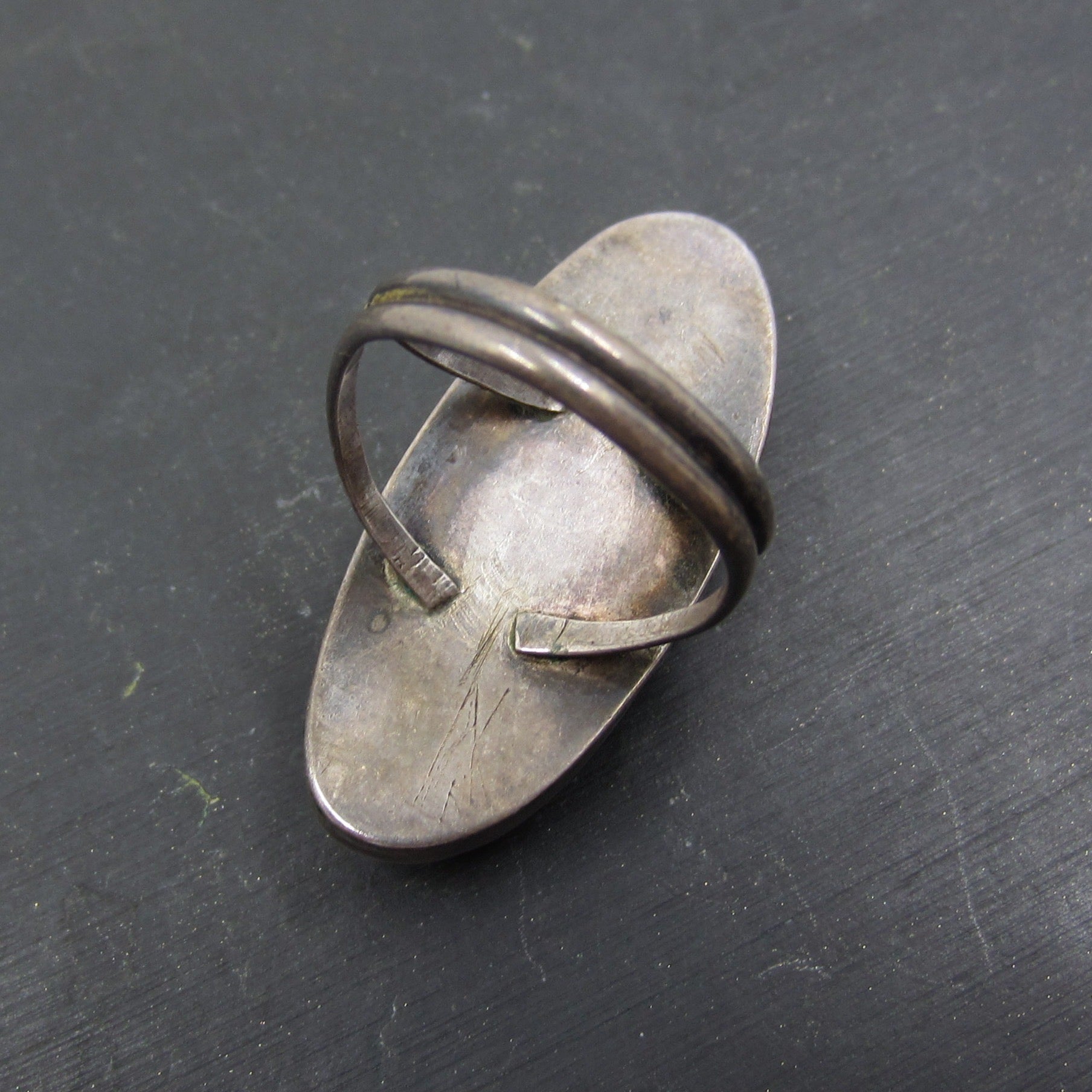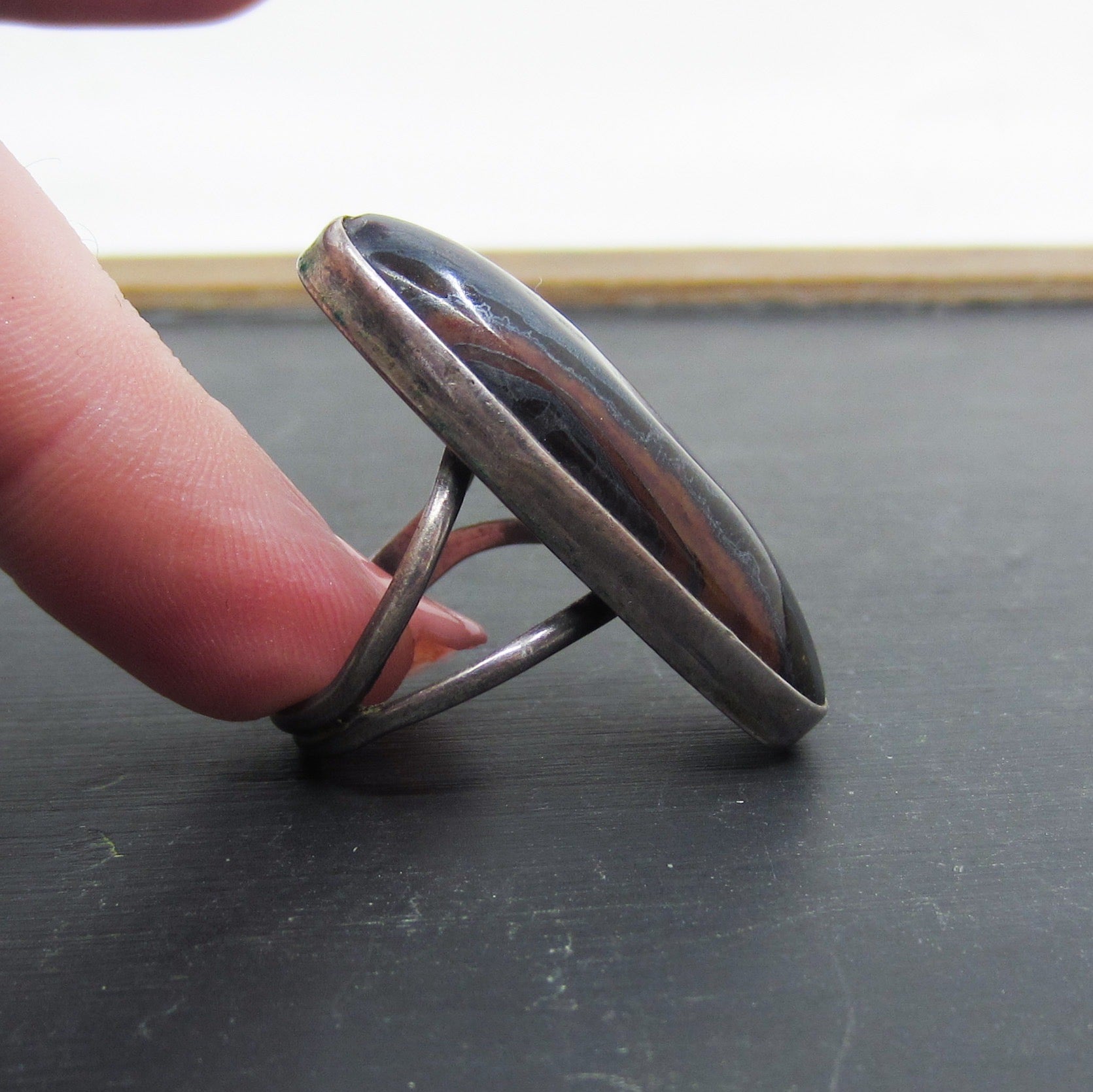 Vintage Big Tiger’s Eye Navette Ring Sterling c. 1960