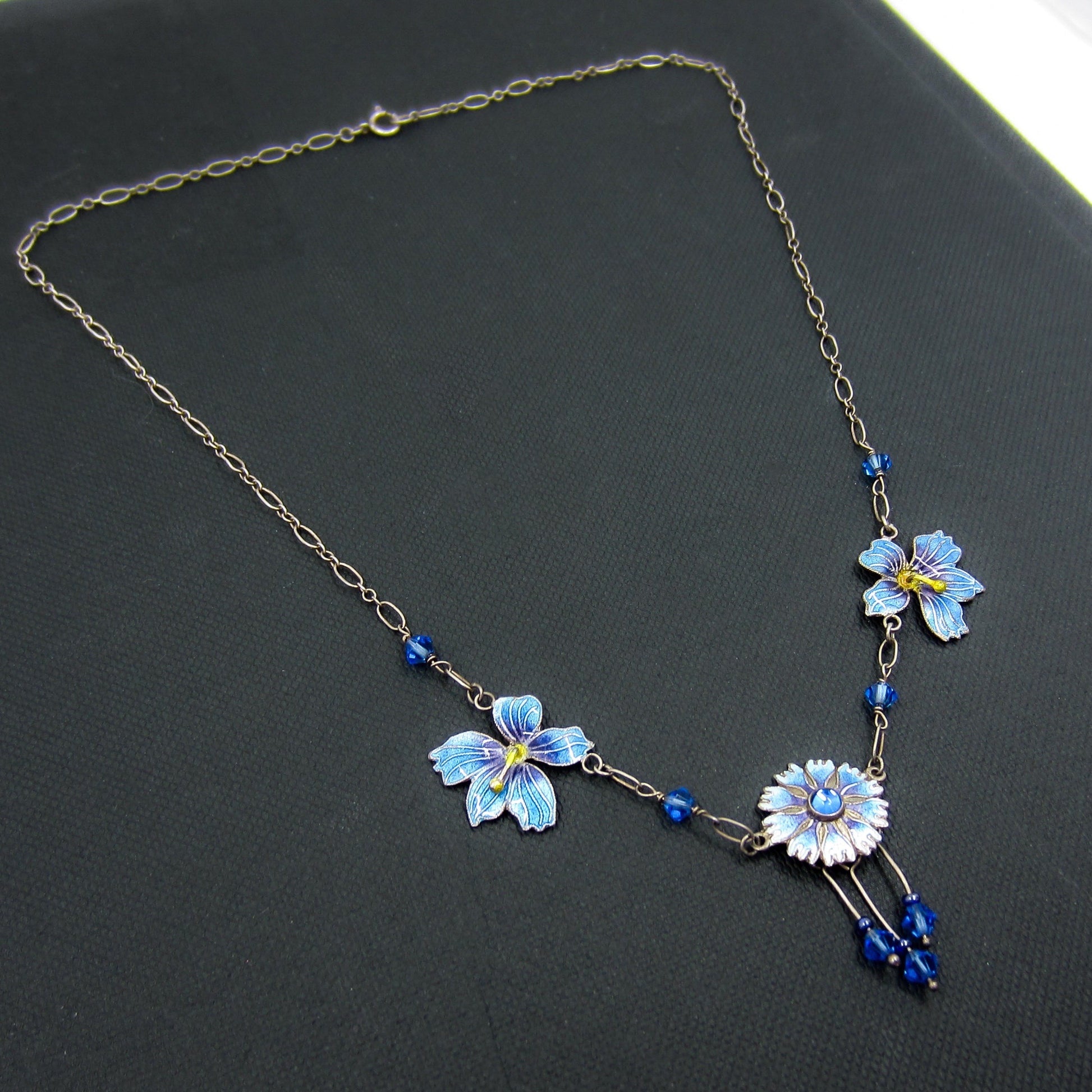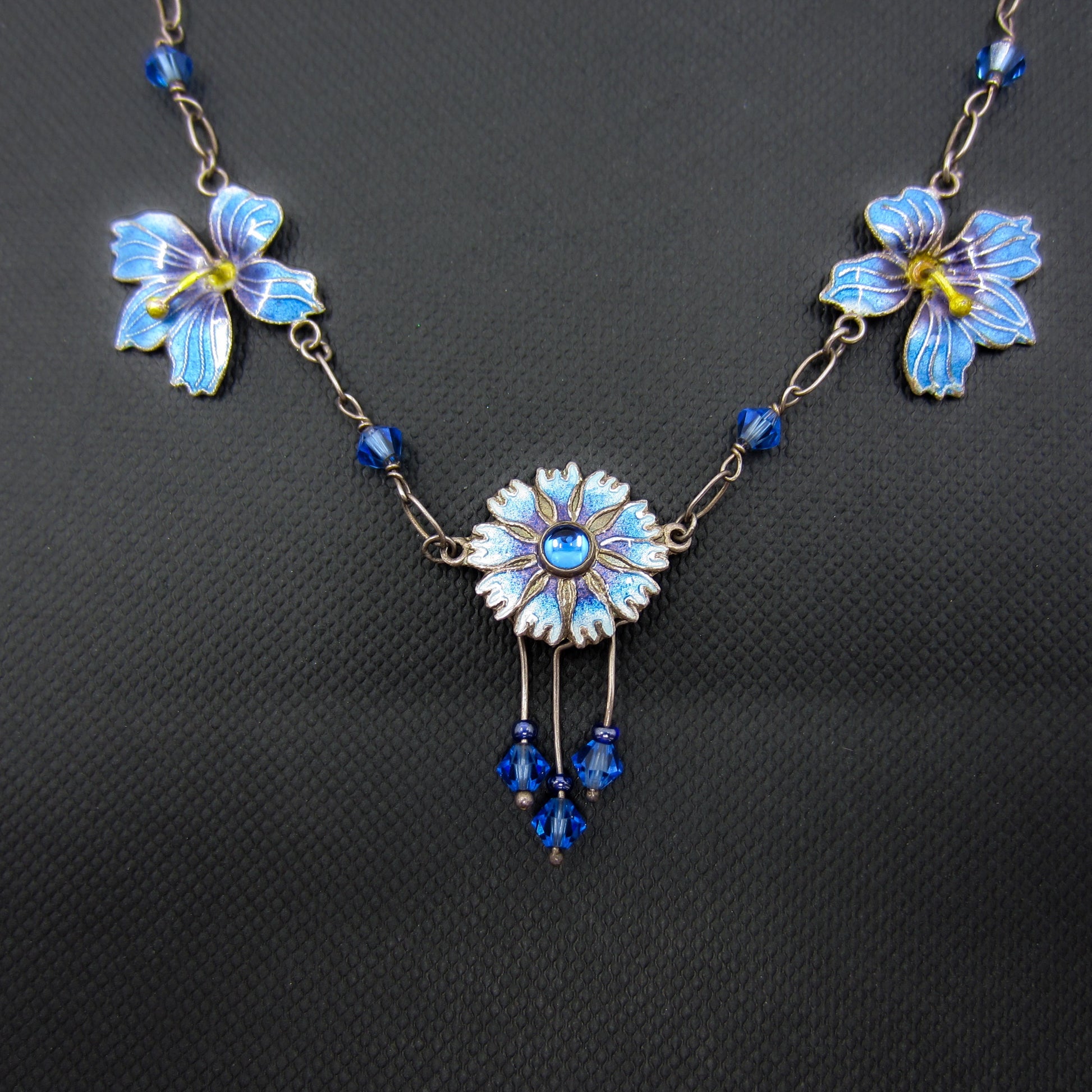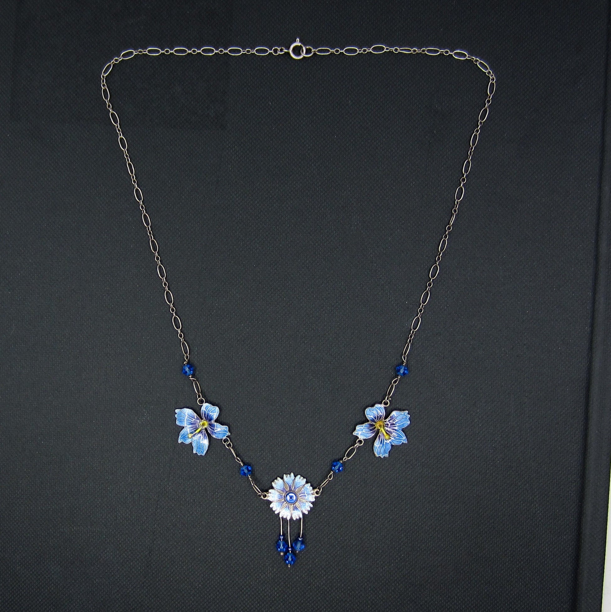 SOLD--Vintage Blue Enamel Flower Necklace Sterling, Scandinavian c. 1970