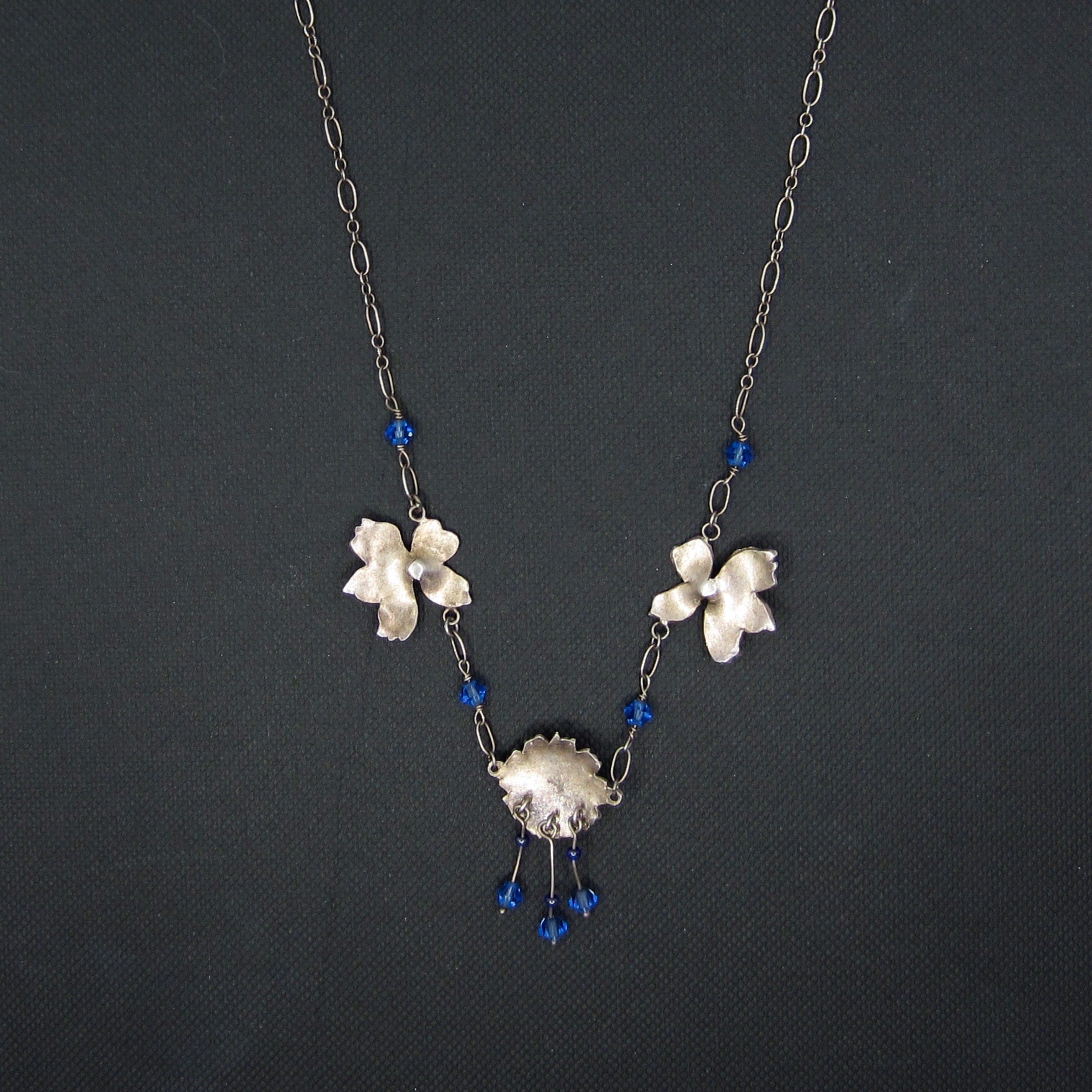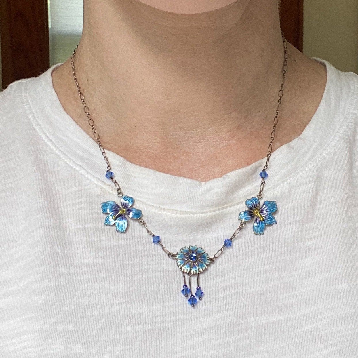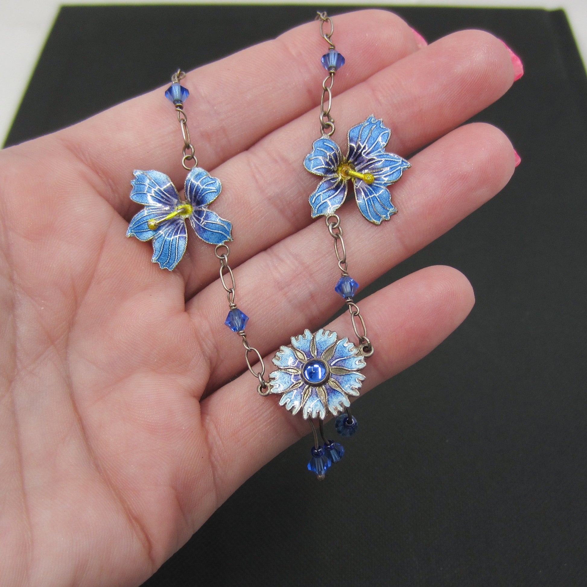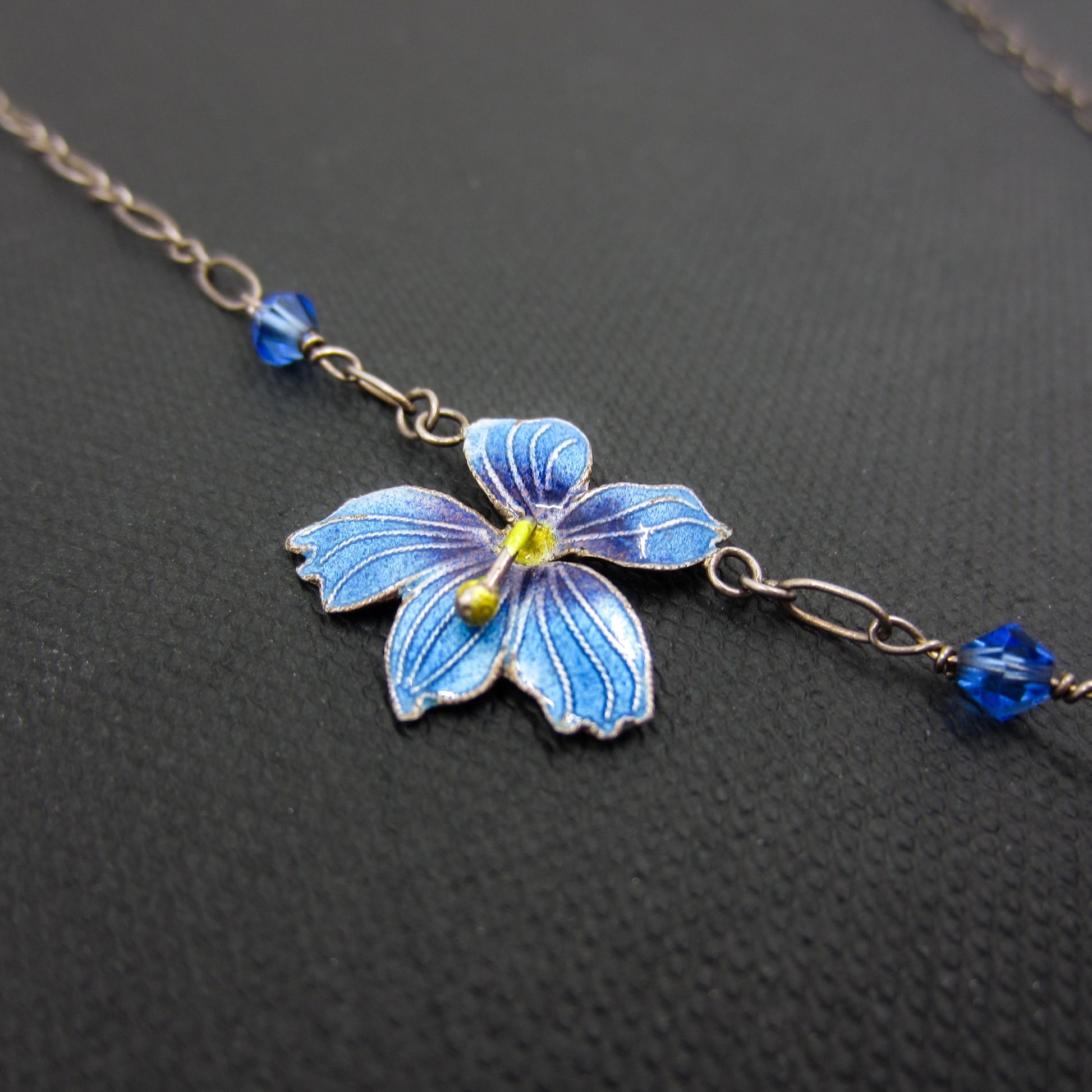 SOLD--Vintage Blue Enamel Flower Necklace Sterling, Scandinavian c. 1970
