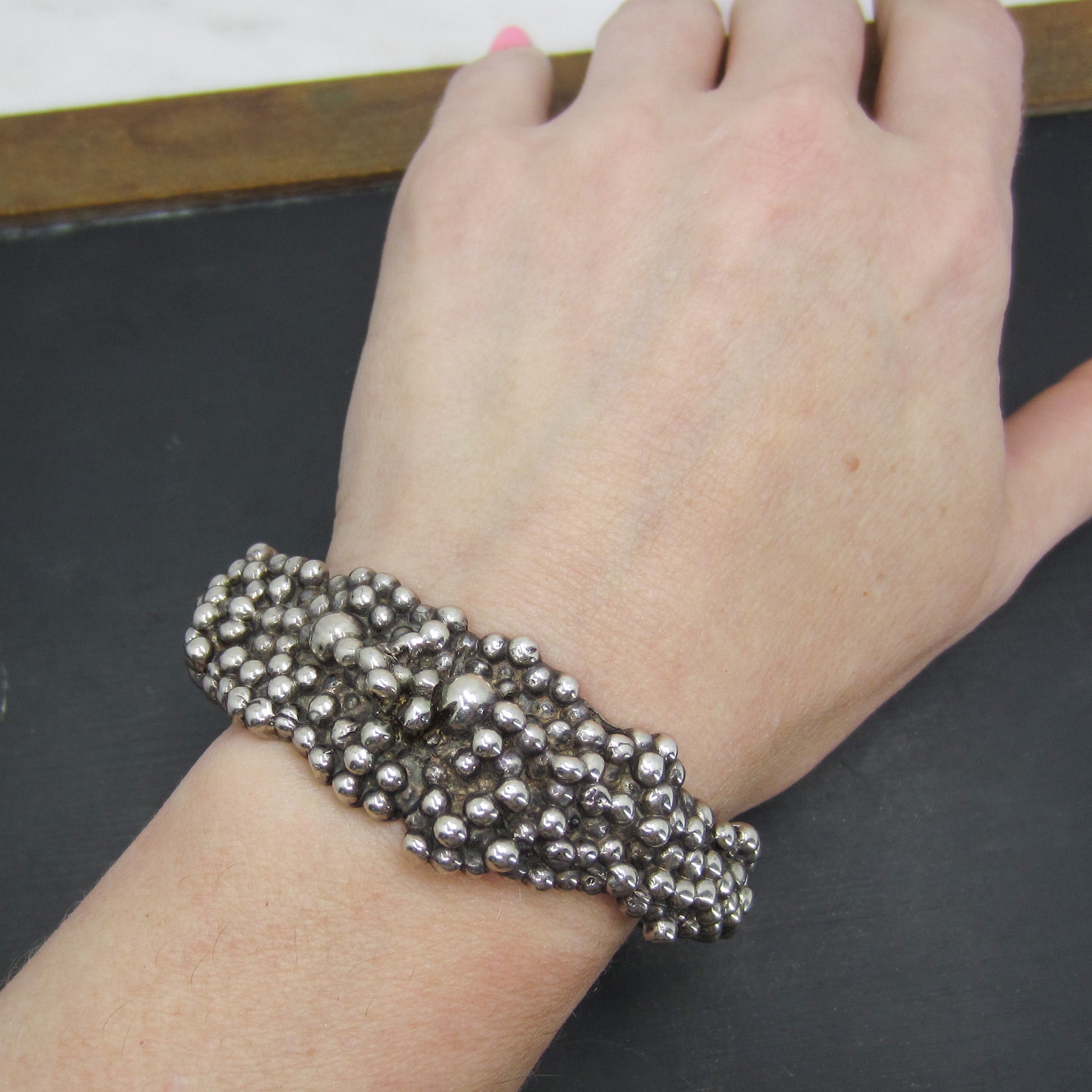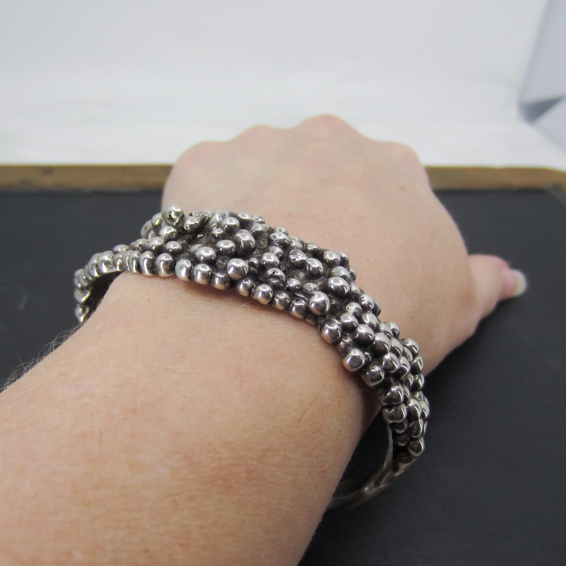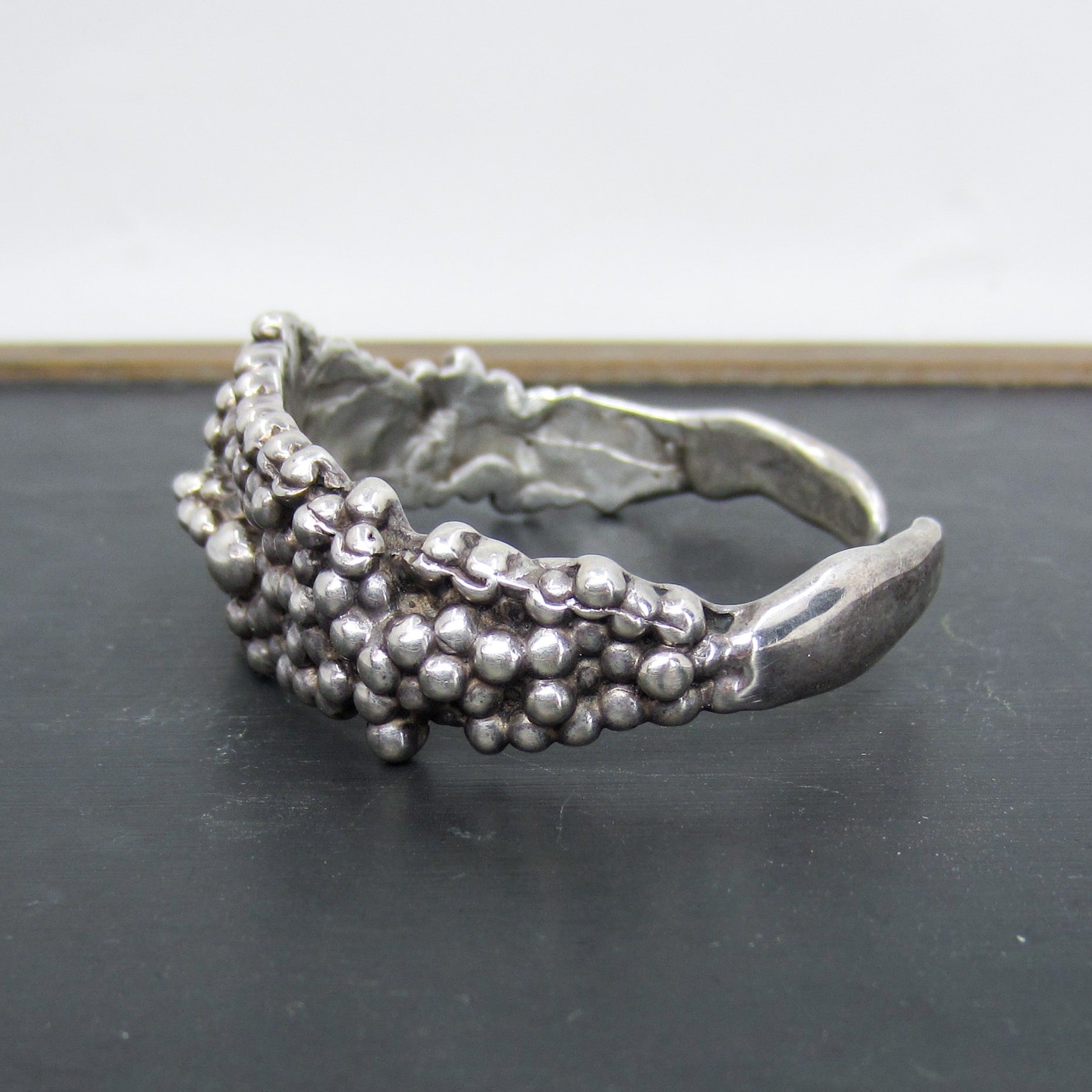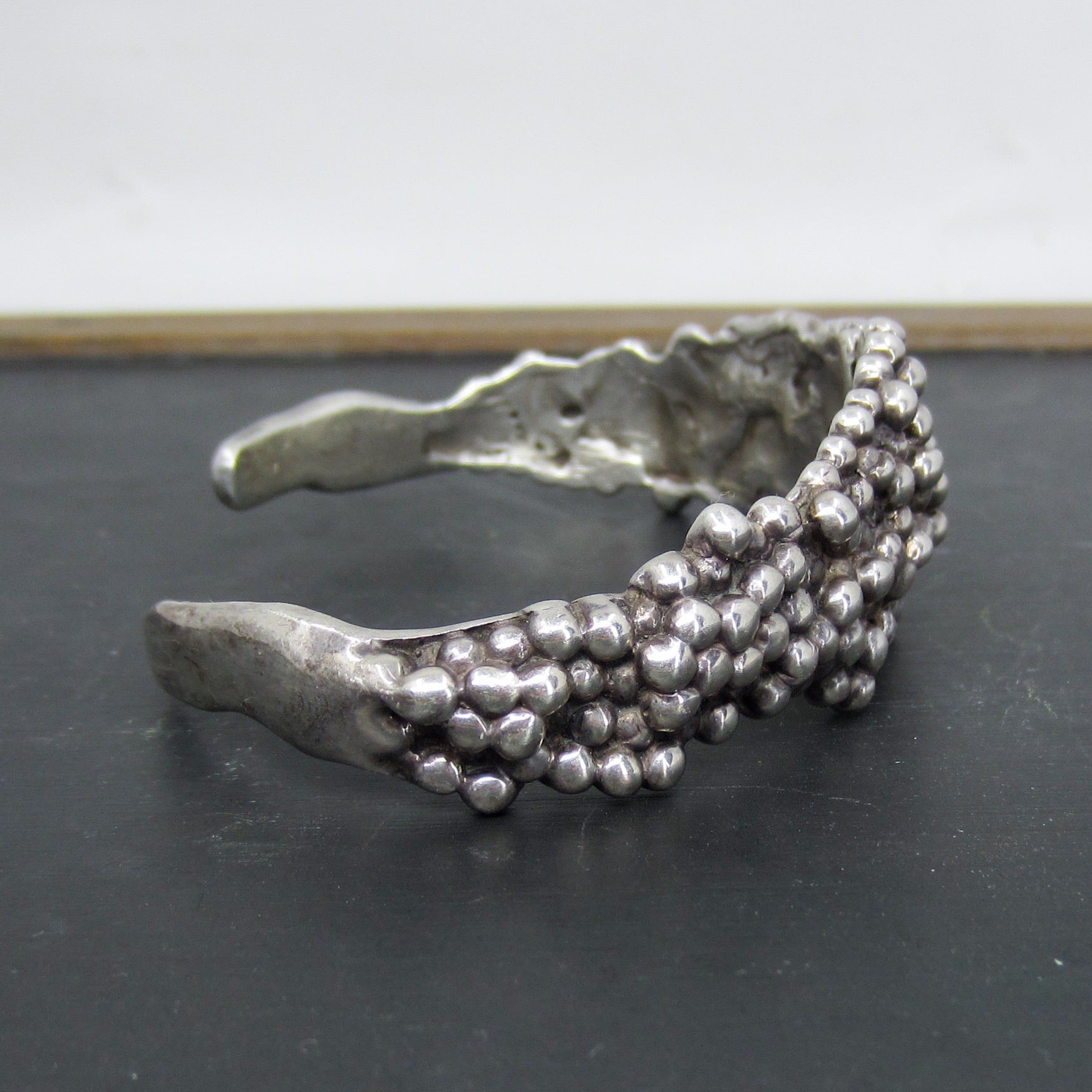 Vintage Heavy Brutalist Granulated Cuff Sterling c. 1970