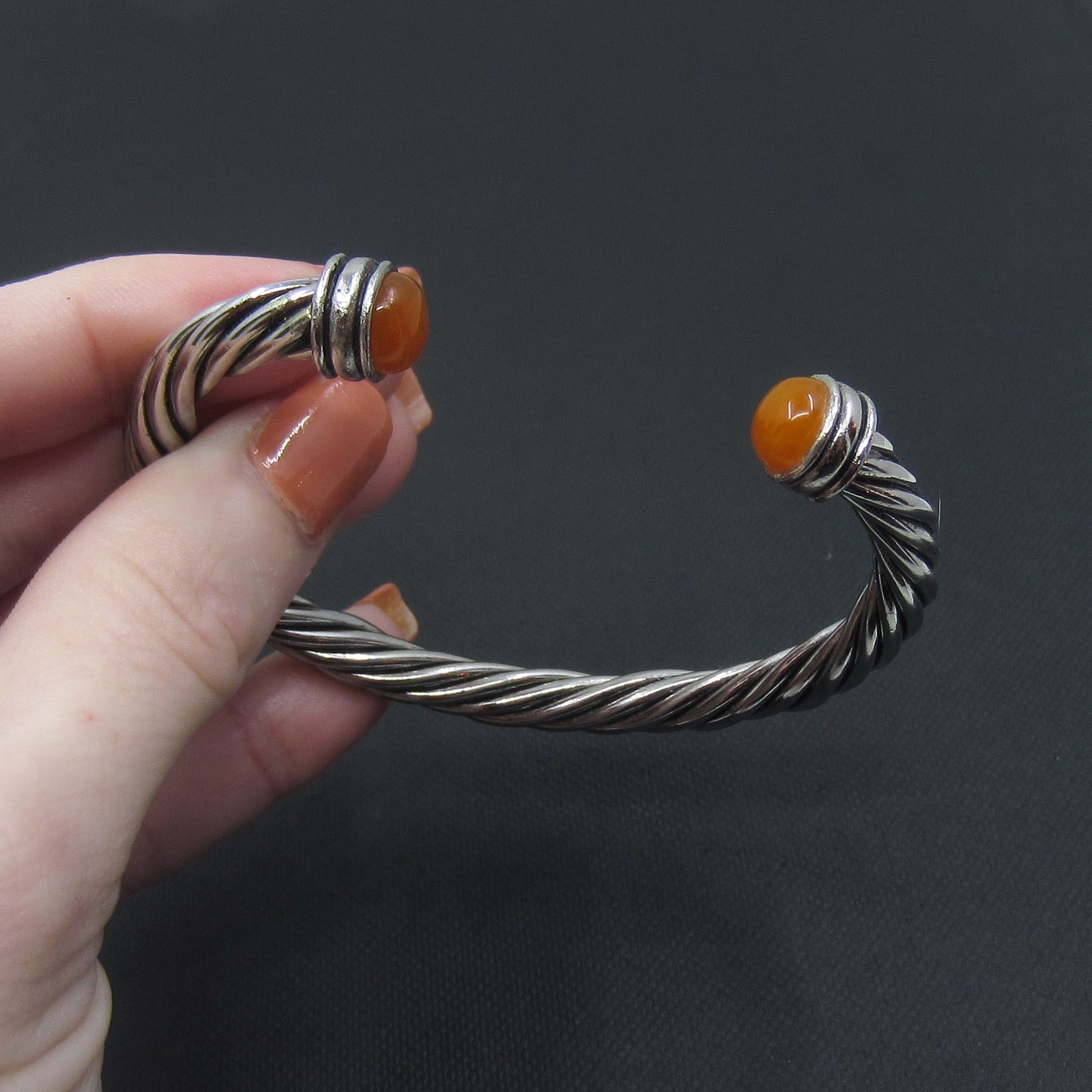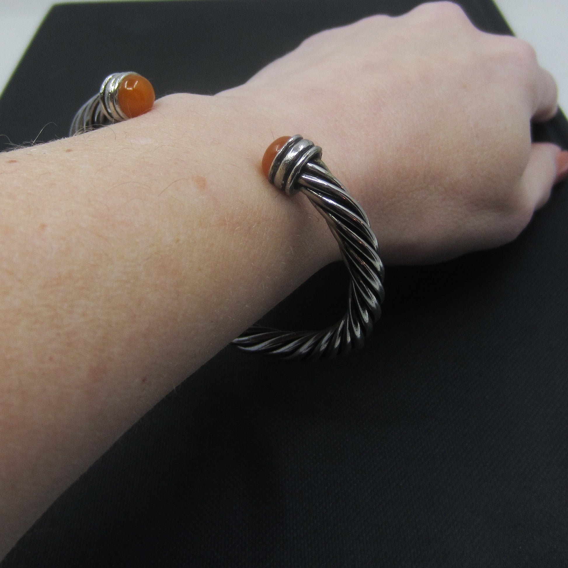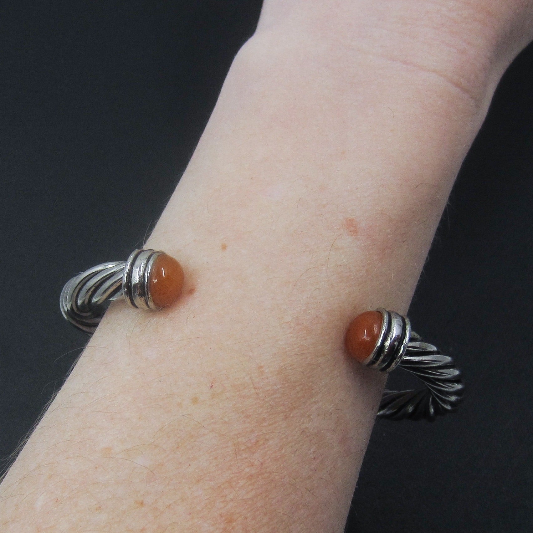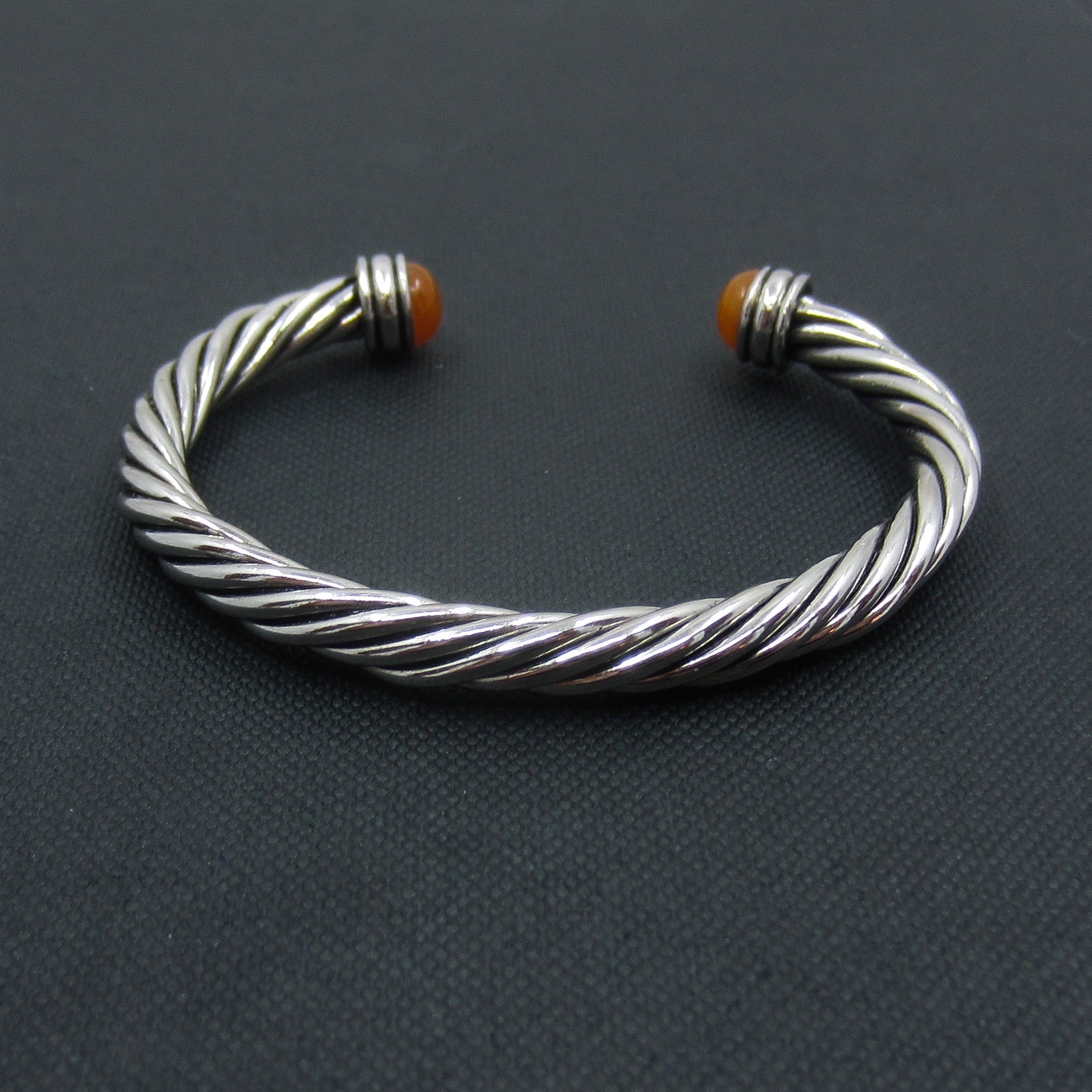 Vintage Carnelian Terminal Twist Cuff Sterling c. 1990