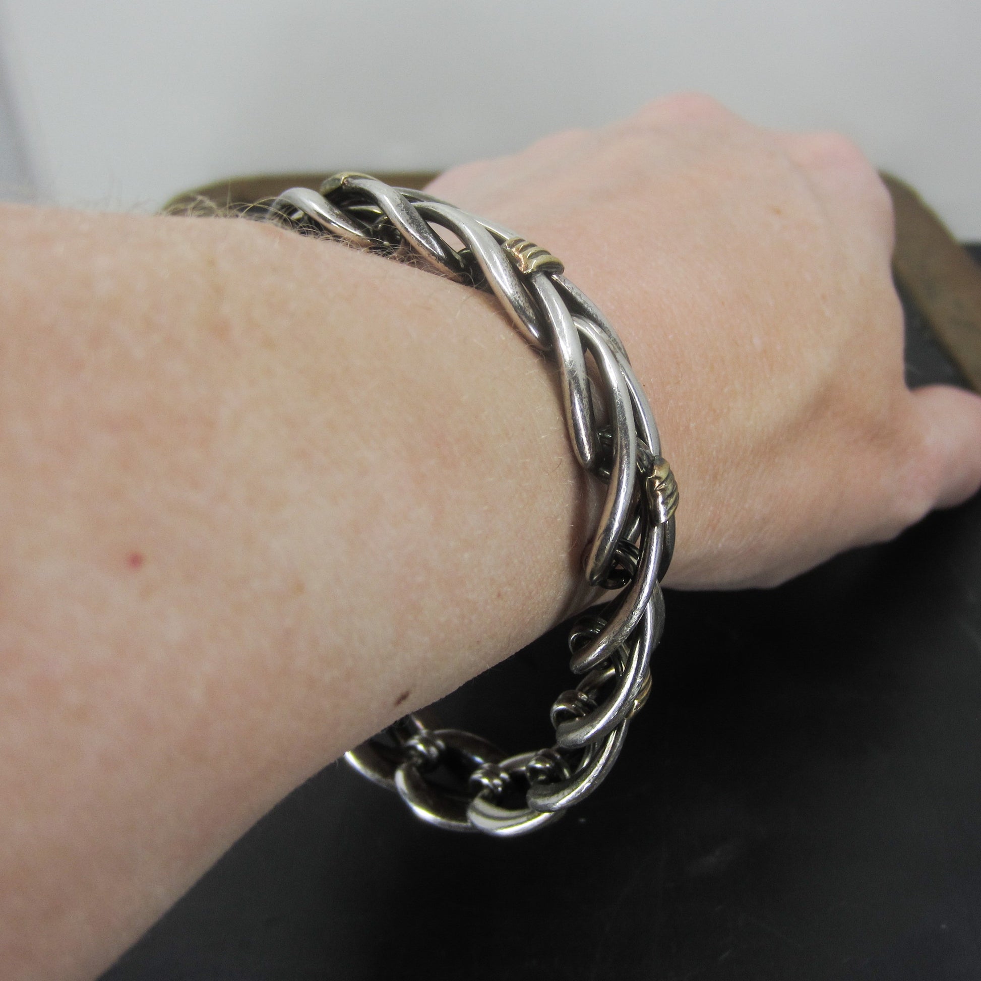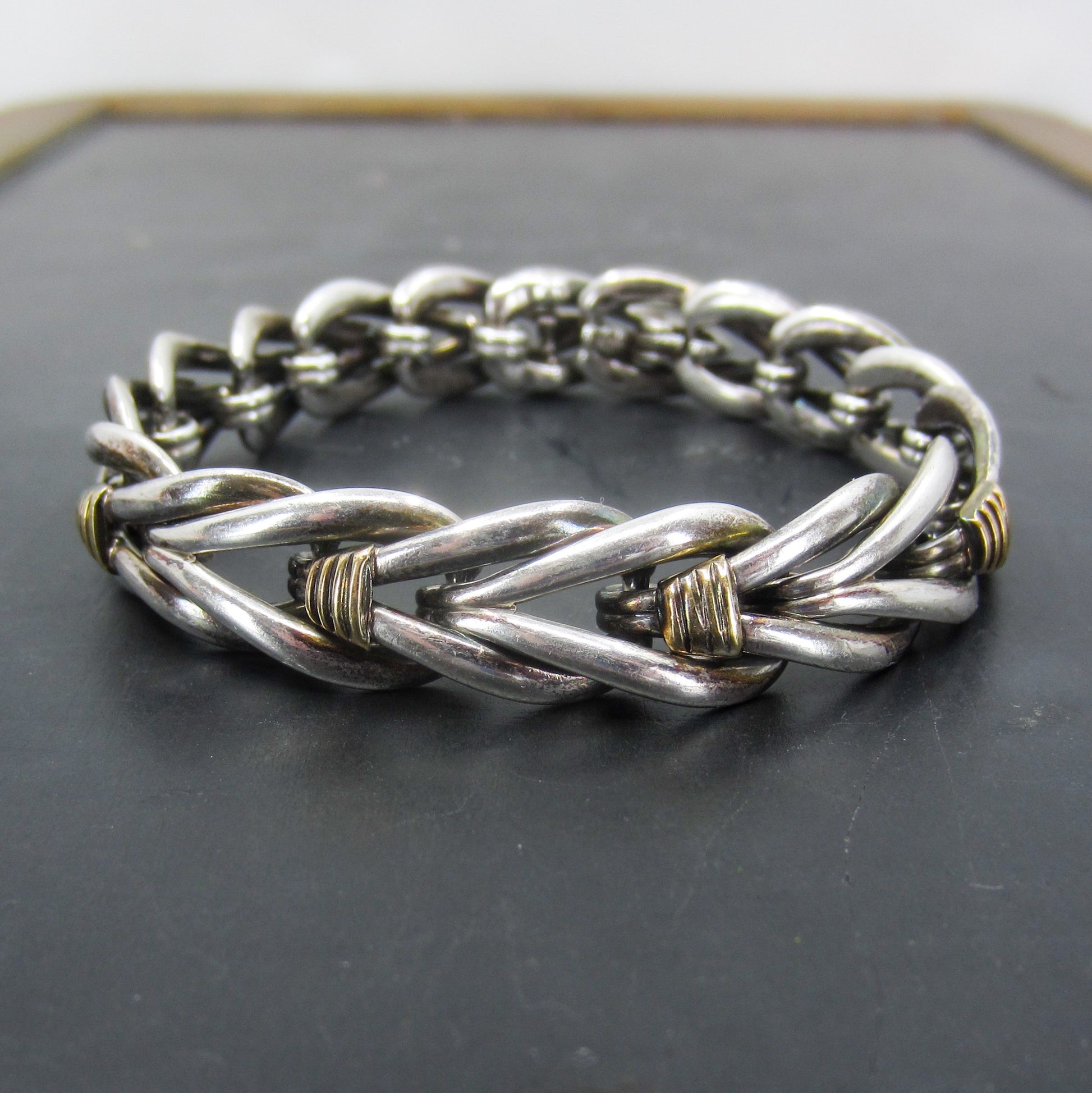SOLD--Vintage Chevron Link Bracelet Sterling/18k, French, Christofle c. 1970