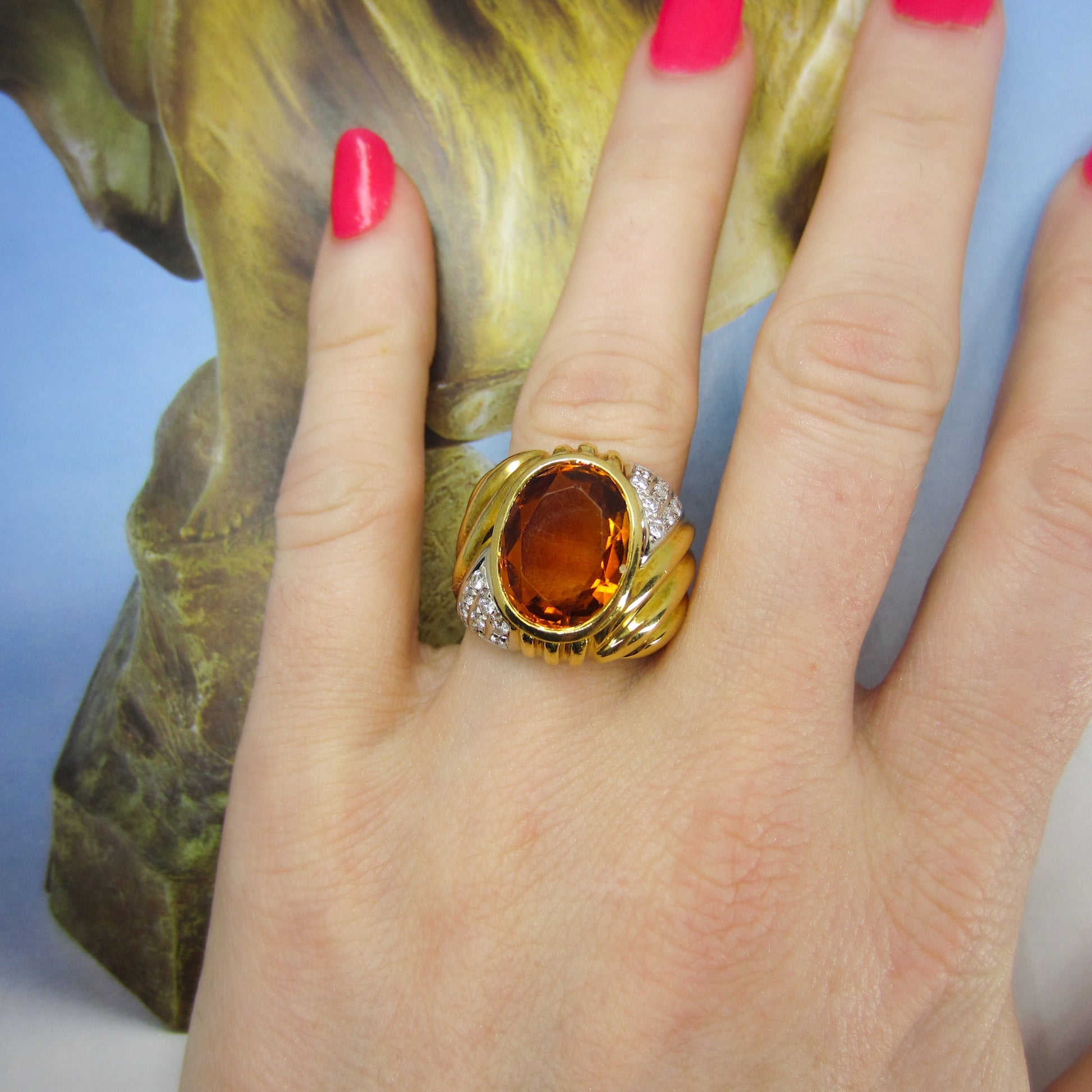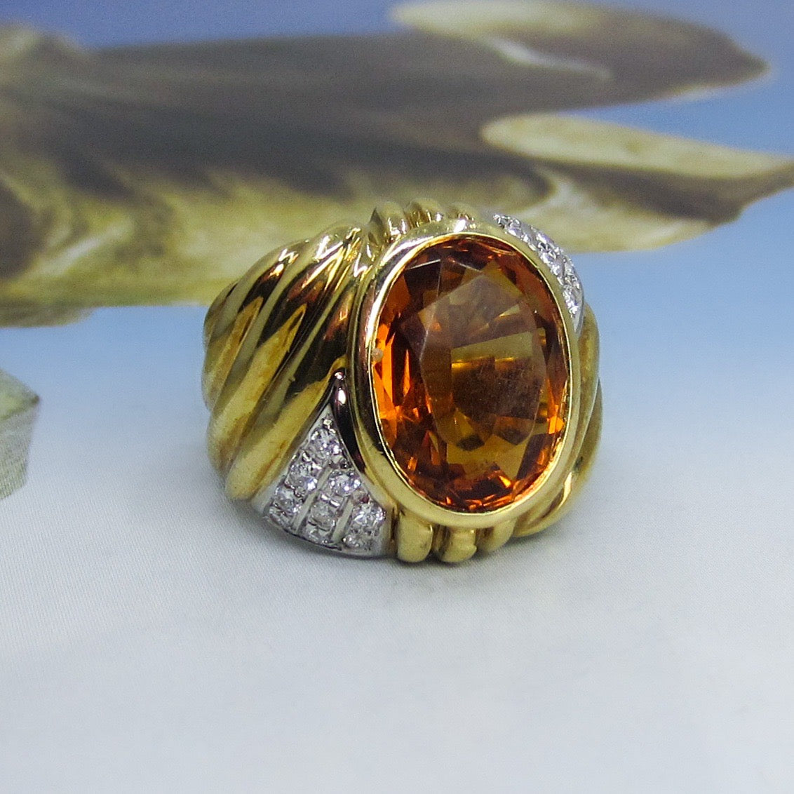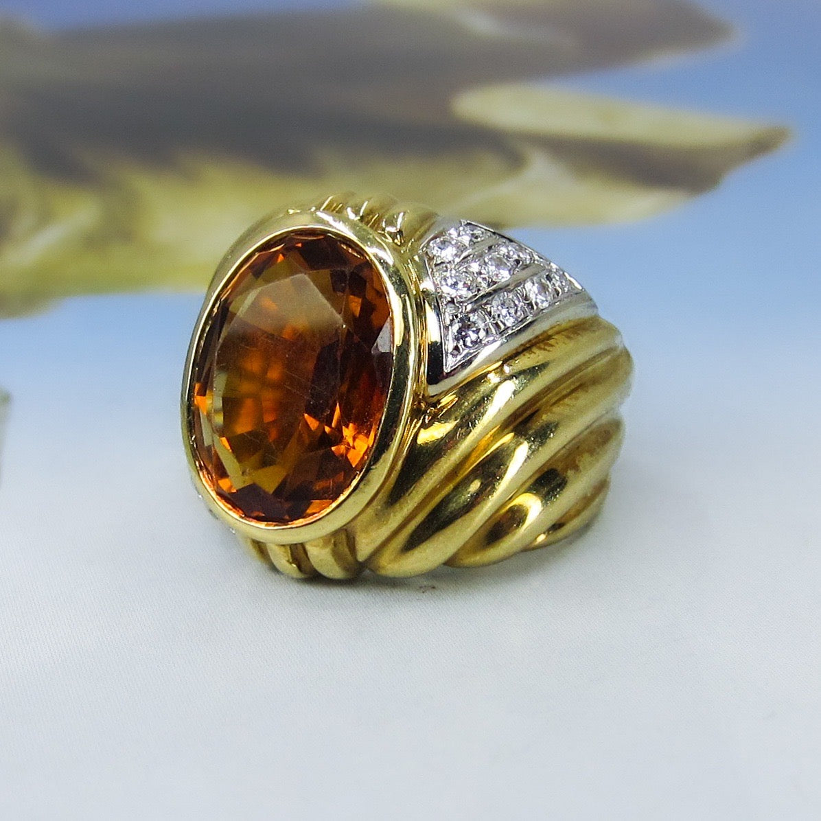 SOLD-Vintage Citrine and Diamond Ring 18k c. 1990