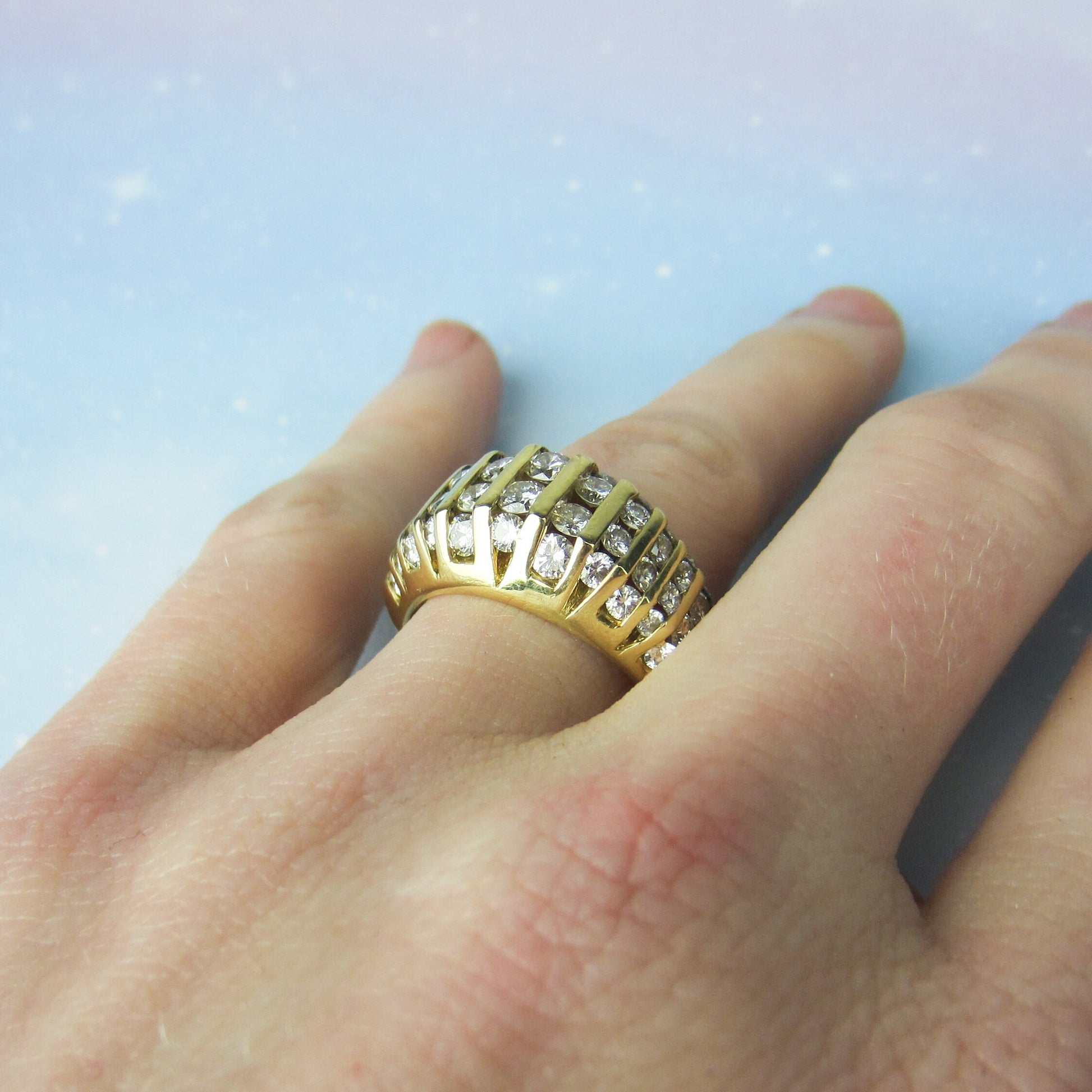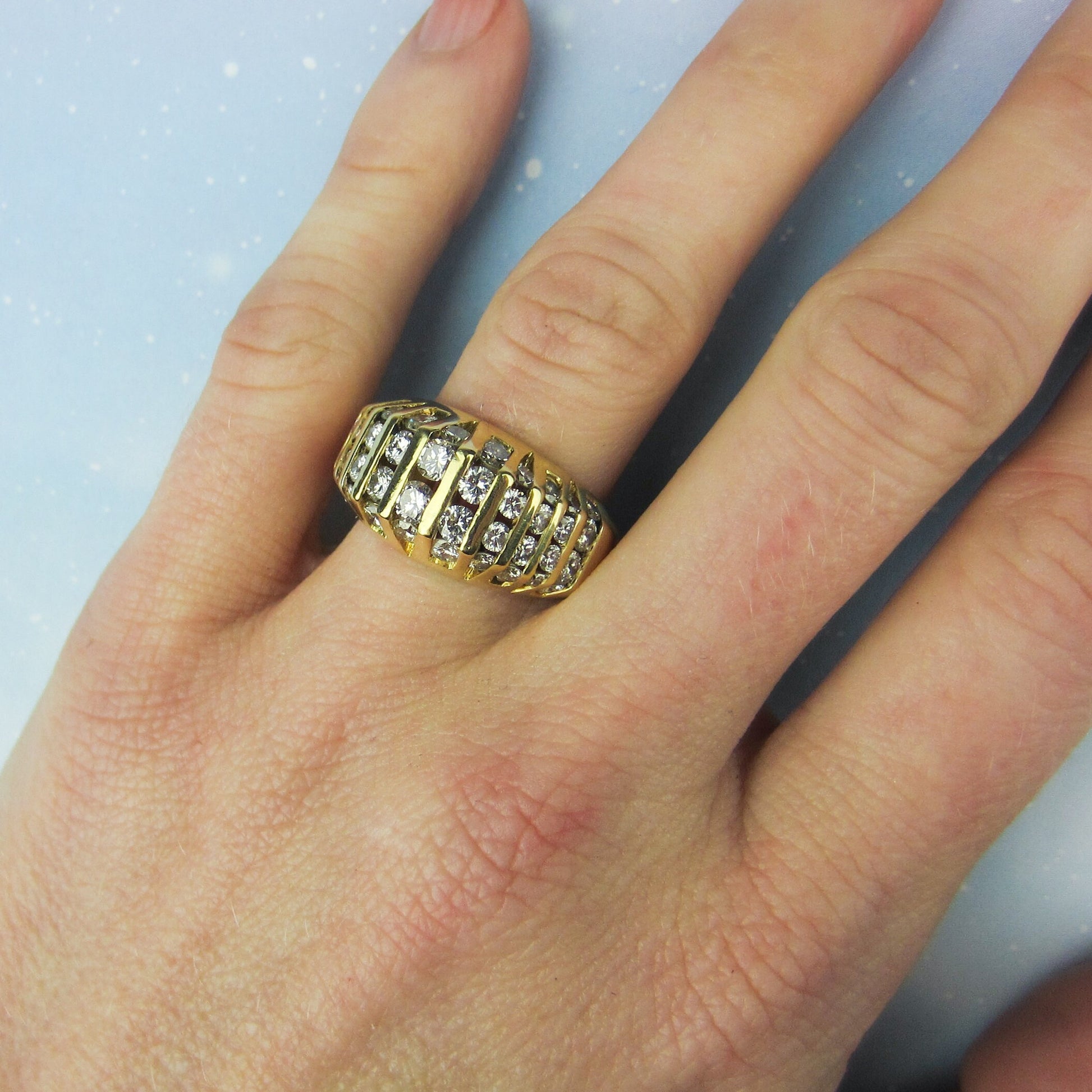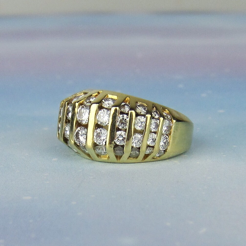 SOLD--Vintage Chunky Channel Set Diamond Ring 18k c. 1990