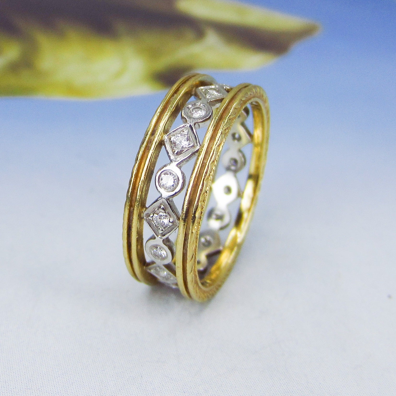 SOLD--Vintage Diamond Two Tone Wide Eternity Band 18k/Platinum, size 6.25 c. 1990