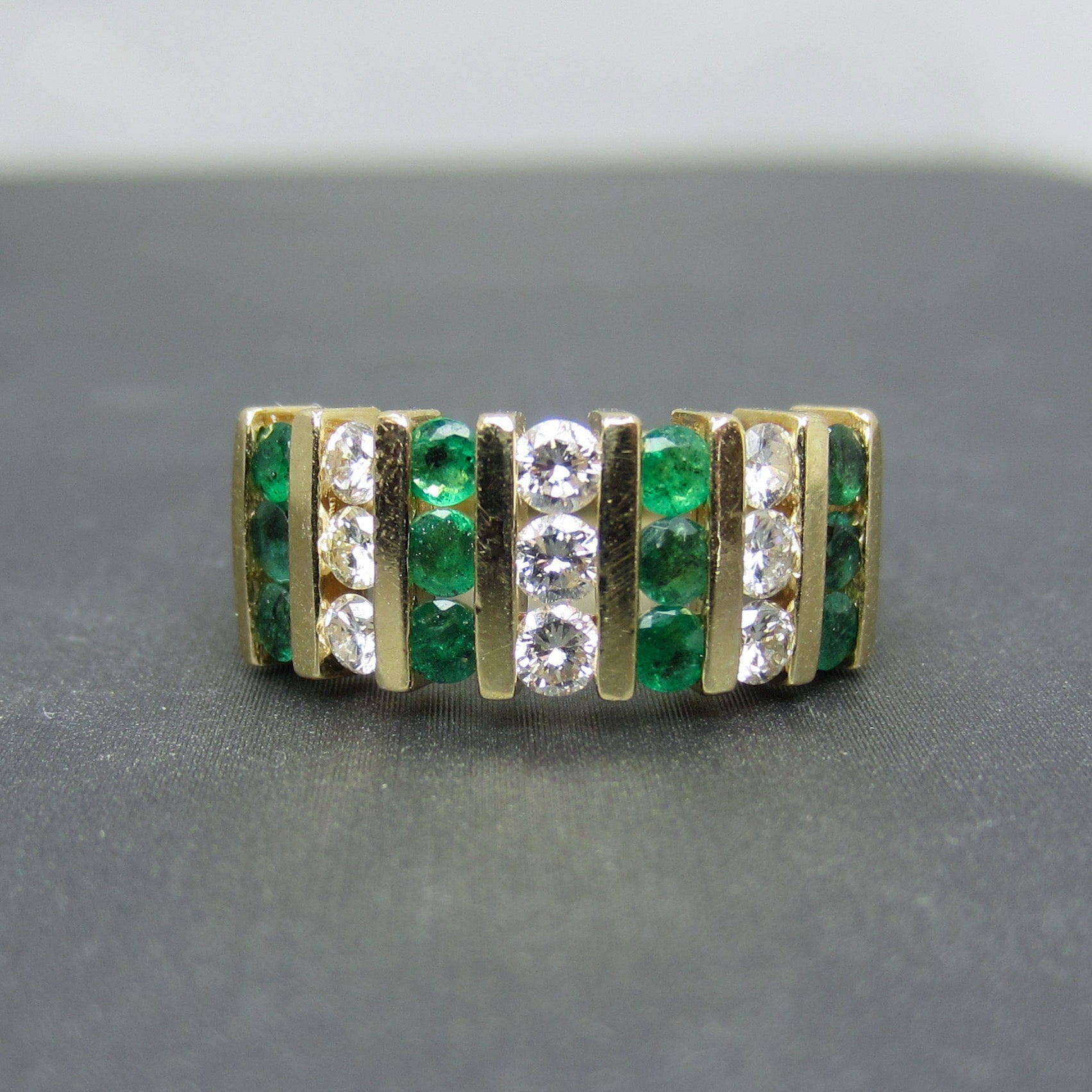 Vintage Emerald and Diamond Wide Band 14k c. 1990