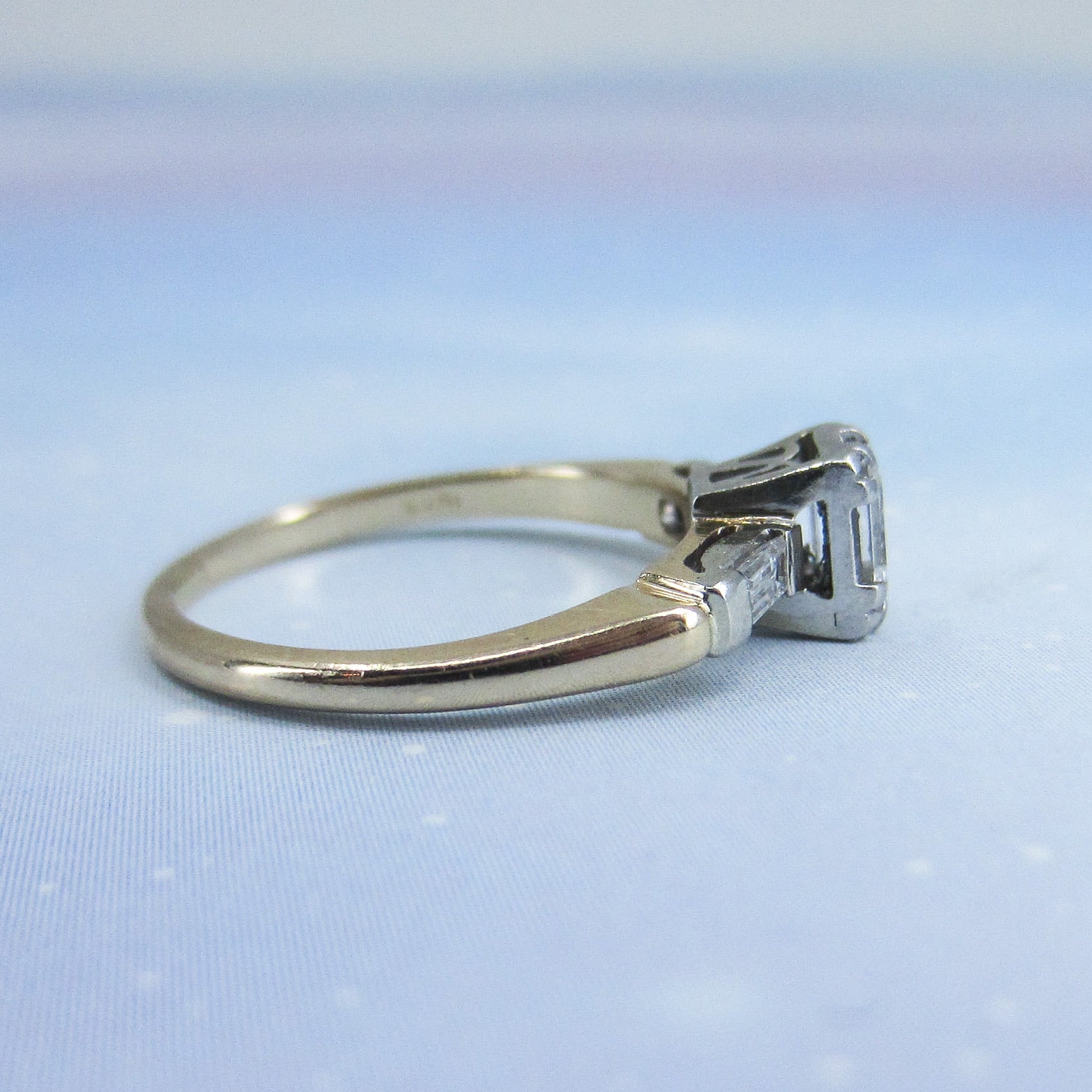 SOLD--Vintage Emerald Cut Diamond Engagement Ring Plat/14k c. 1940