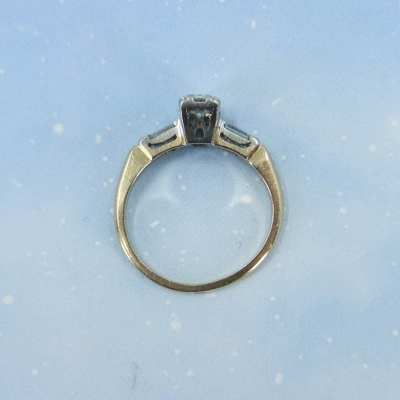 Condition is very good, stones are tight in their settings and ring is solid and suitable for everyday wear. Shank is slightly off-round, which will be fixed when it is resized.