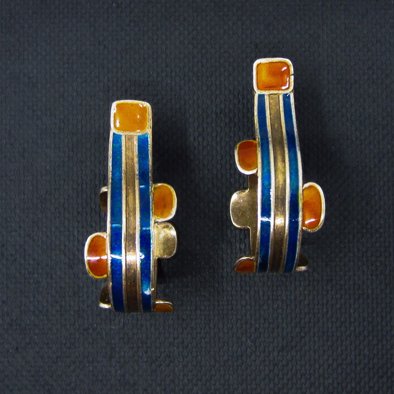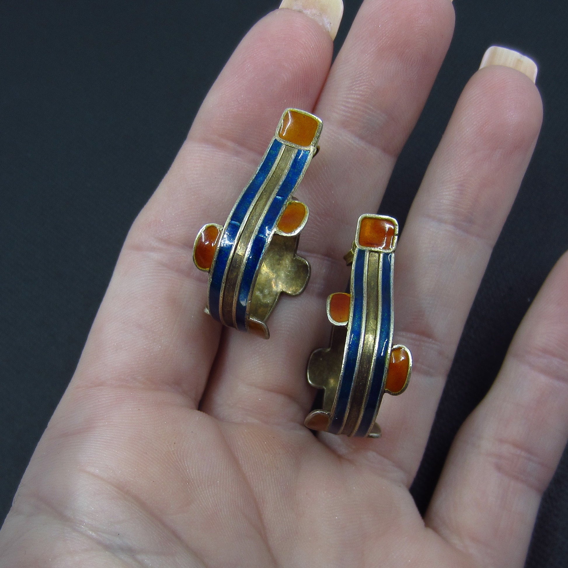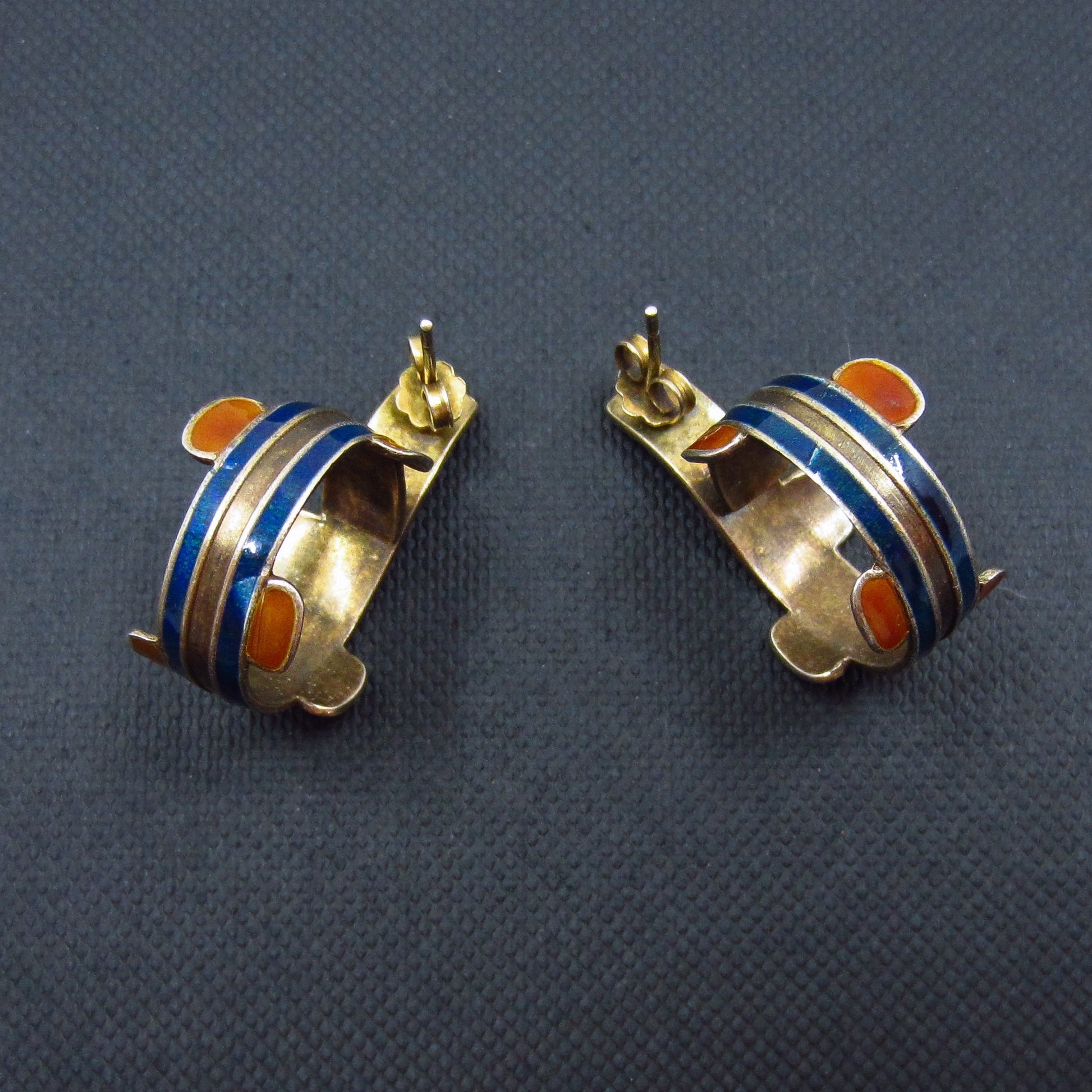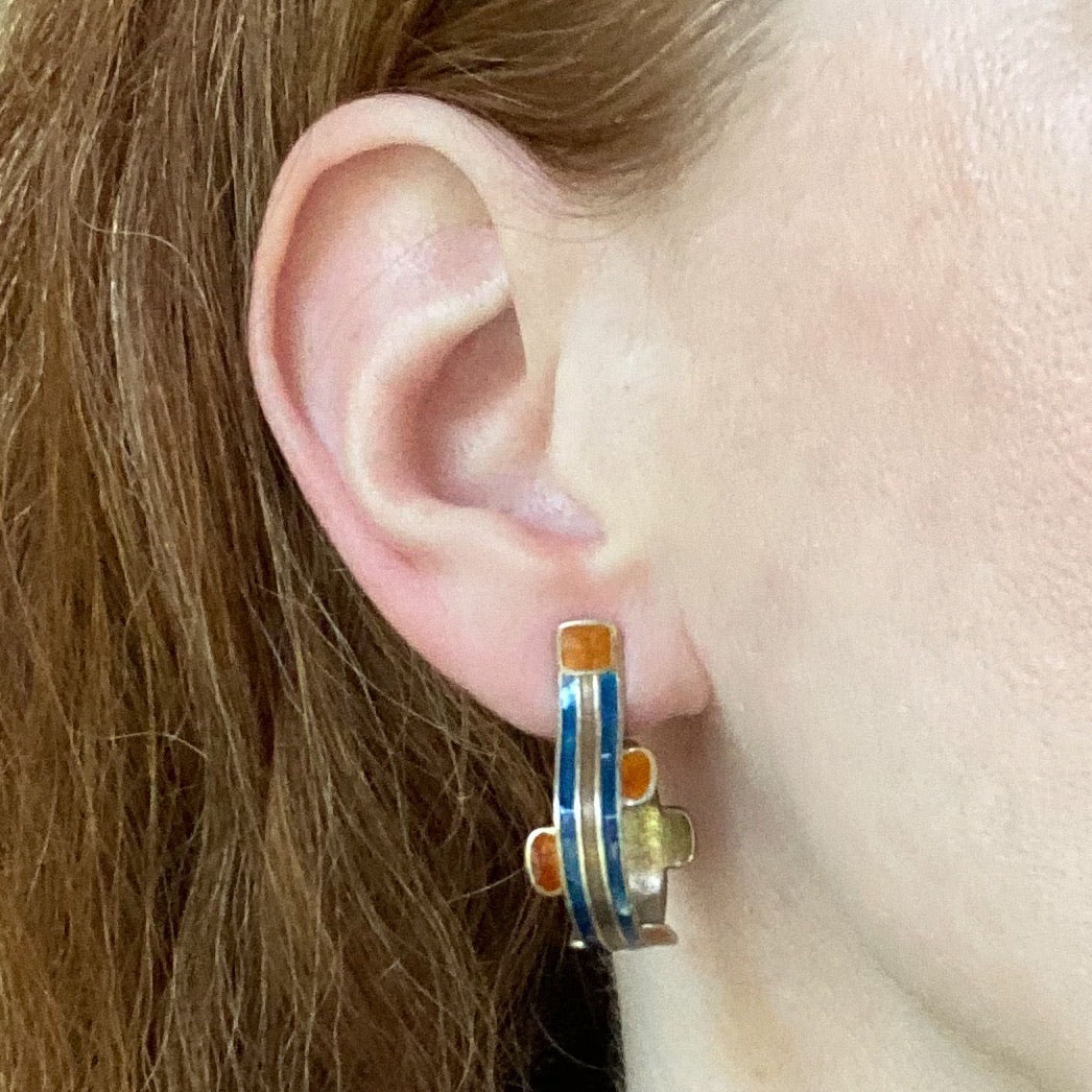 SOLD Enamel Hoop Earrings Git Sterling c. 1970