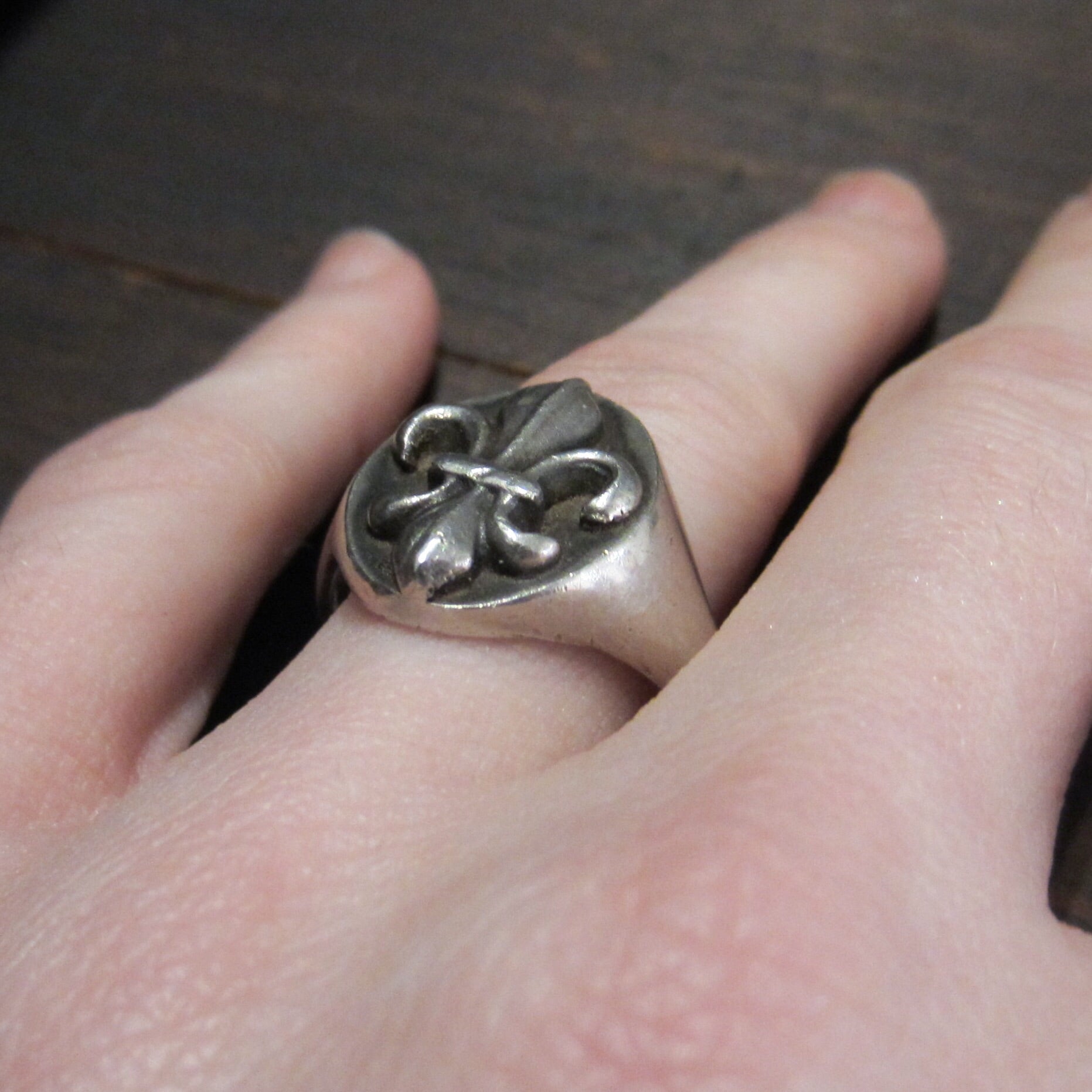 SOLD--Vintage Fleur de Lis Signet Ring Sterling, French Hallmarks
