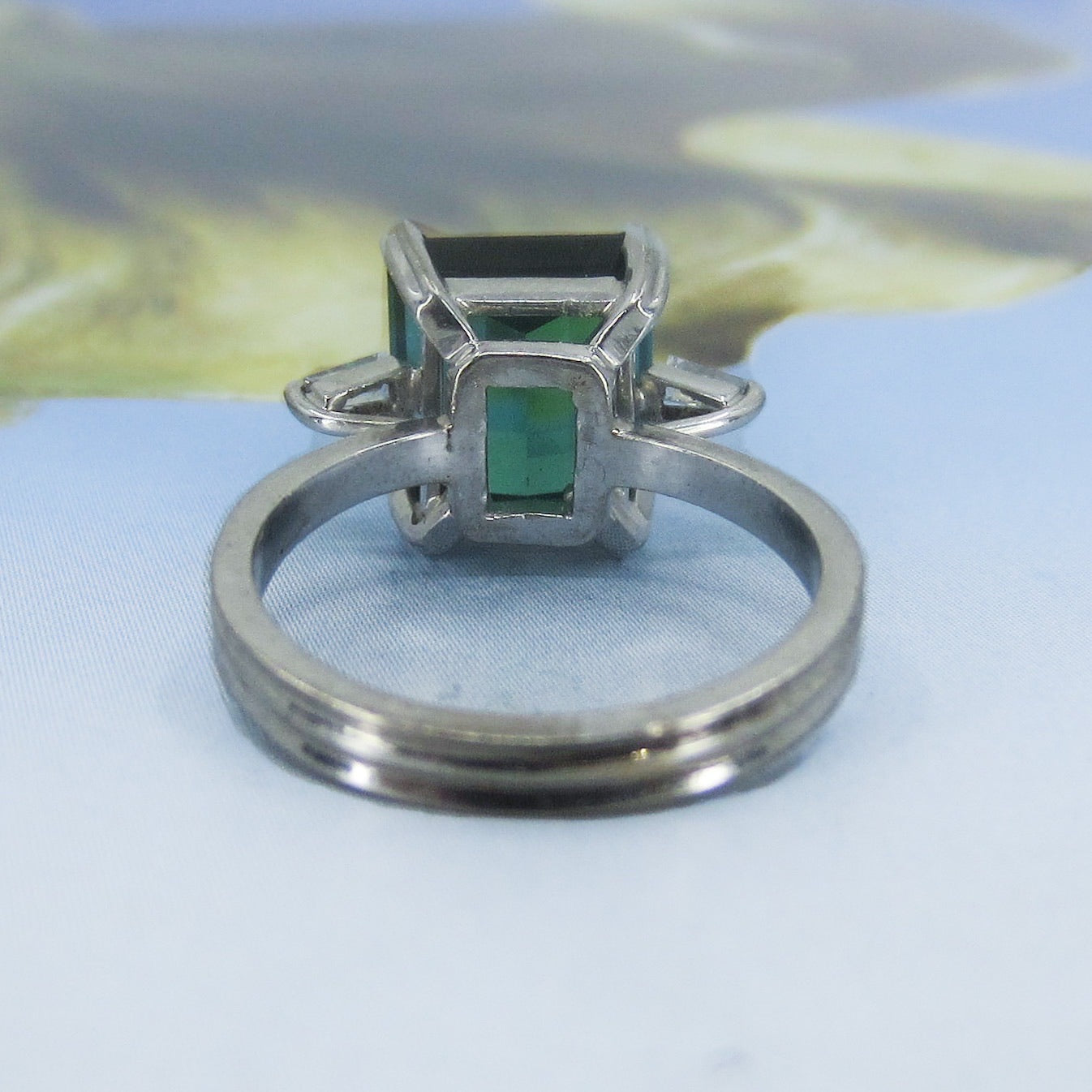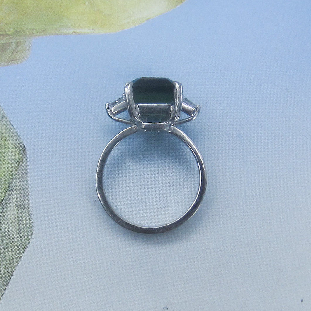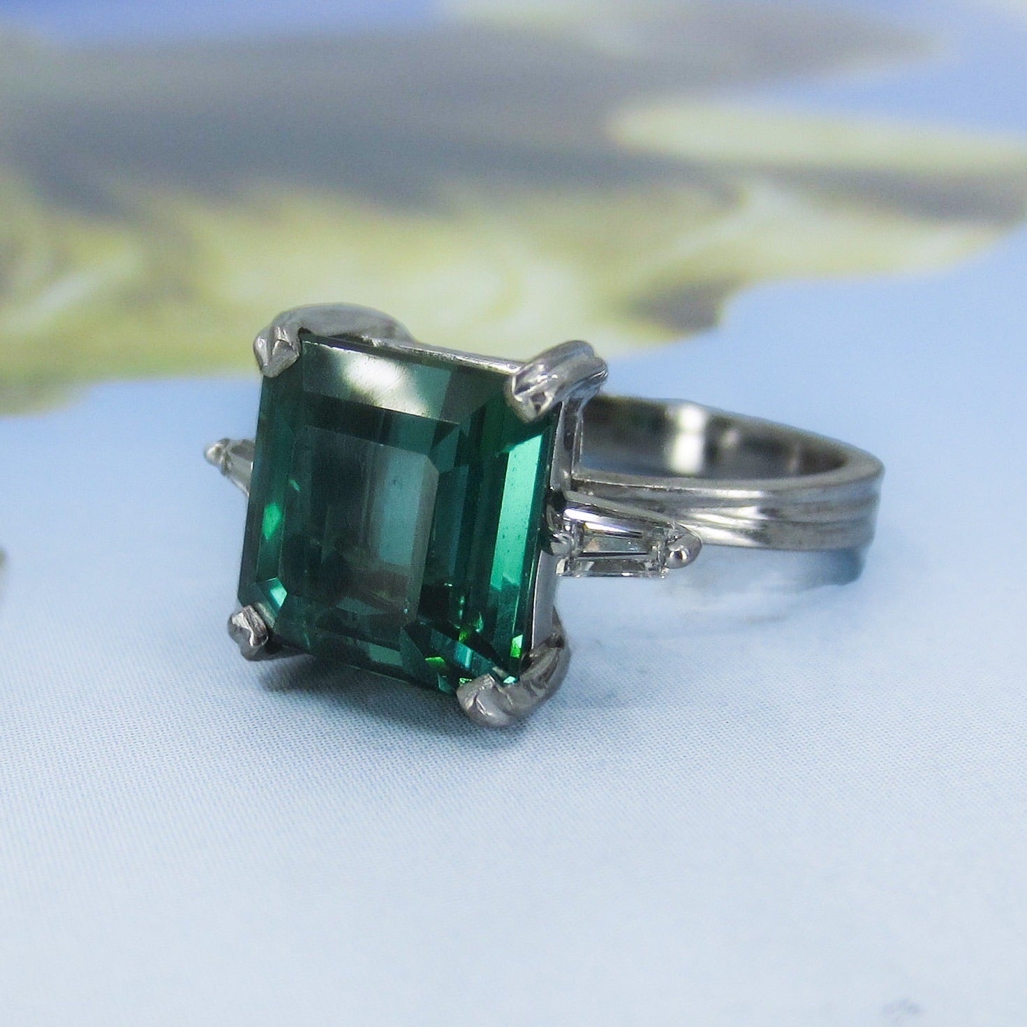 This absolutely exquisite ring was made by famed Brazilian jeweler H. Stern and contains one knockout step cut green tourmaline flanked by two tapered baguette diamonds in 18k white gold. What a stone! H. Stern is known for it's colored stones, particularly tourmalines, which are sourced in Brazil in all the colors of the rainbow. If you're not familiar with tourmalines I recommend reading up! They're one of my favorite gemstones and they never disappoint!