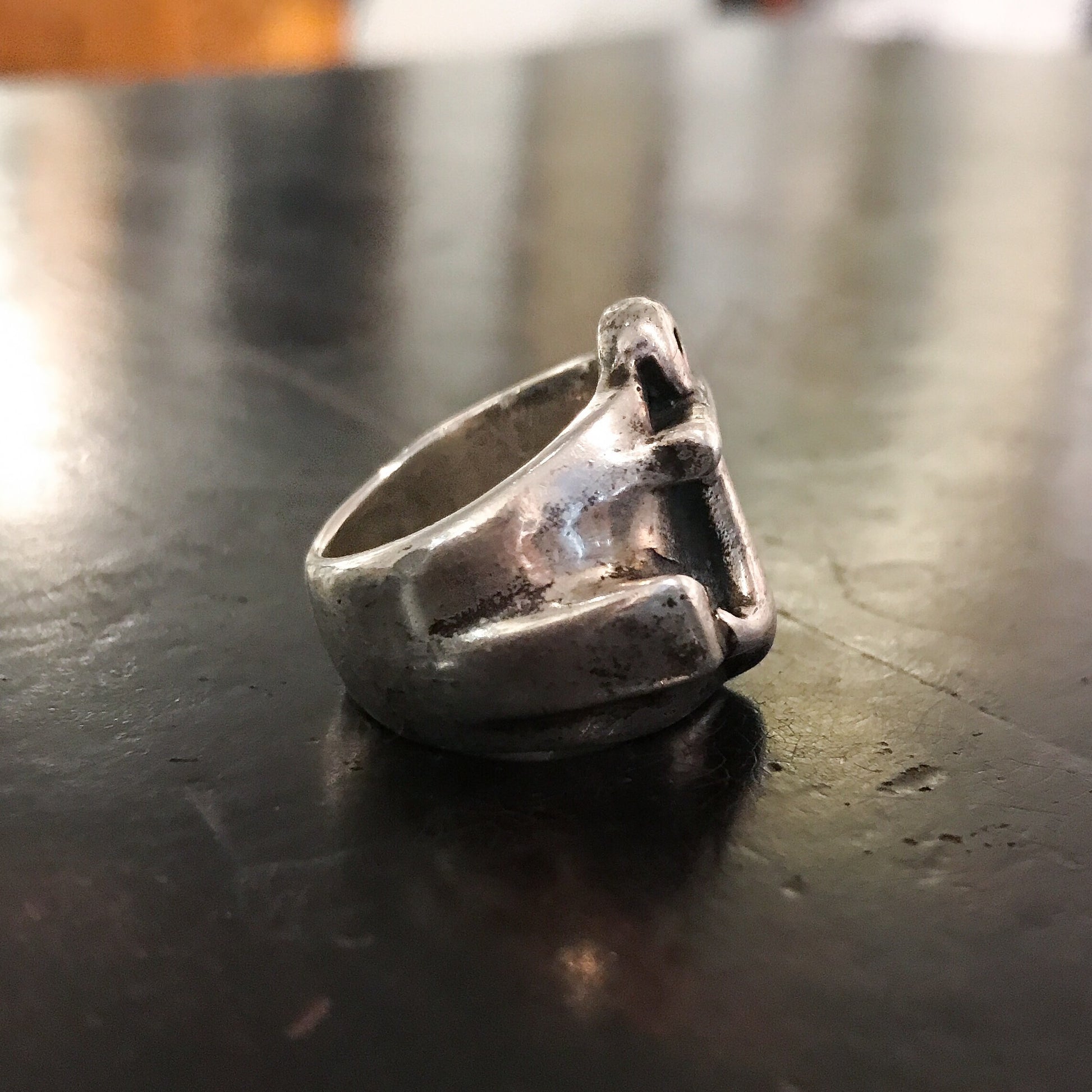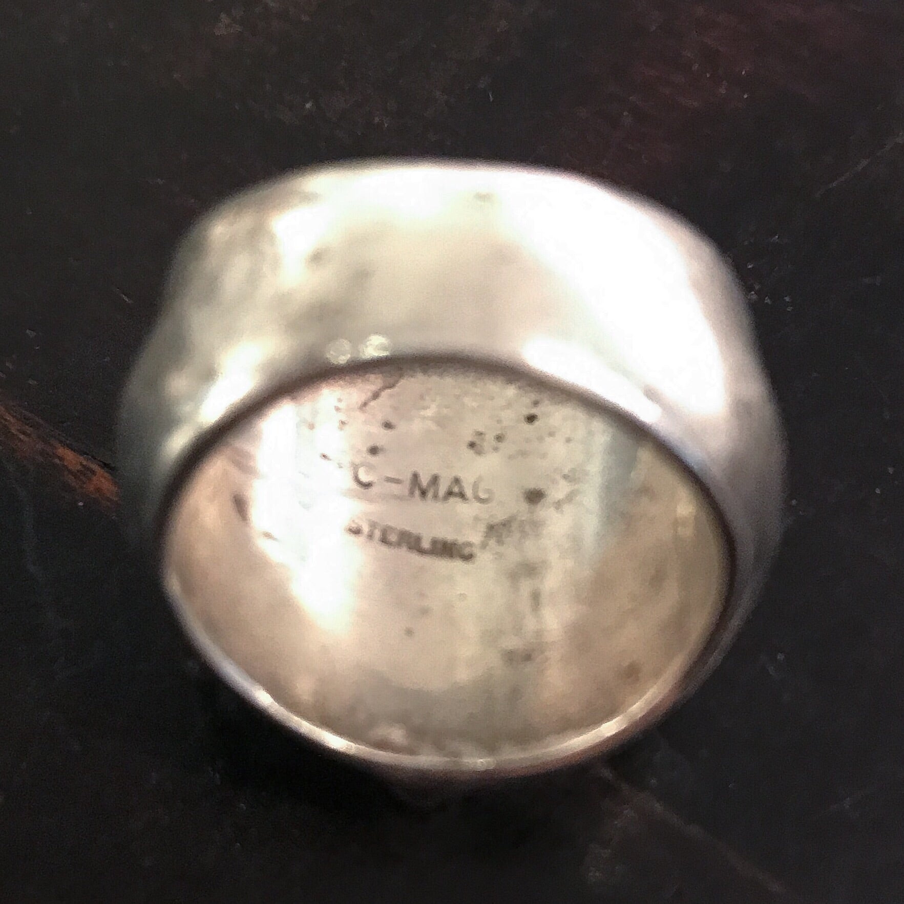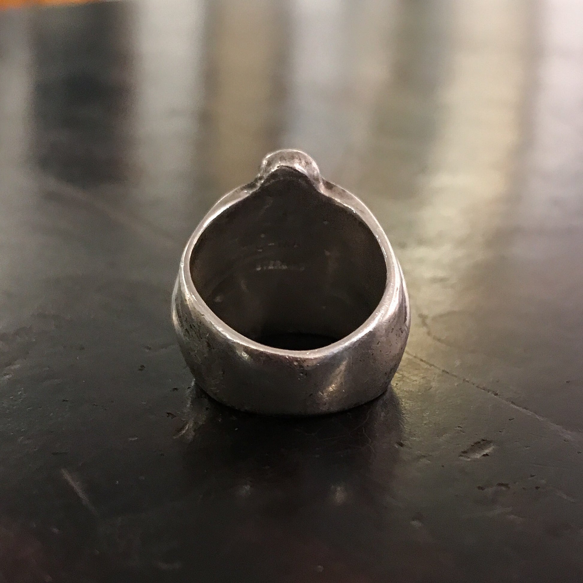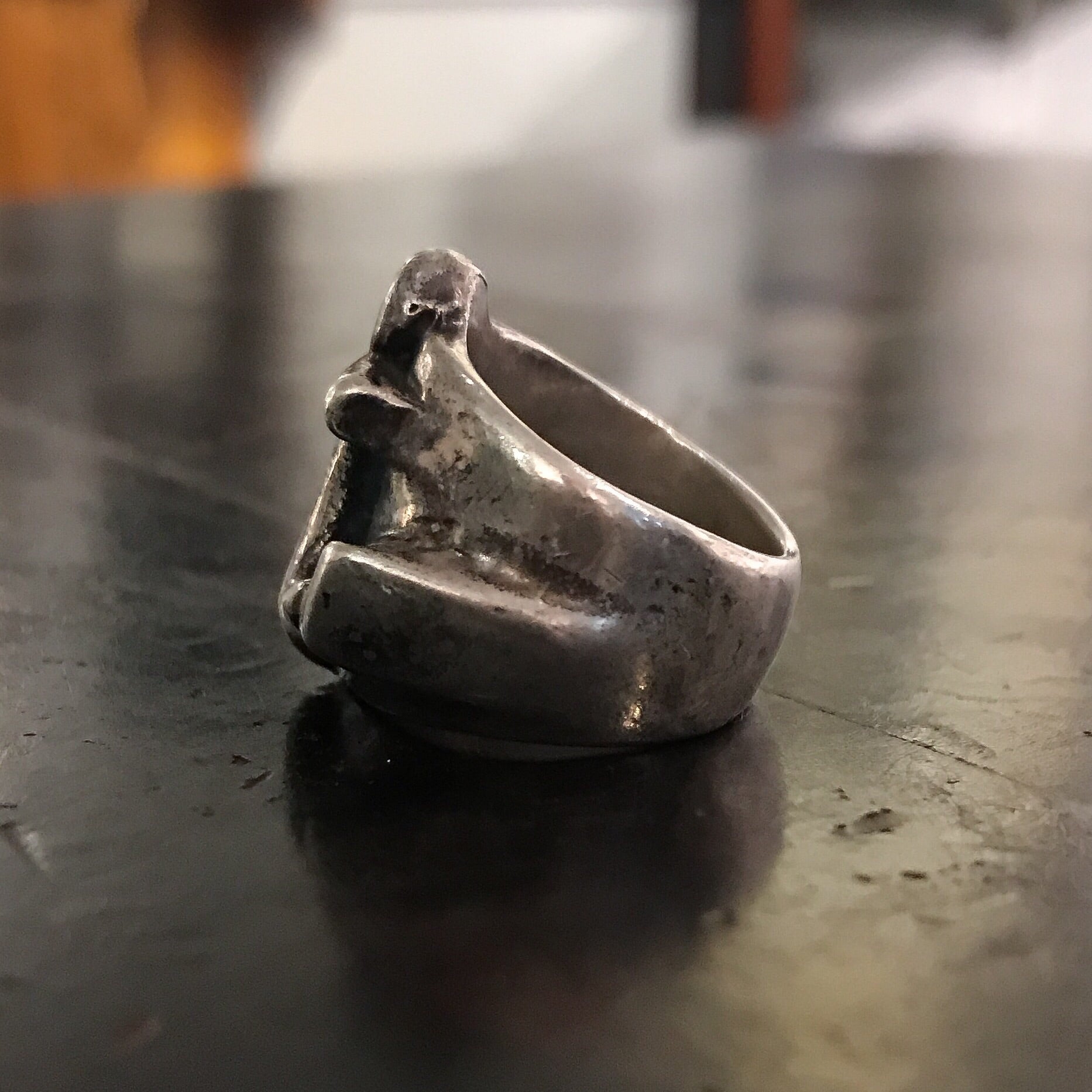 I don't know how old this awesome, very heavy vintage anchor ring is--it looks very Mid-Century to me and it has a lot of wear, but it is signed and I don't know this maker. So I'll leave it at just "vintage" as the description, but whoever gets this ring won't care because it is SO COOL. It was almost certainly a man's pinky ring and would be very good as one still, but it could also be a very chunky ladies ring too!