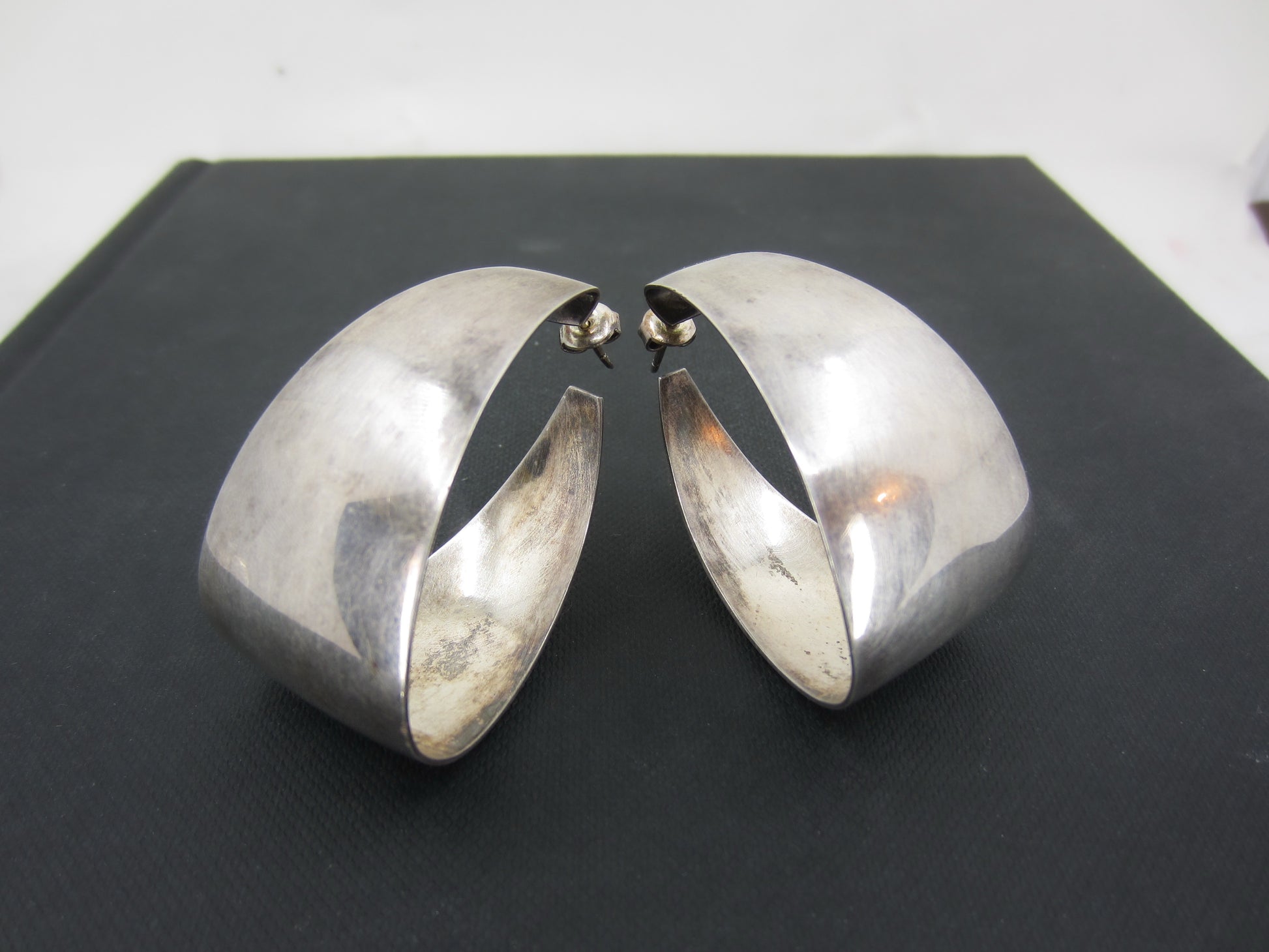 A fabulous pair of Taxco sterling silver hoop earrings - they are massive and look incredible on! Made circa 1980's.