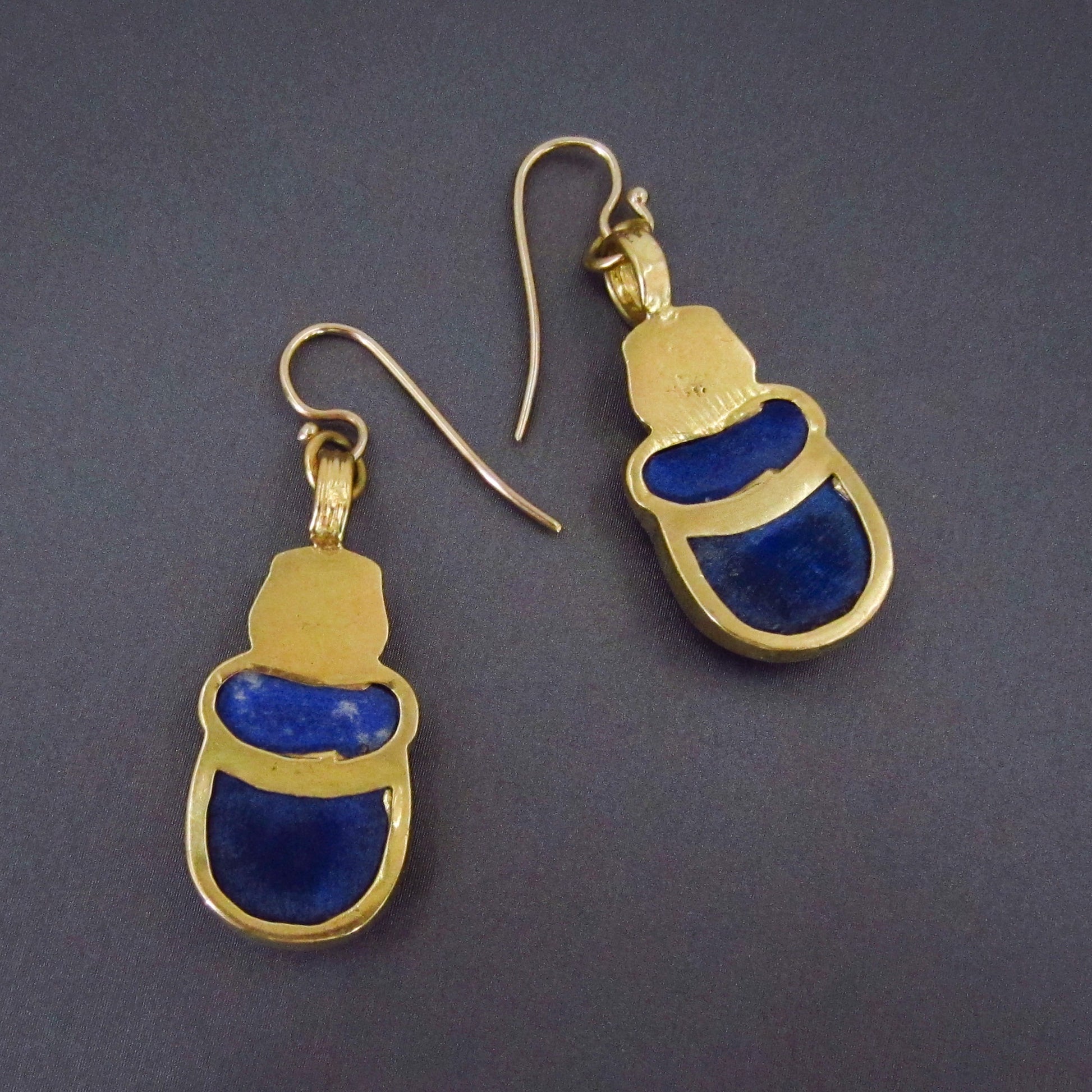 SOLD--Vintage Lapis Scarab Earrings 18k, Italy c. 1990