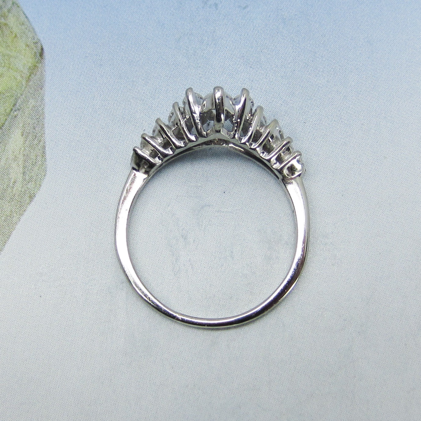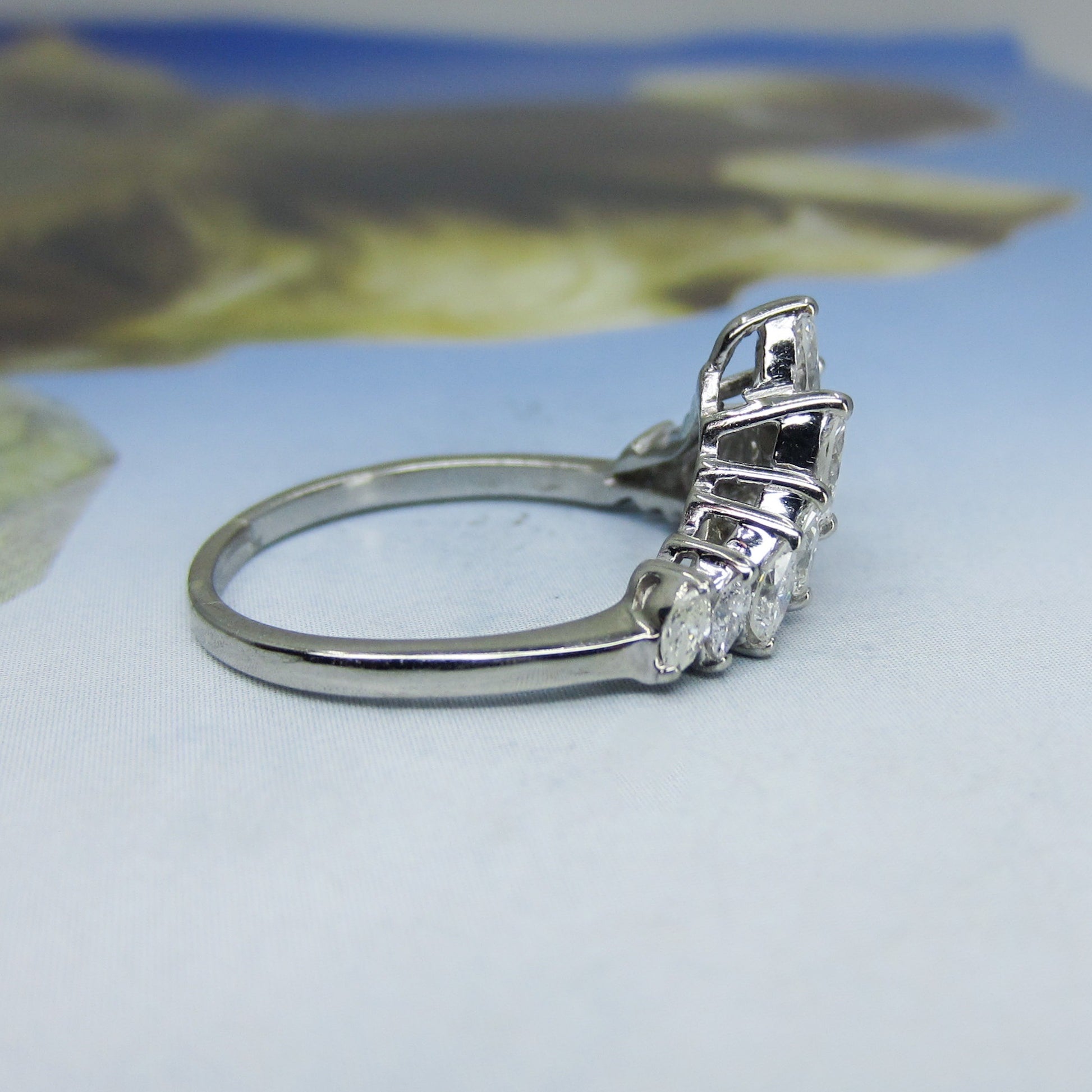 A glam Mid-Century ring featuring graduated Marquise diamonds set in a tiara style in 14k white gold. Approximately 1.00ctw. Made circa 1960's.