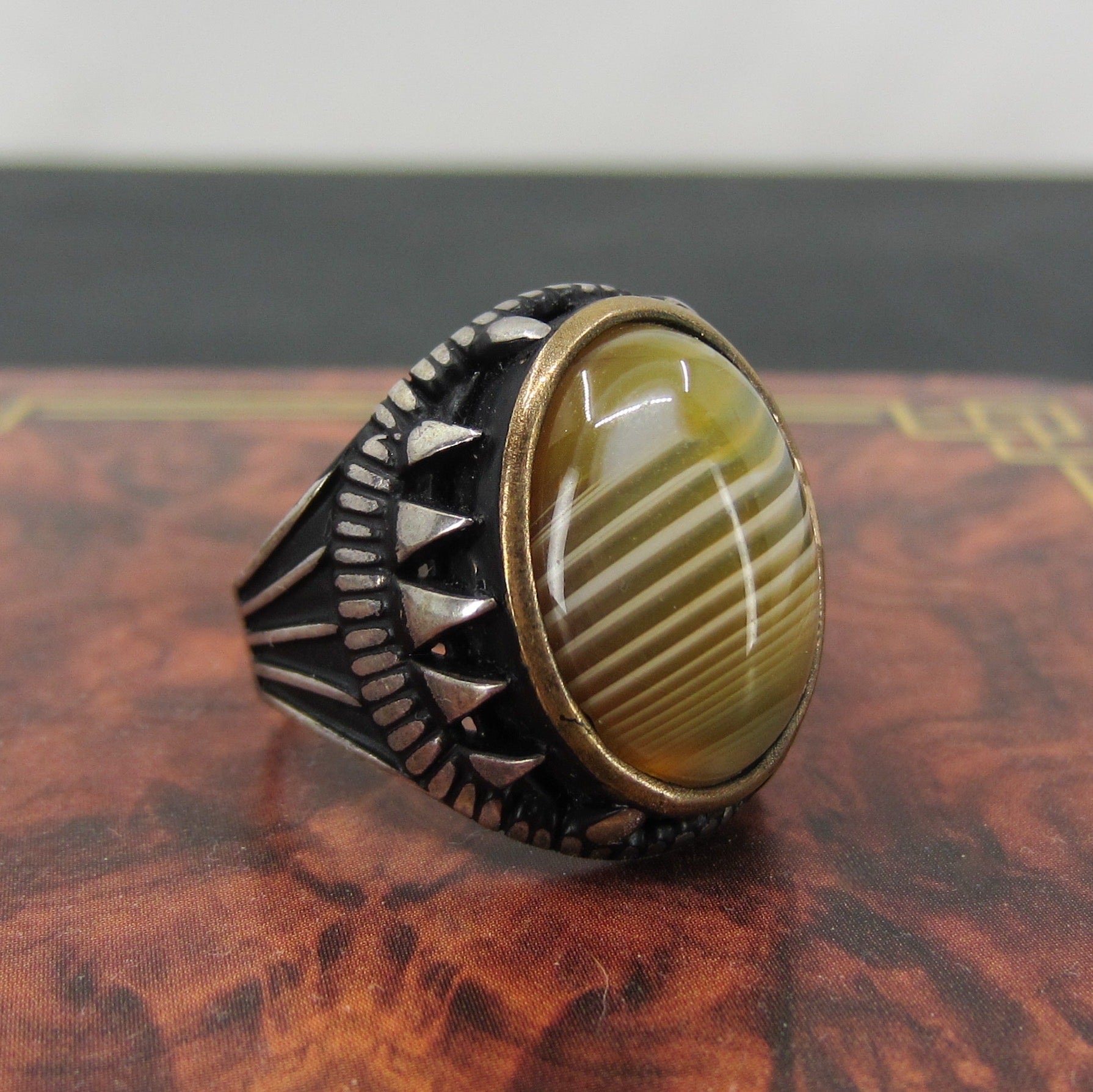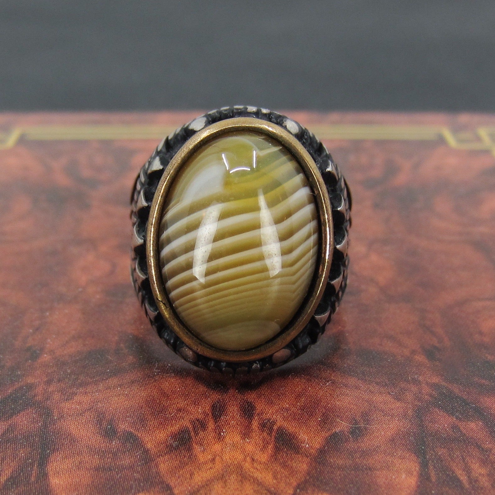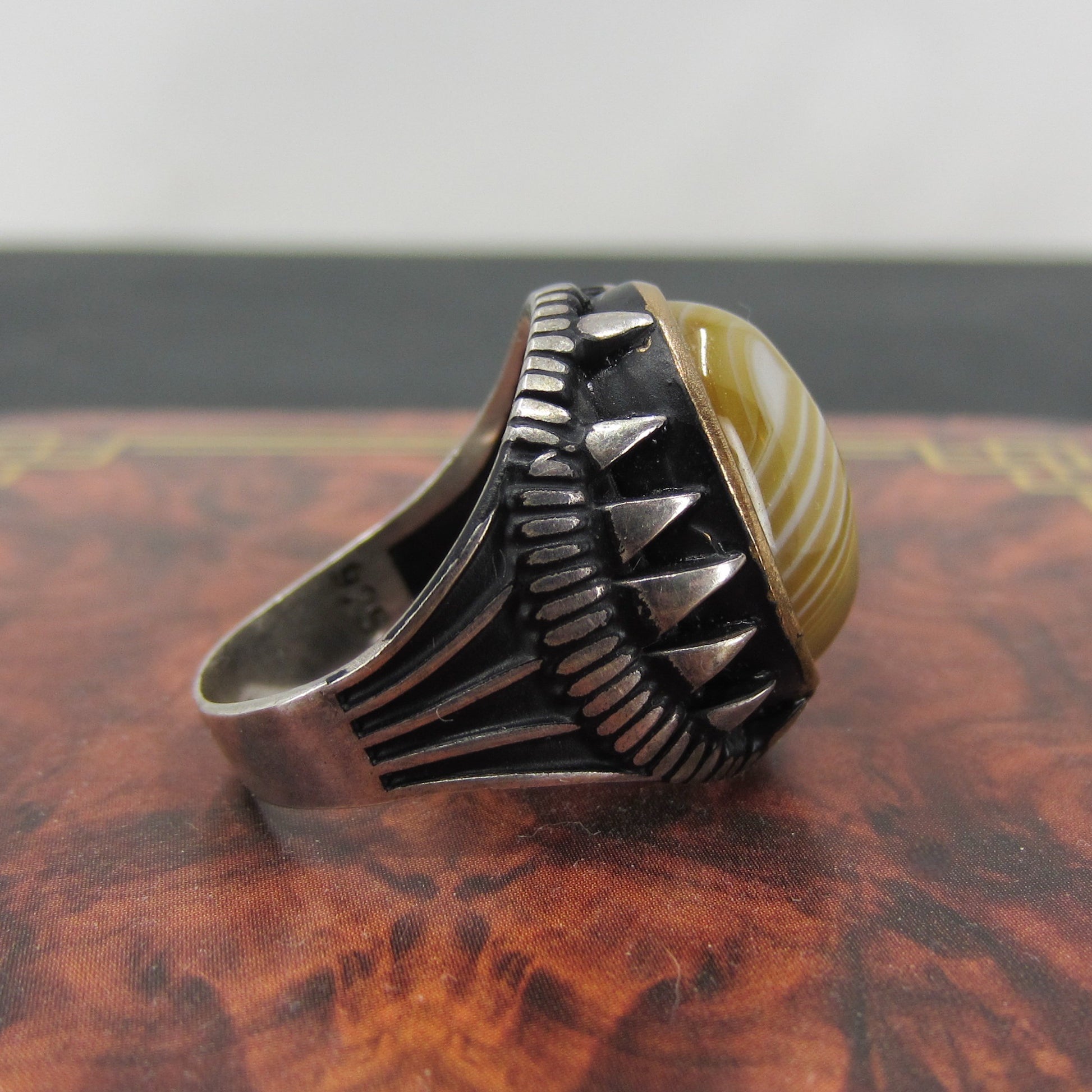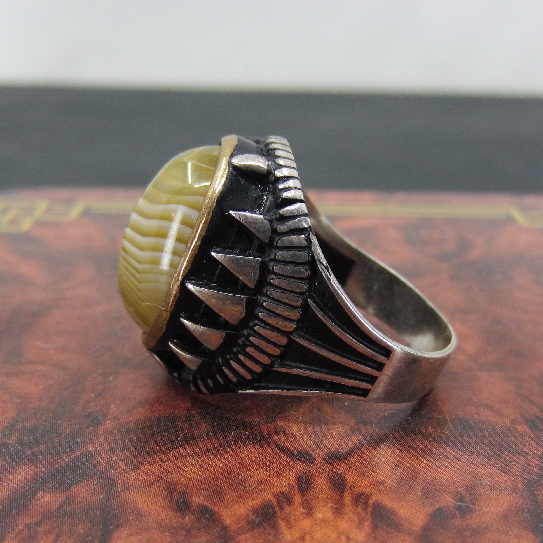 SOLD-Vintage Men’s Agate Ring Sterling c. 1990