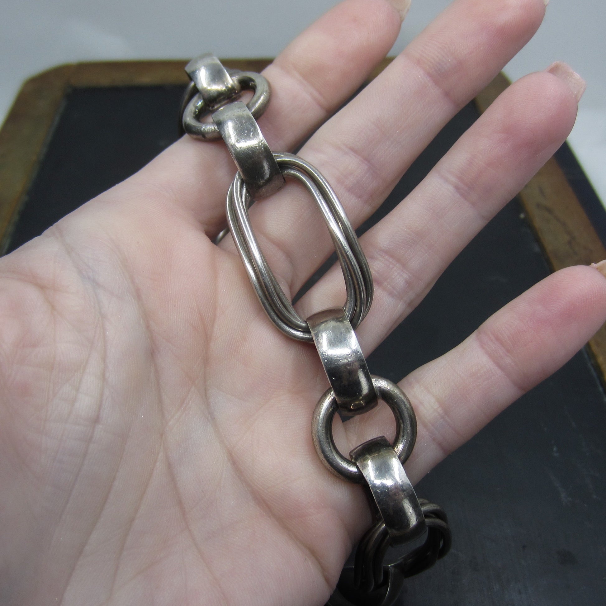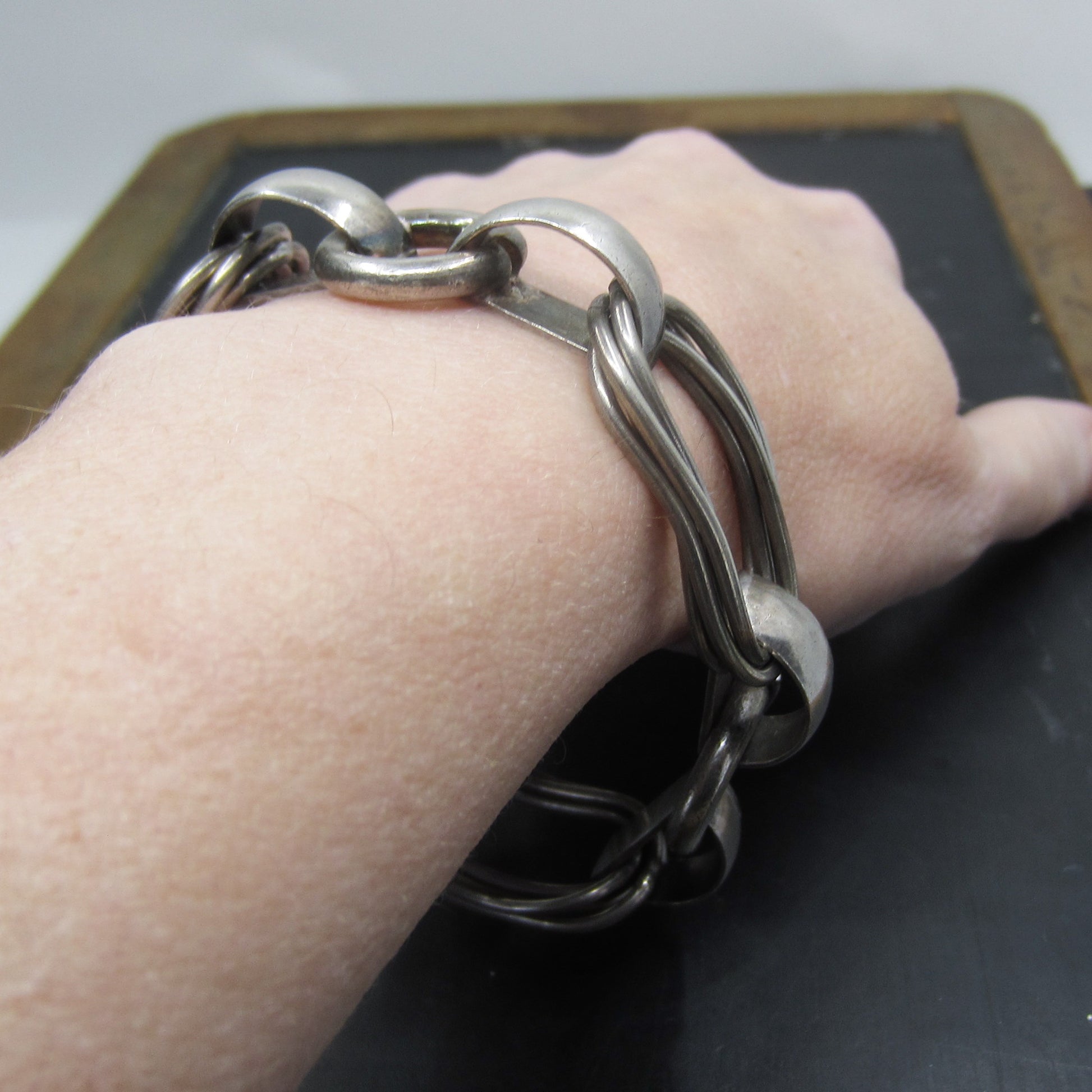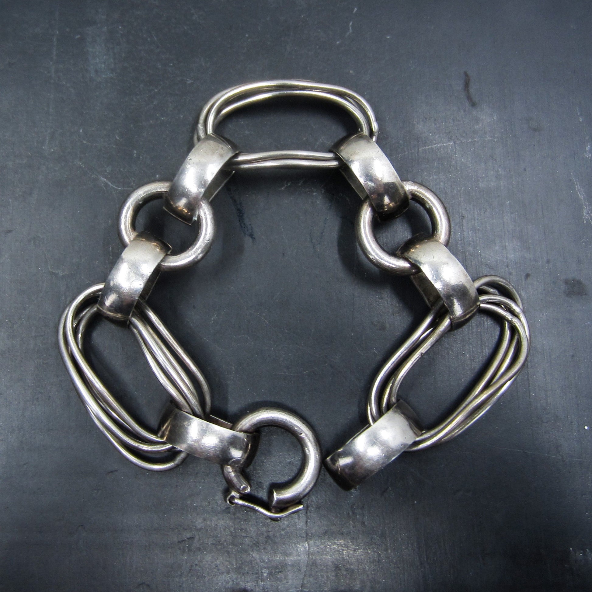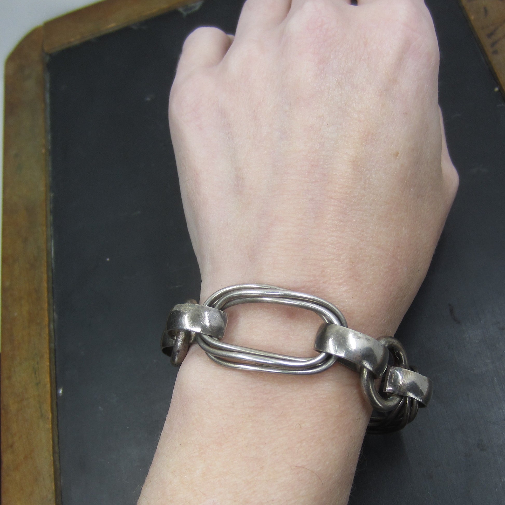 SOLD--Vintage Modernist Oval Rings Bracelet Sterling c. 1970