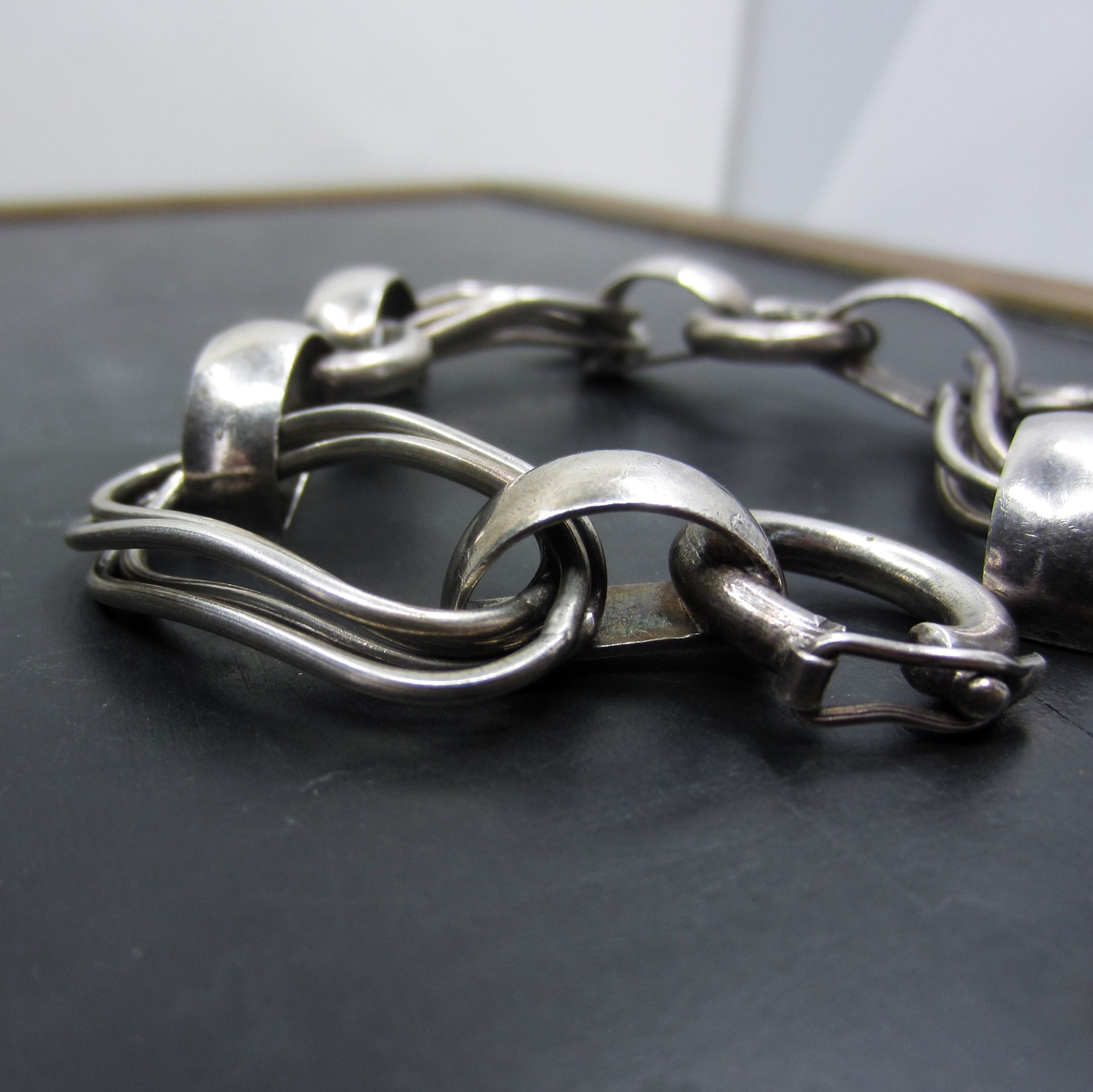 This is a super chic bracelet, wearable for every day and great for stacking or wearing alone! Made in the 1970's in sterling silver and completely handmade, the design of this is both machine age and organic at the same time--which is not easy to do. It's a great piece, whoever gets it will literally wear it all the time--it's fun to wear, and to touch and to hold as all the best jewelry is!