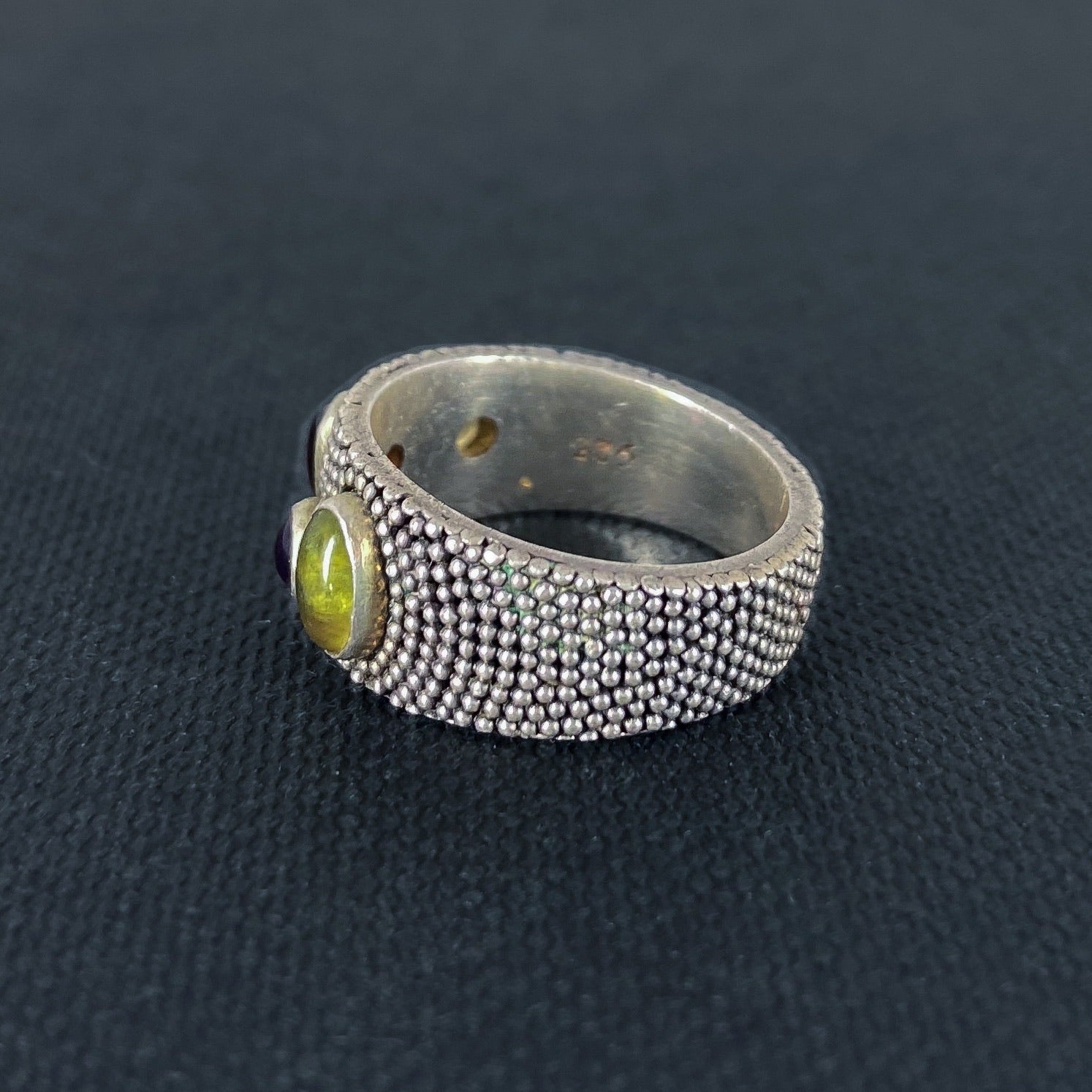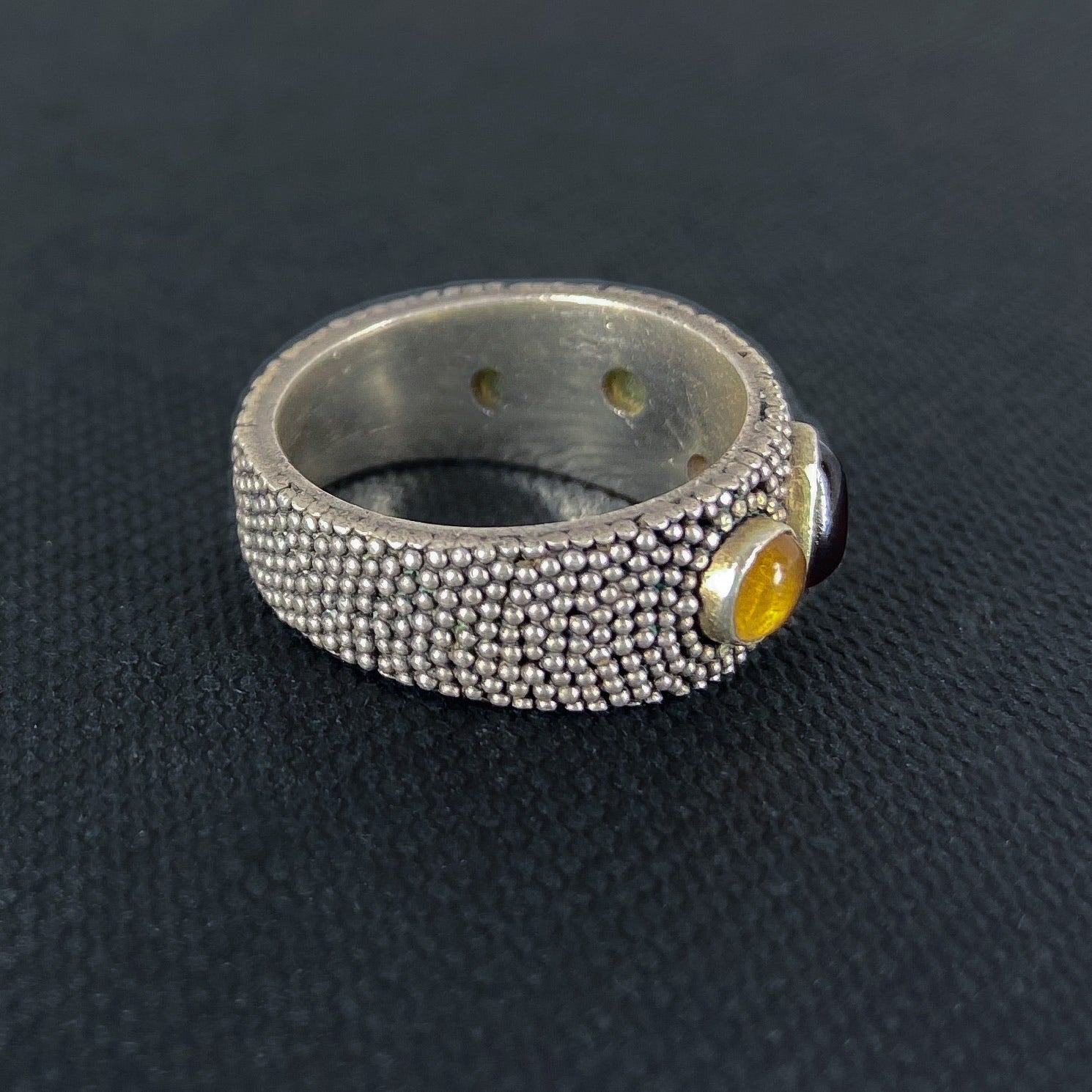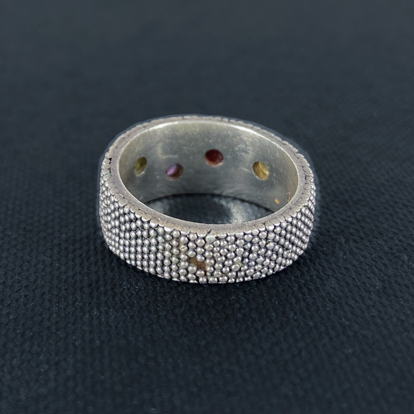 Vintage Multi-Stone Granulated Band Sterling c. 1990