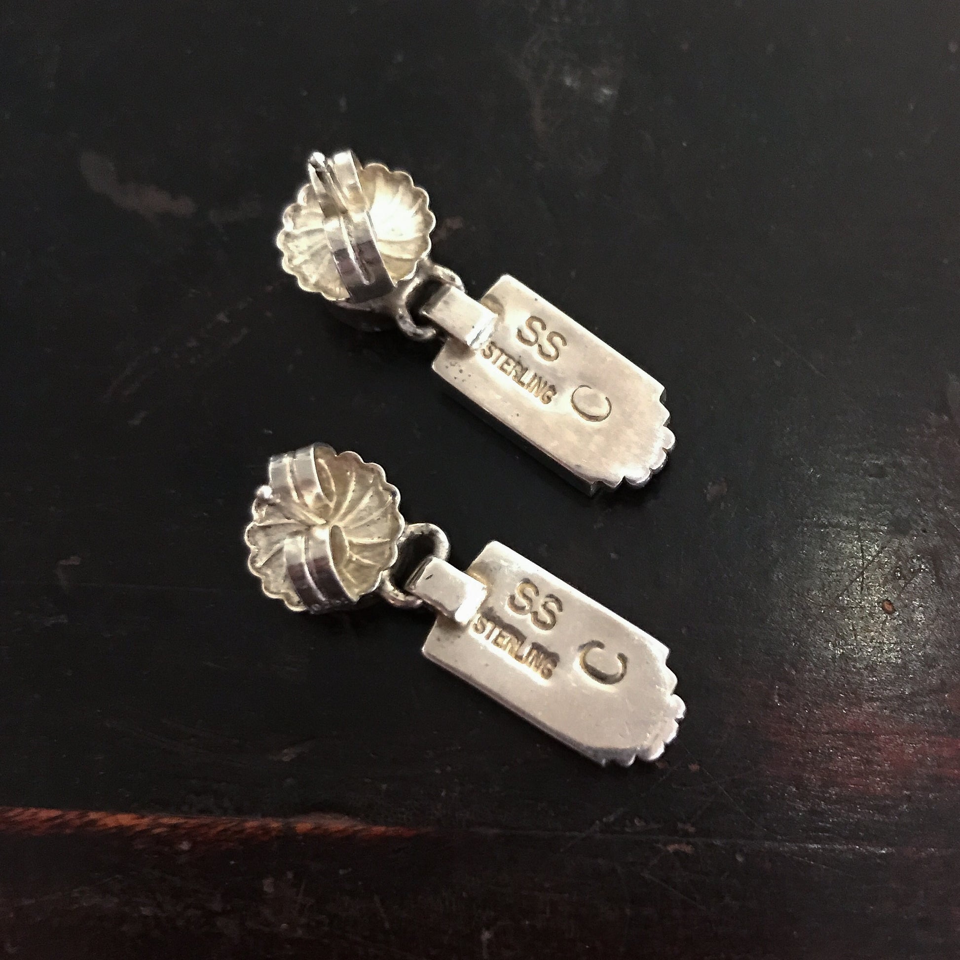 SOLD--Vintage Onyx and Tiger's Eye Inlay Earrings Sterling c. 1990