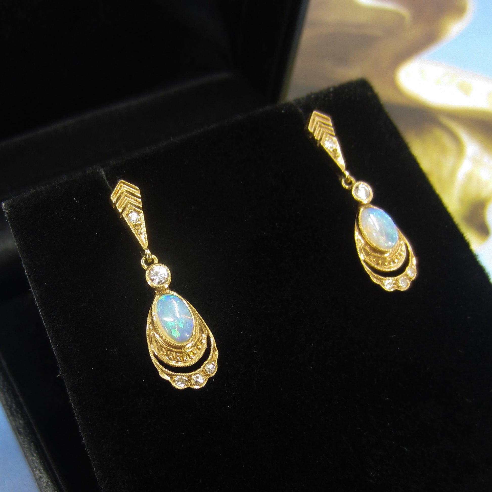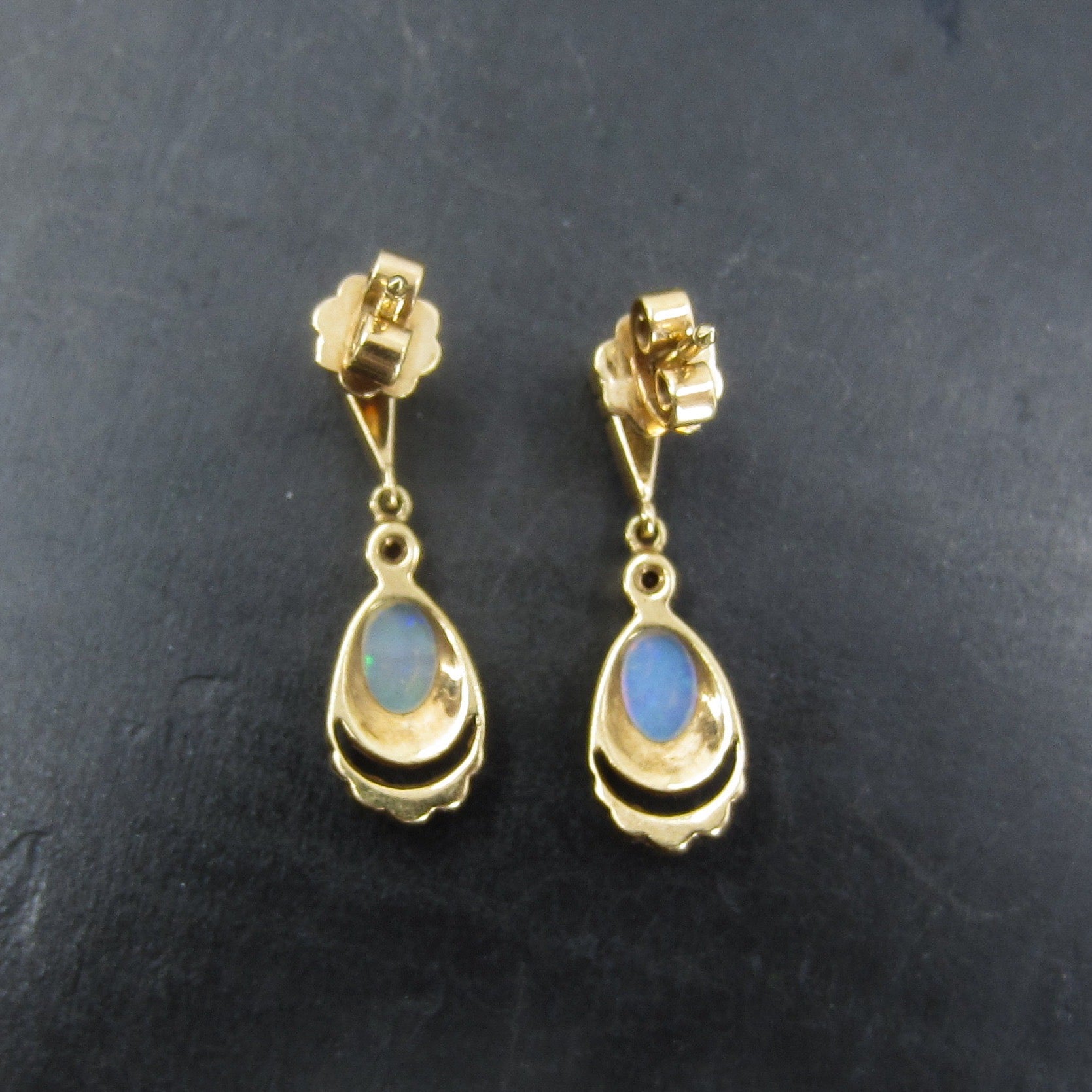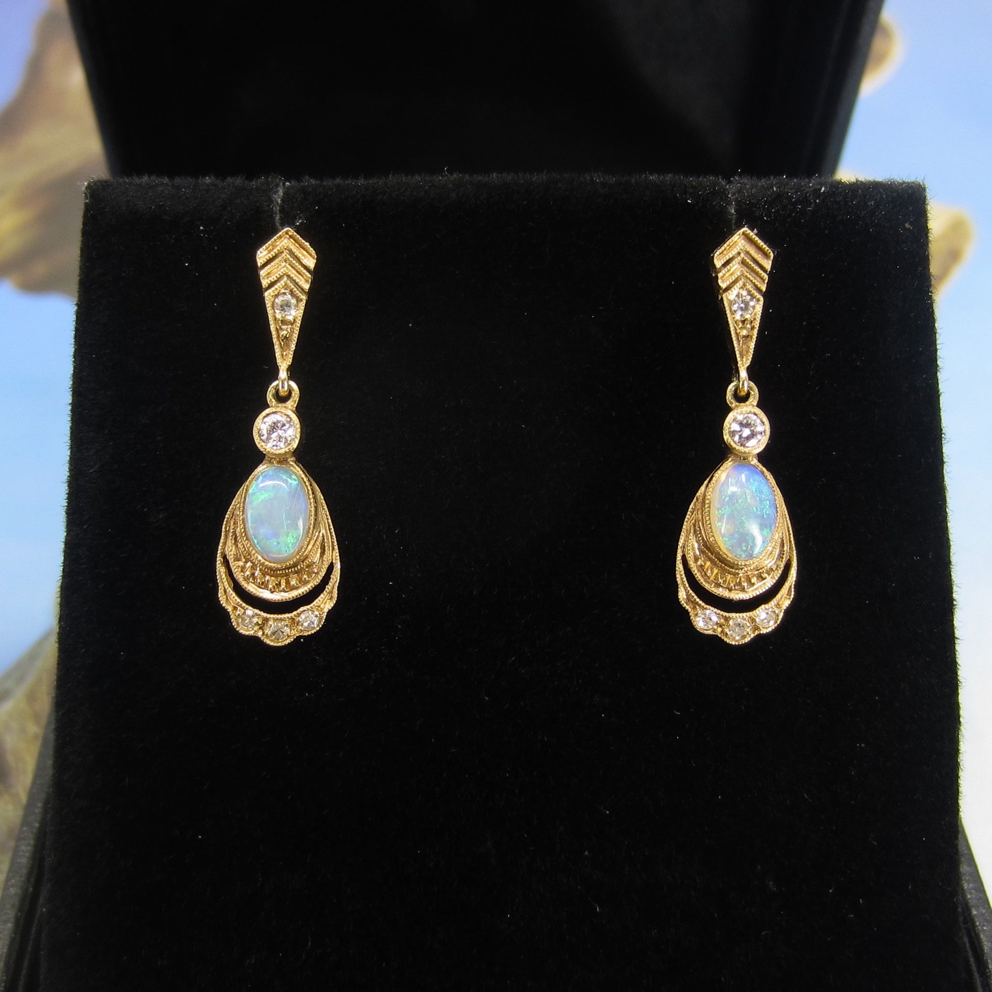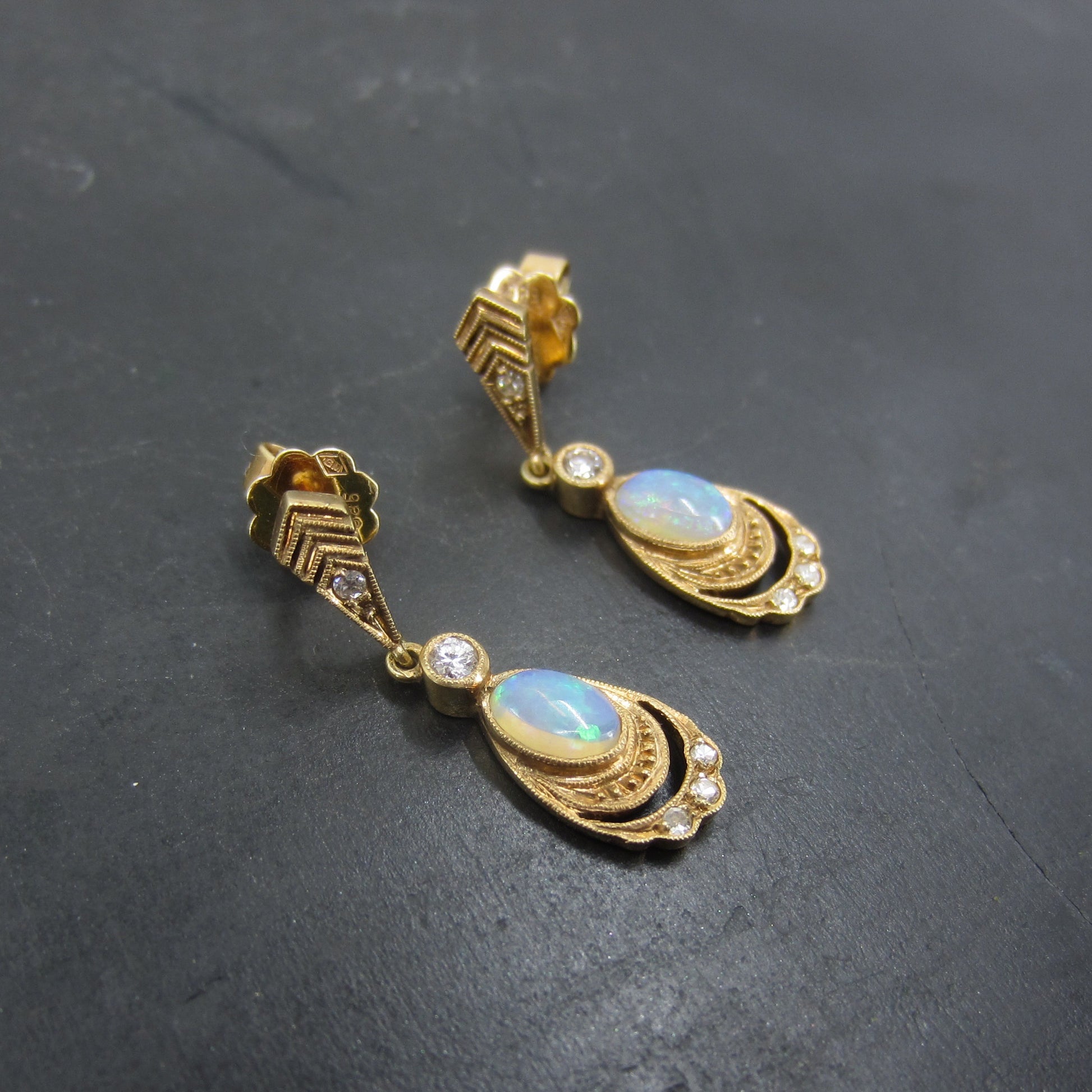 SOLD-Vintage Opal and Diamond Drop Earrings 14k
